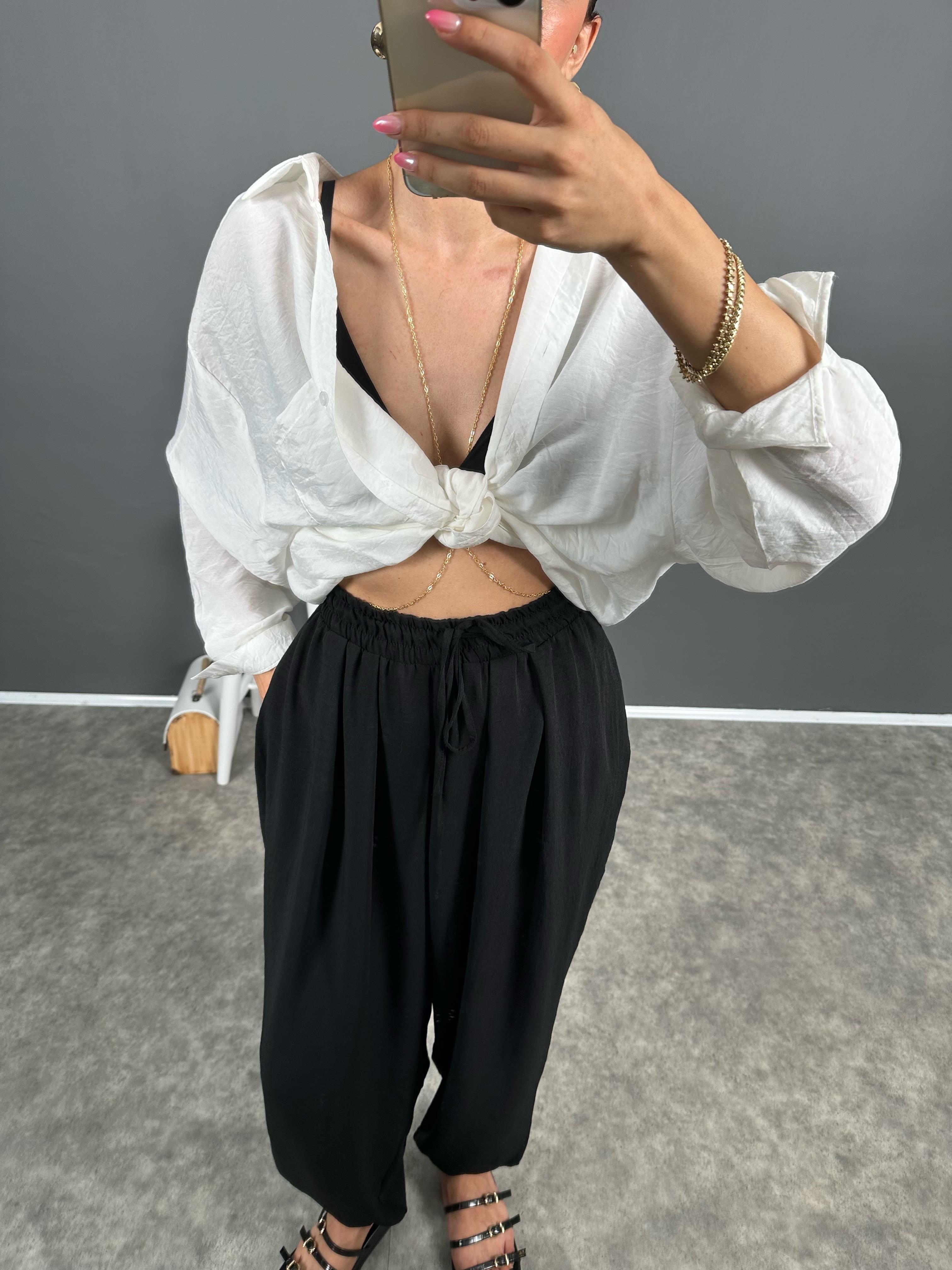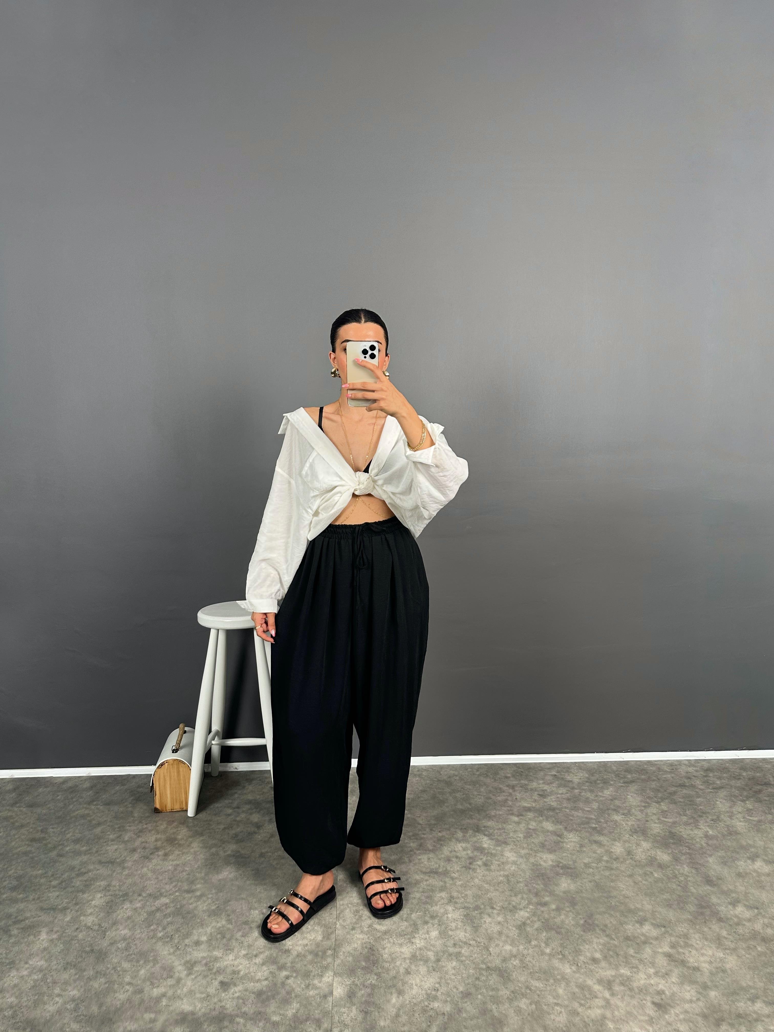 Funi Siyah Beli İpli Ayrobin Şalvar Pantolon
