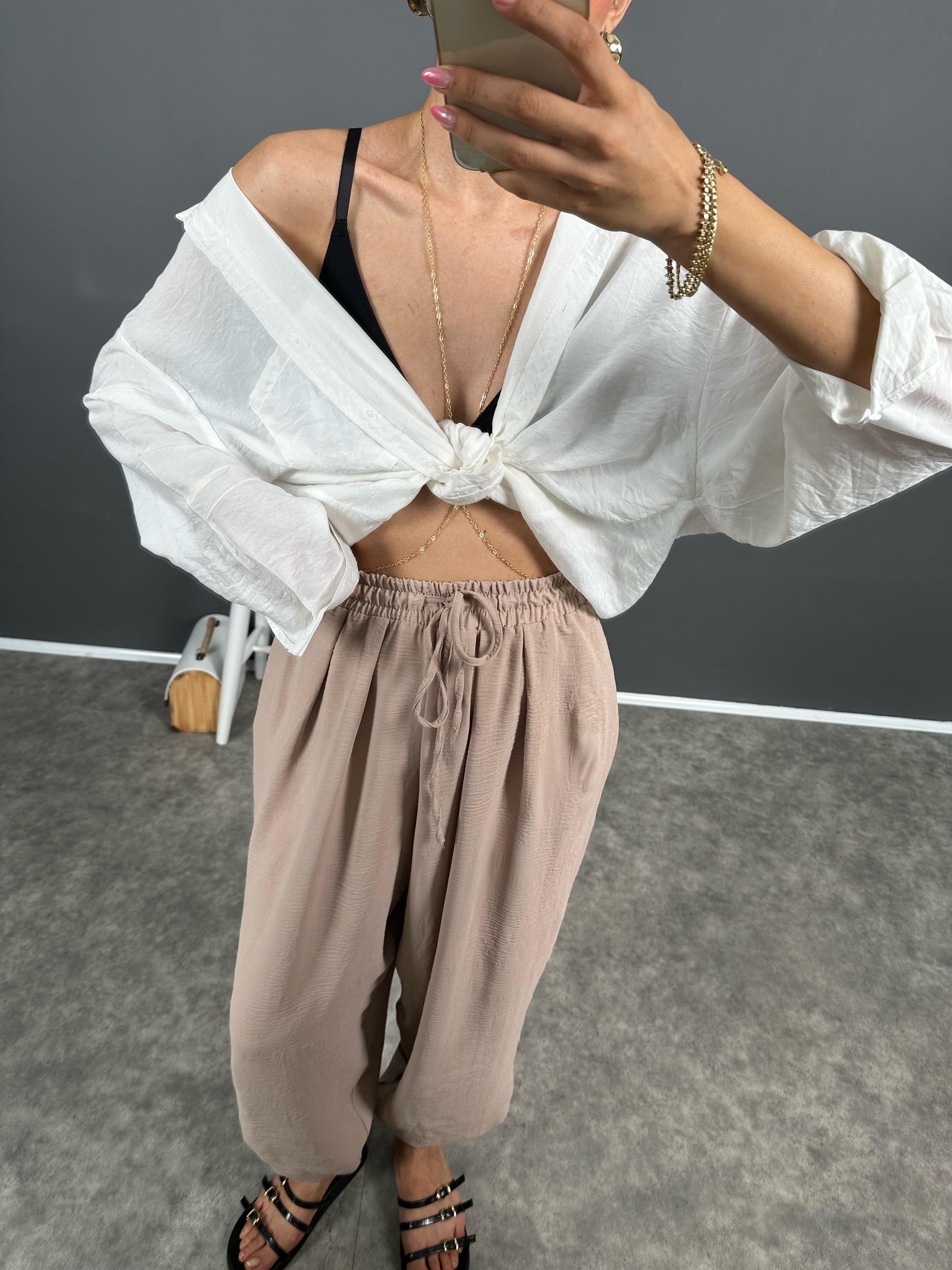 Funi Vizon Beli İpli Ayrobin Şalvar Pantolon