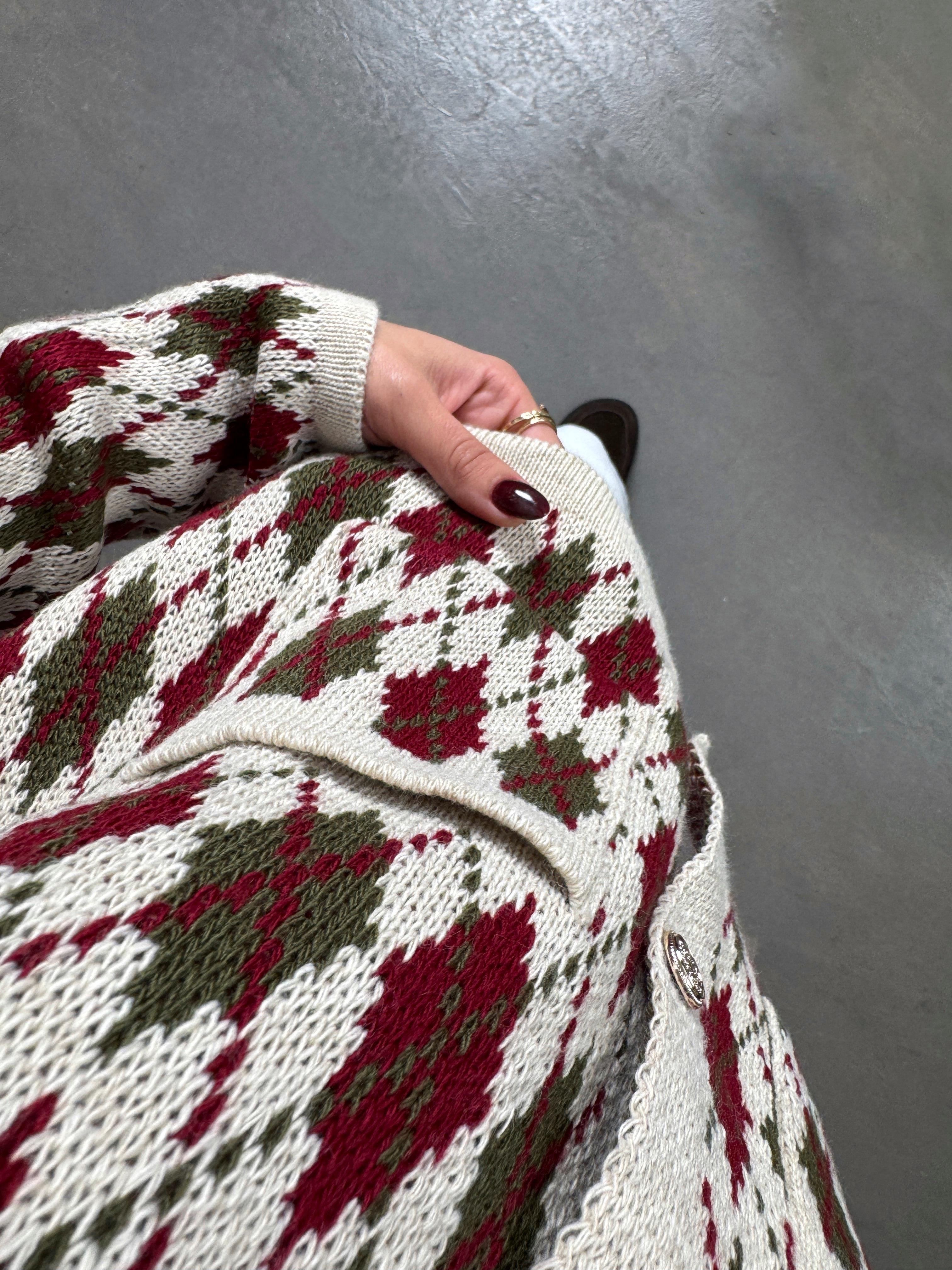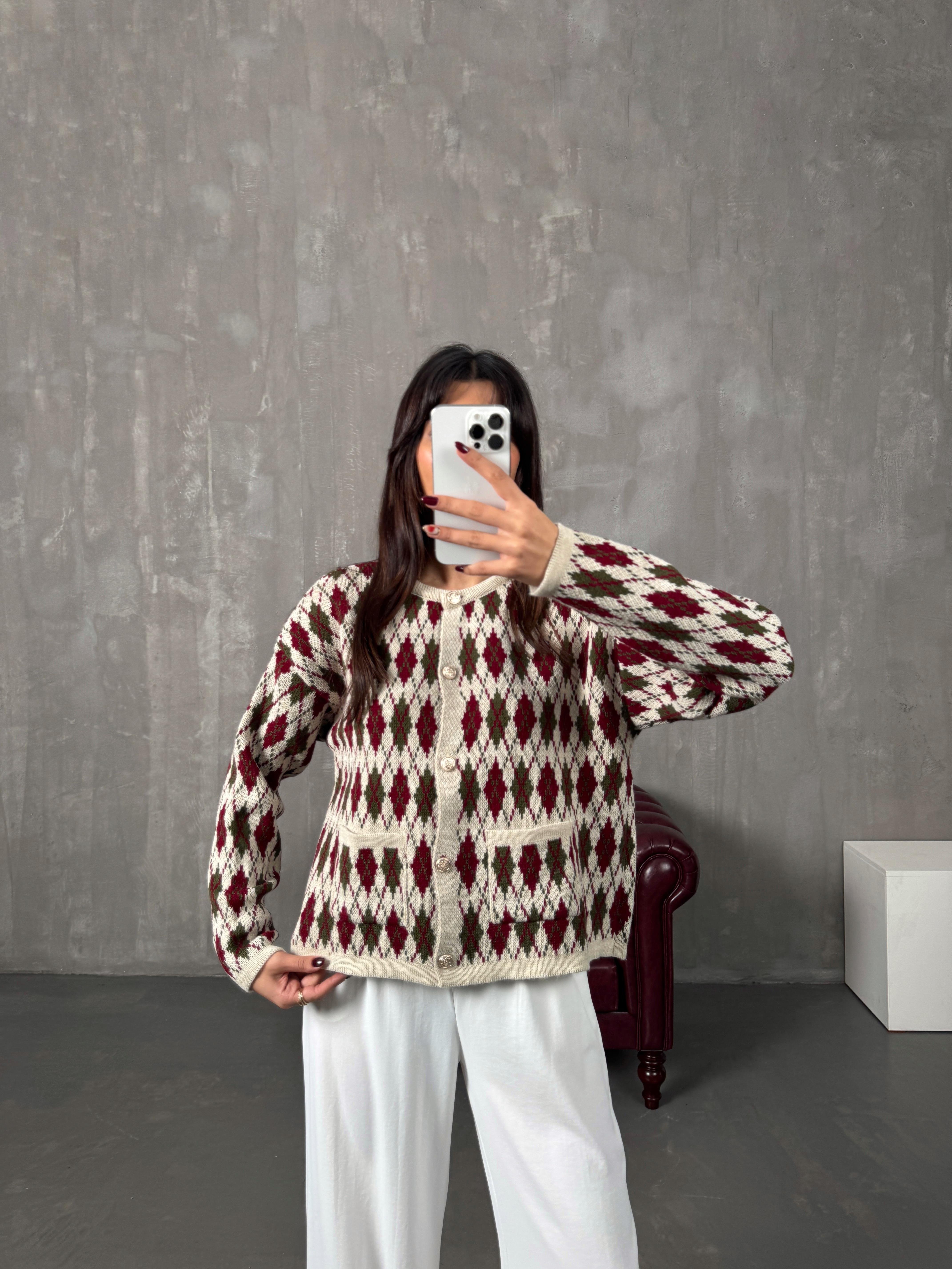Garcia Krem Bordo Baklava Desenli Hırka
