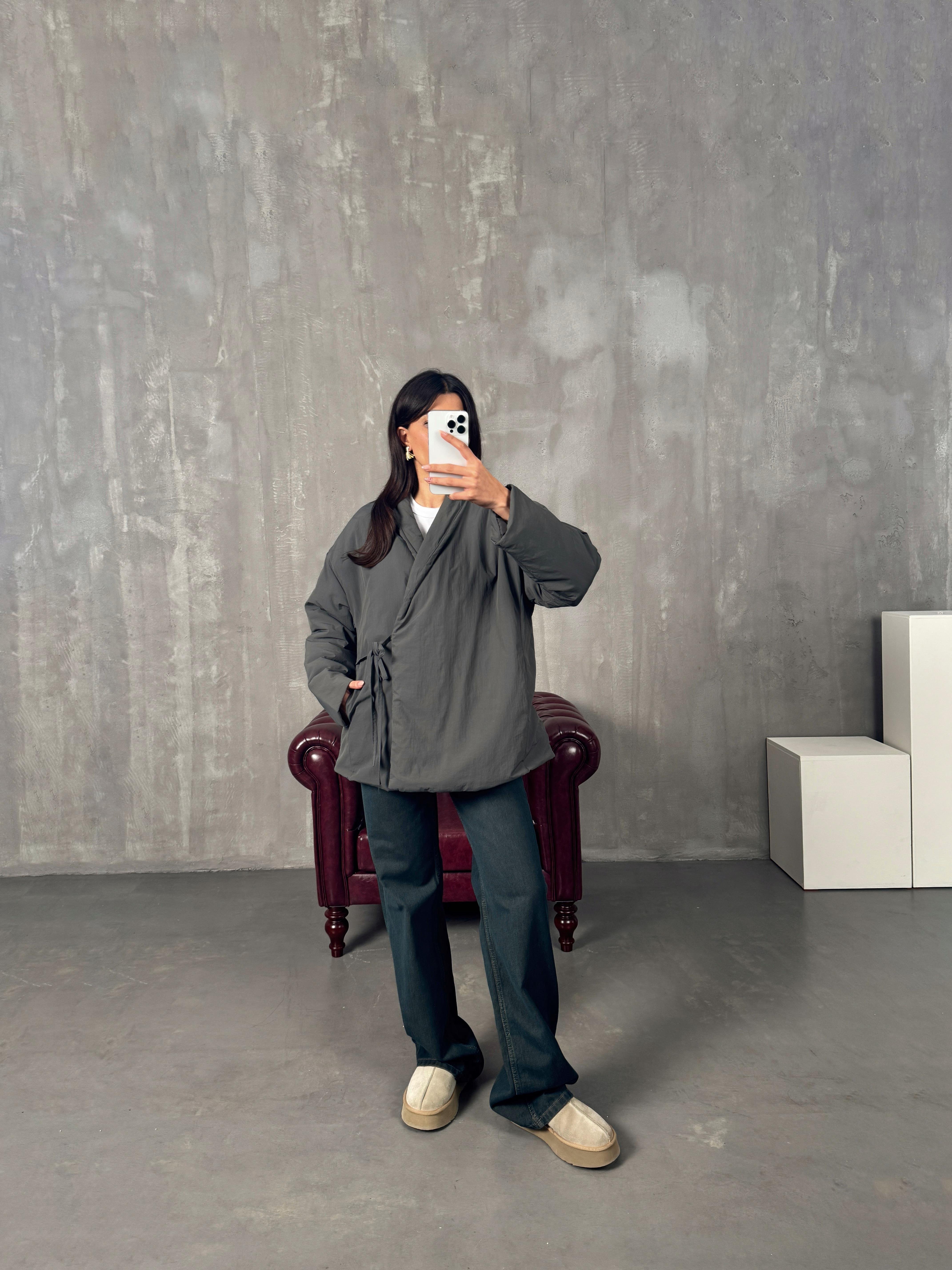 Gows ZR Model Haki Önden Bağlamalı Mont