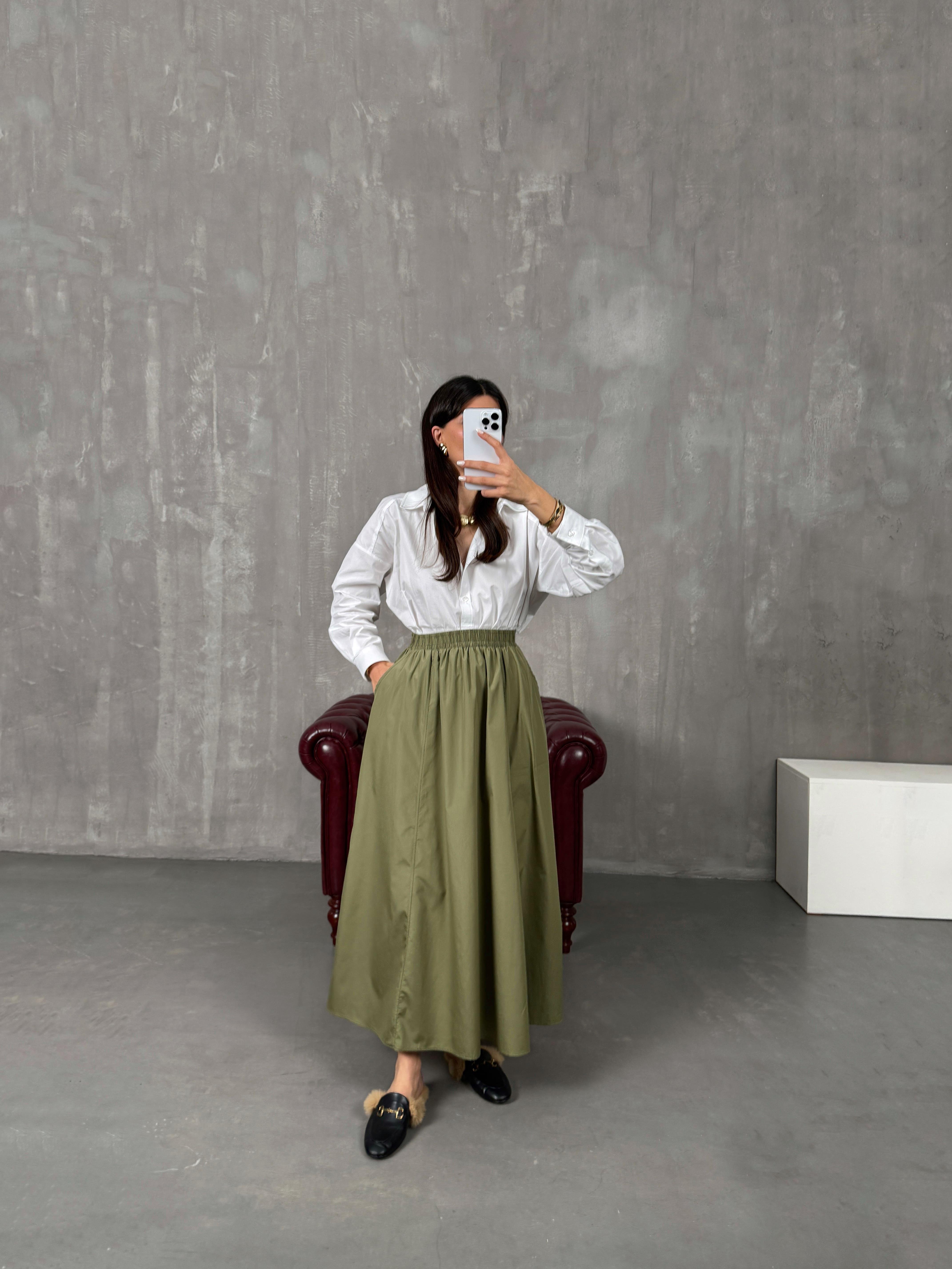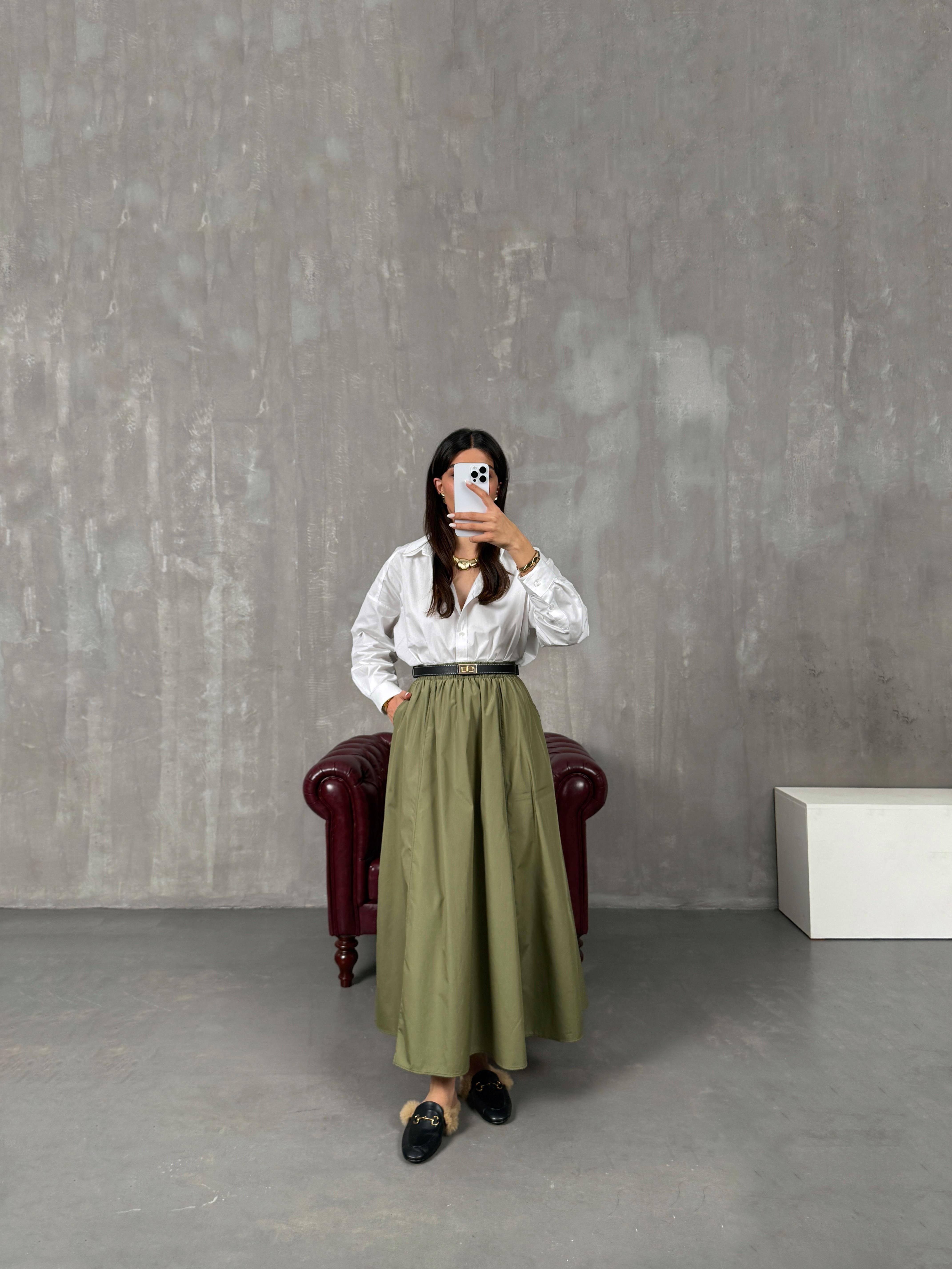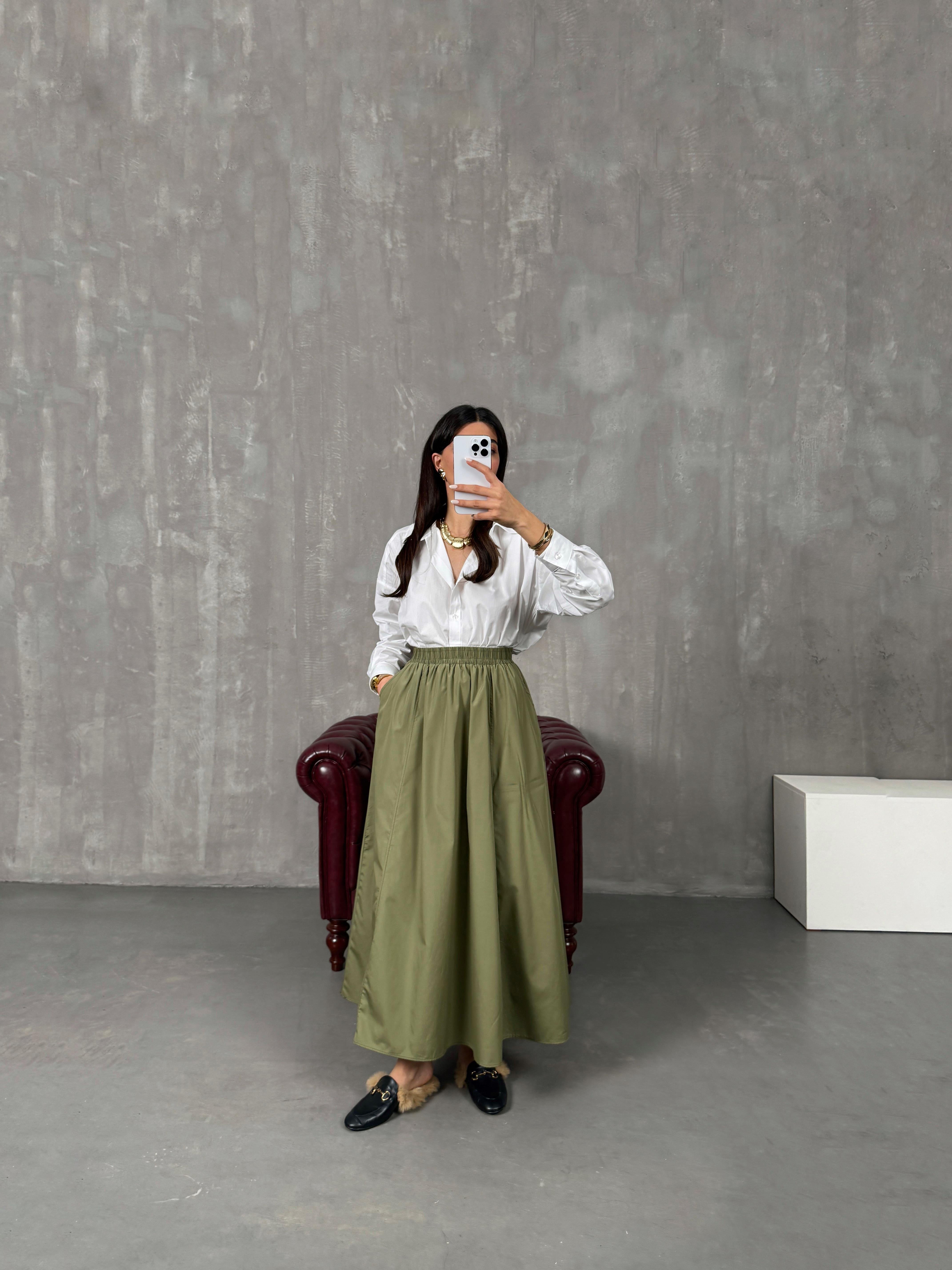 جرايس تنورة قماش بوبلين كاكي