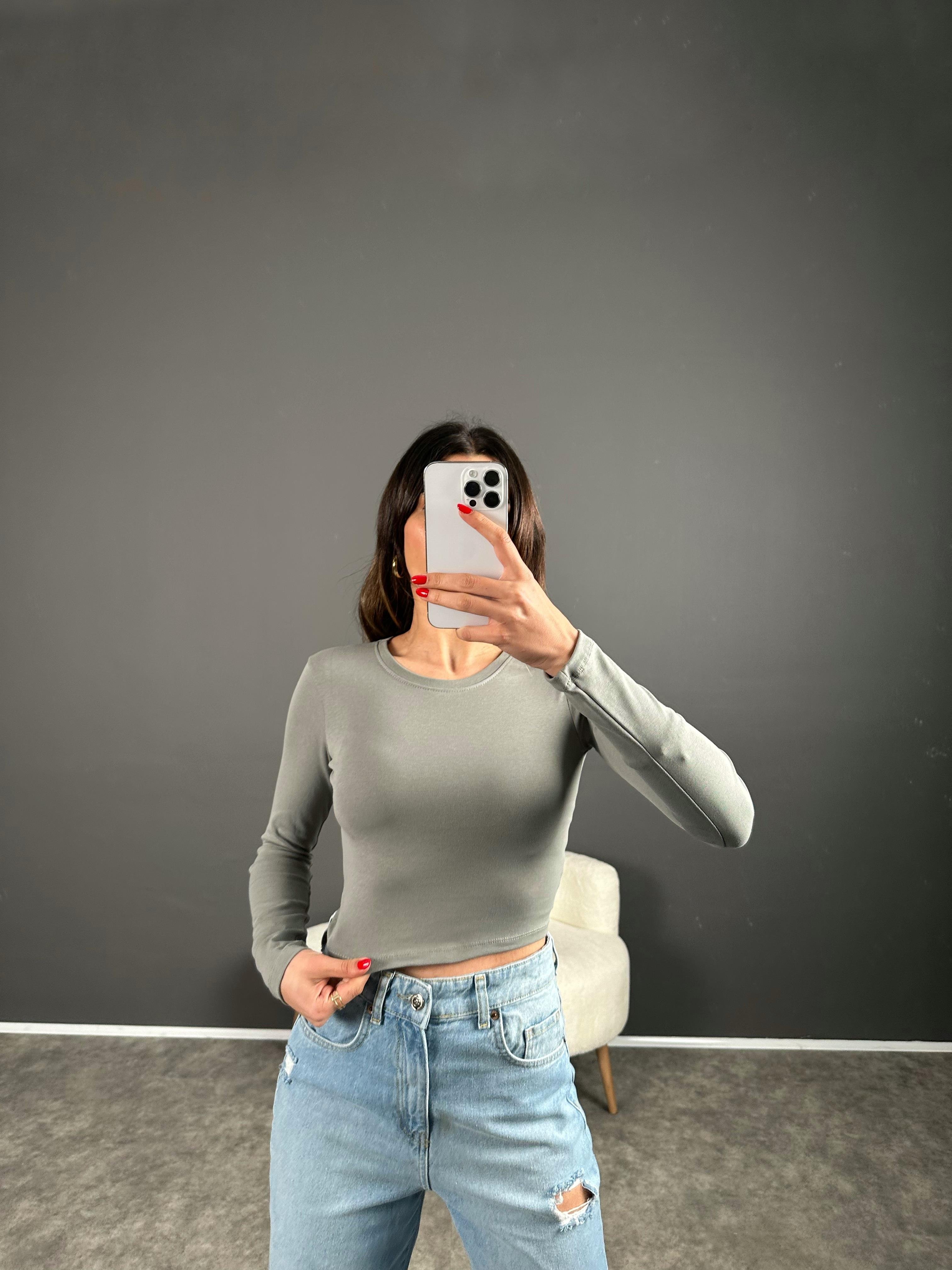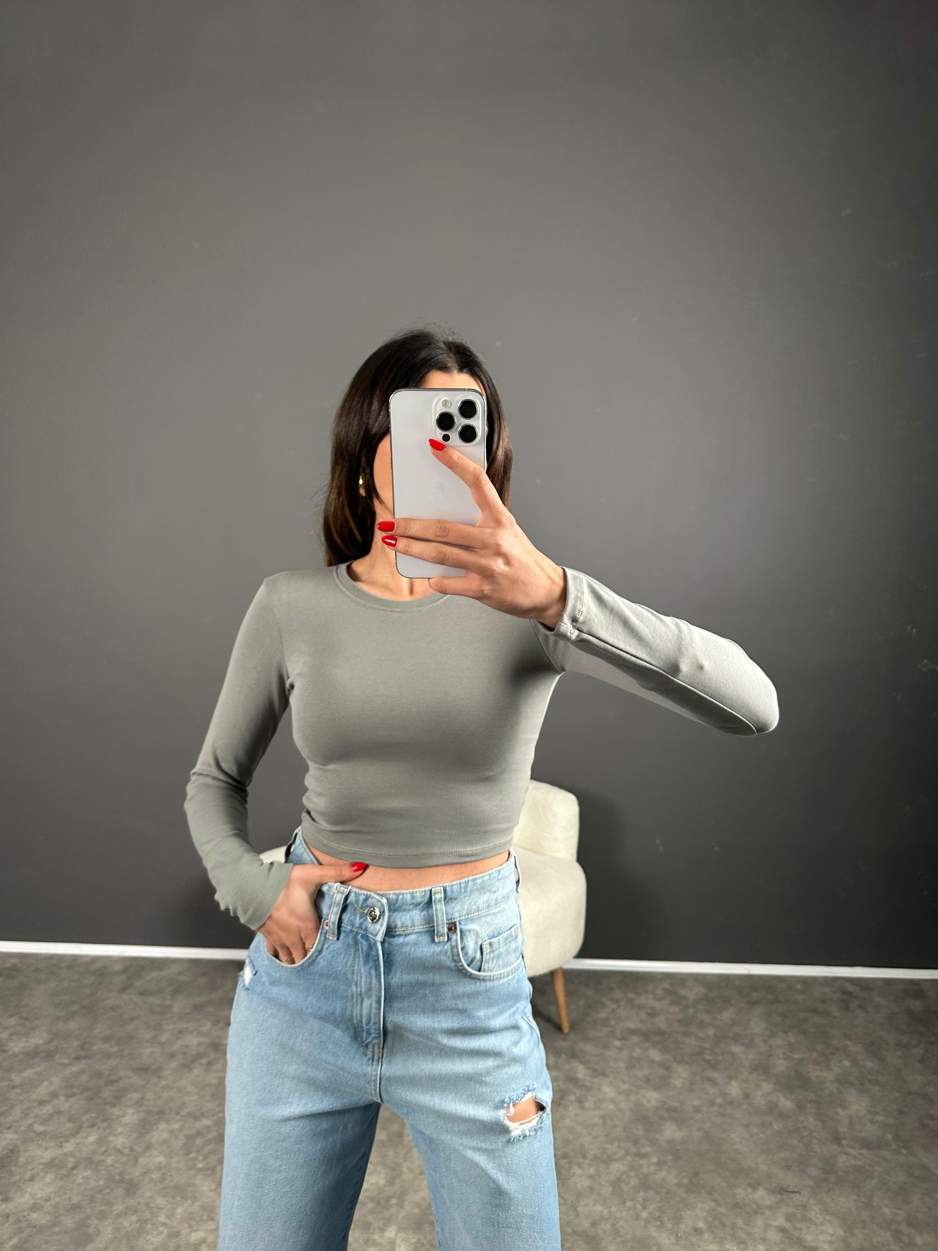 كروب طويل الأكمام بيسيك موديل زد آر رمادي