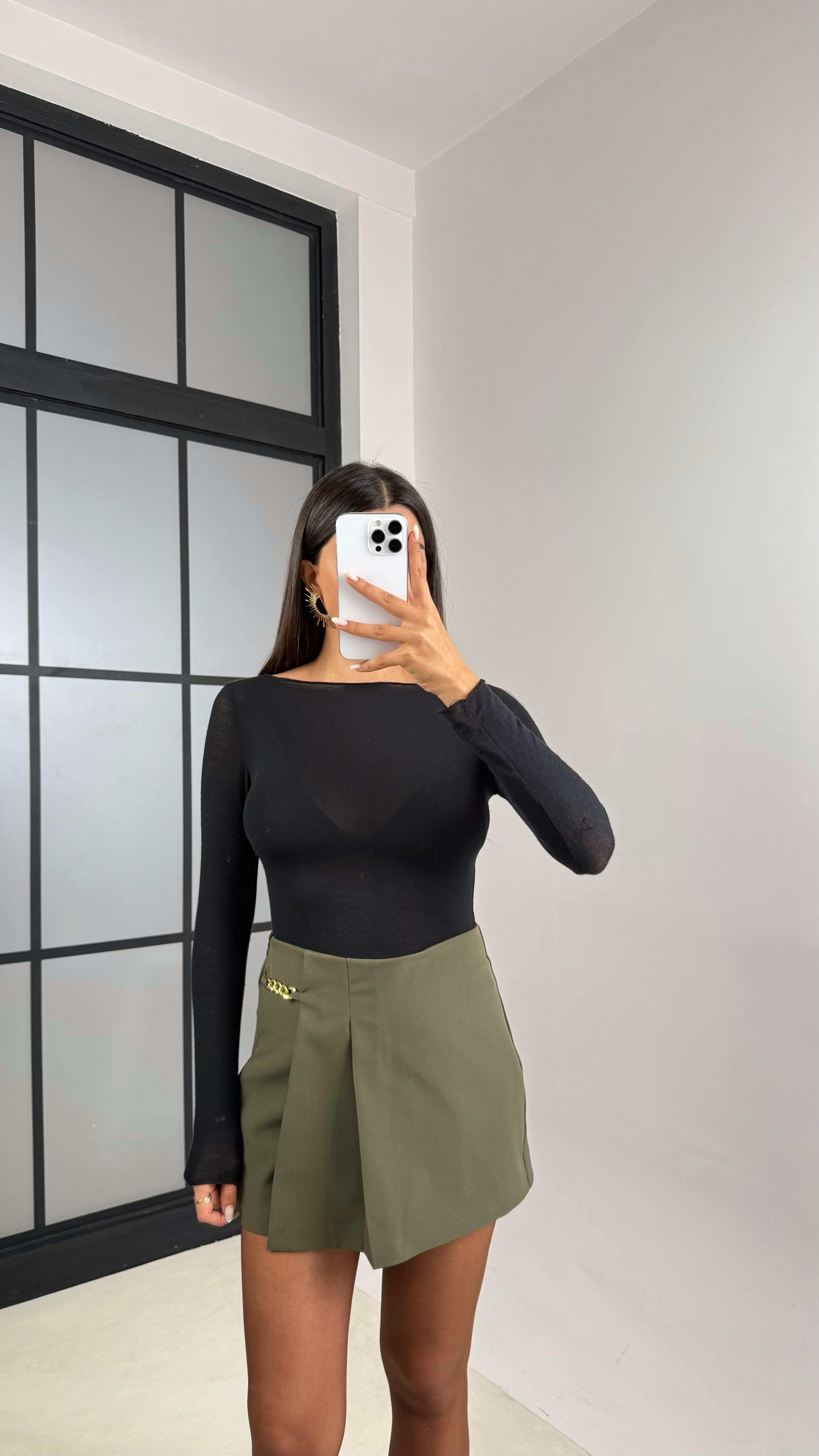 Haki Zincir Detaylı Şort Etek GAUS-00590