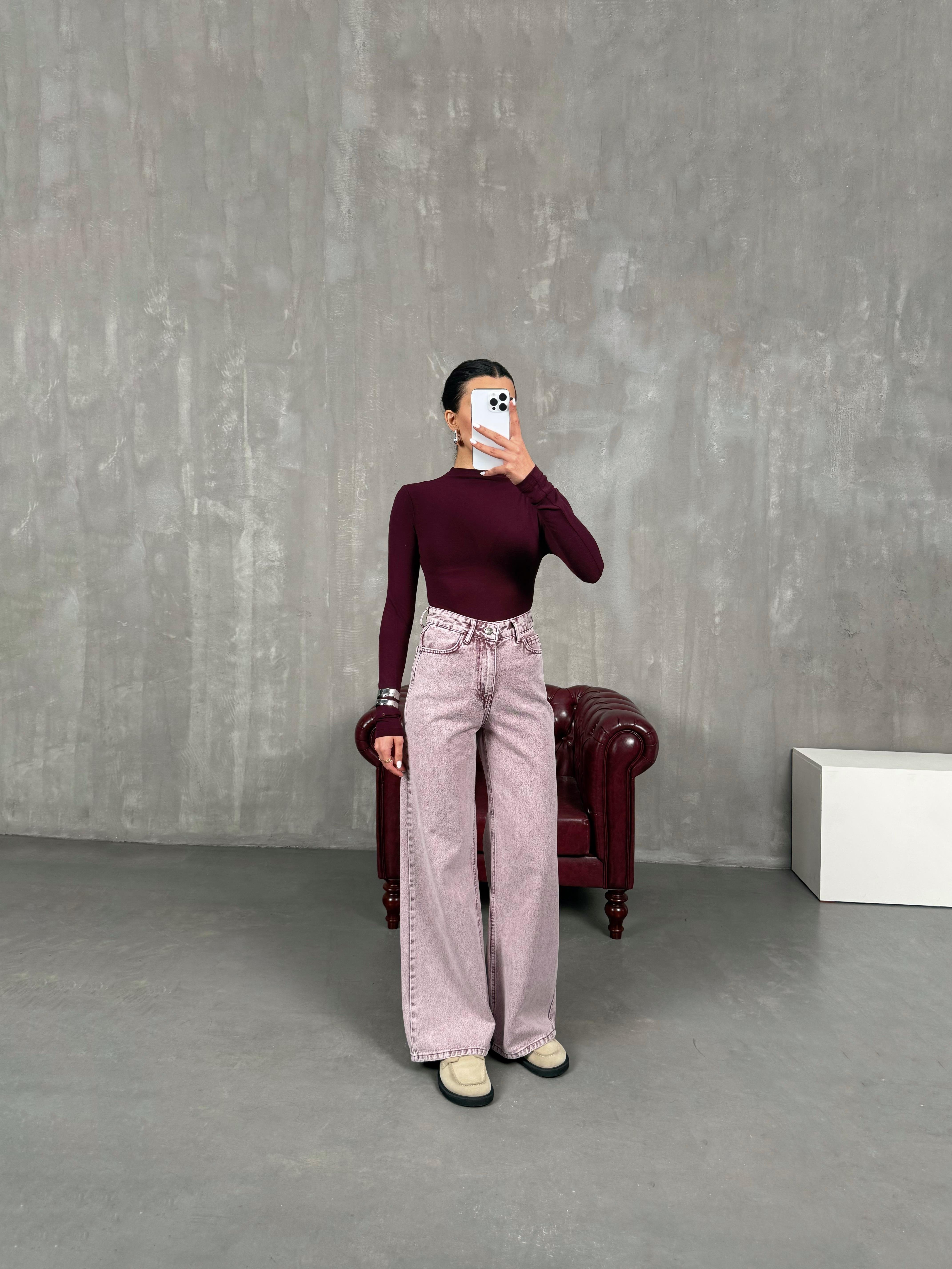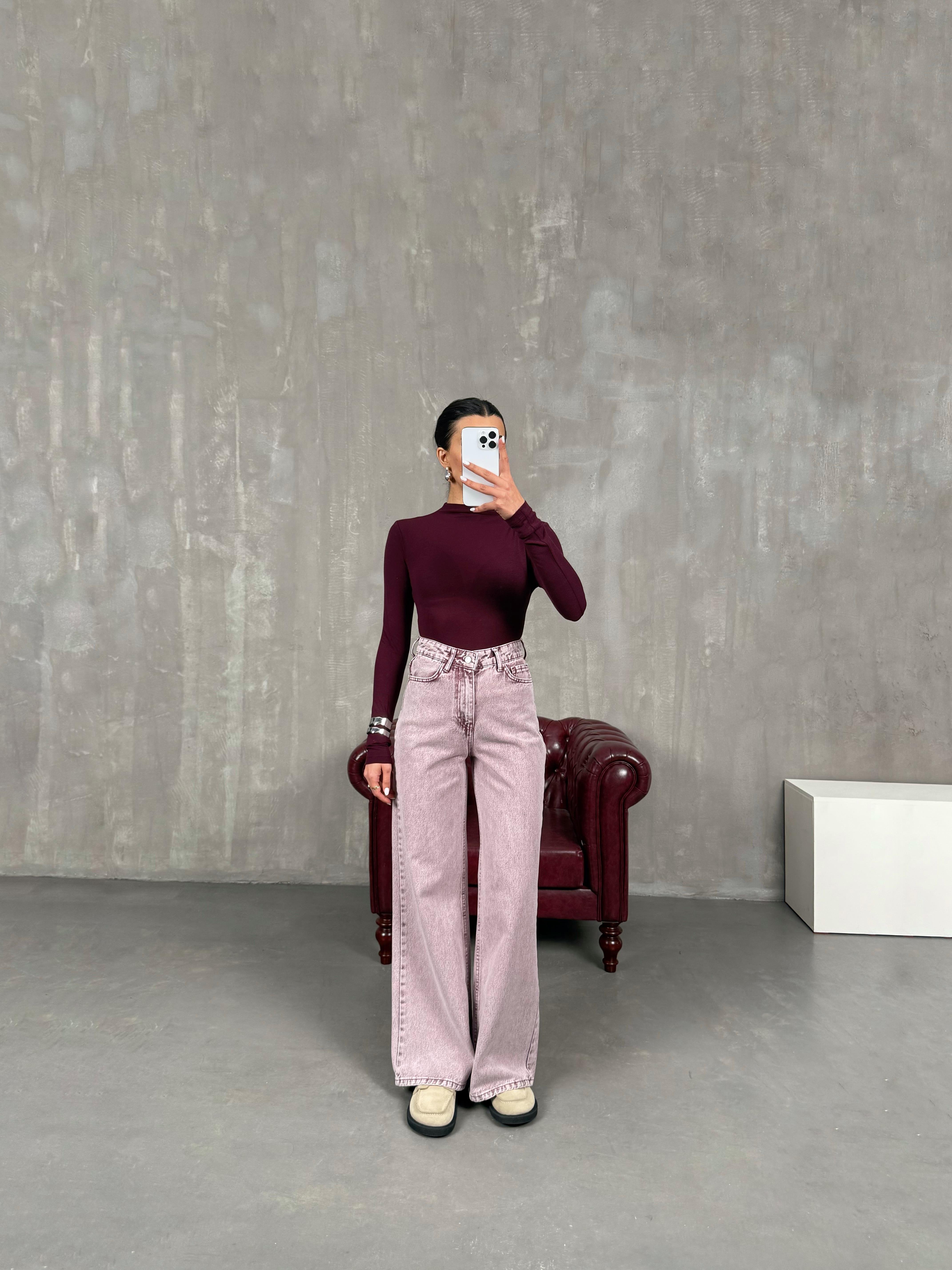 هيكتور ‎جينز مغسول واسع الساق لون وردي