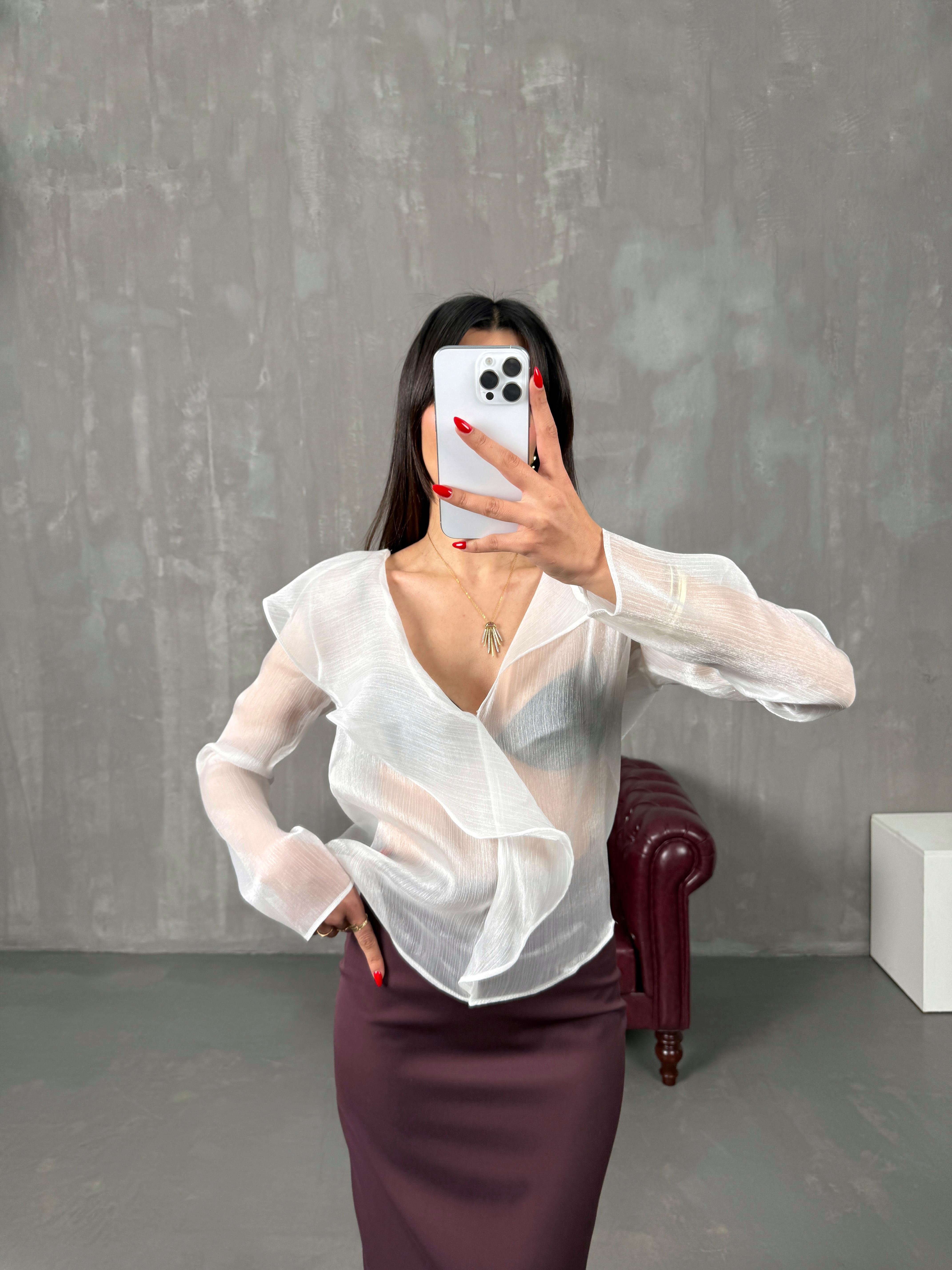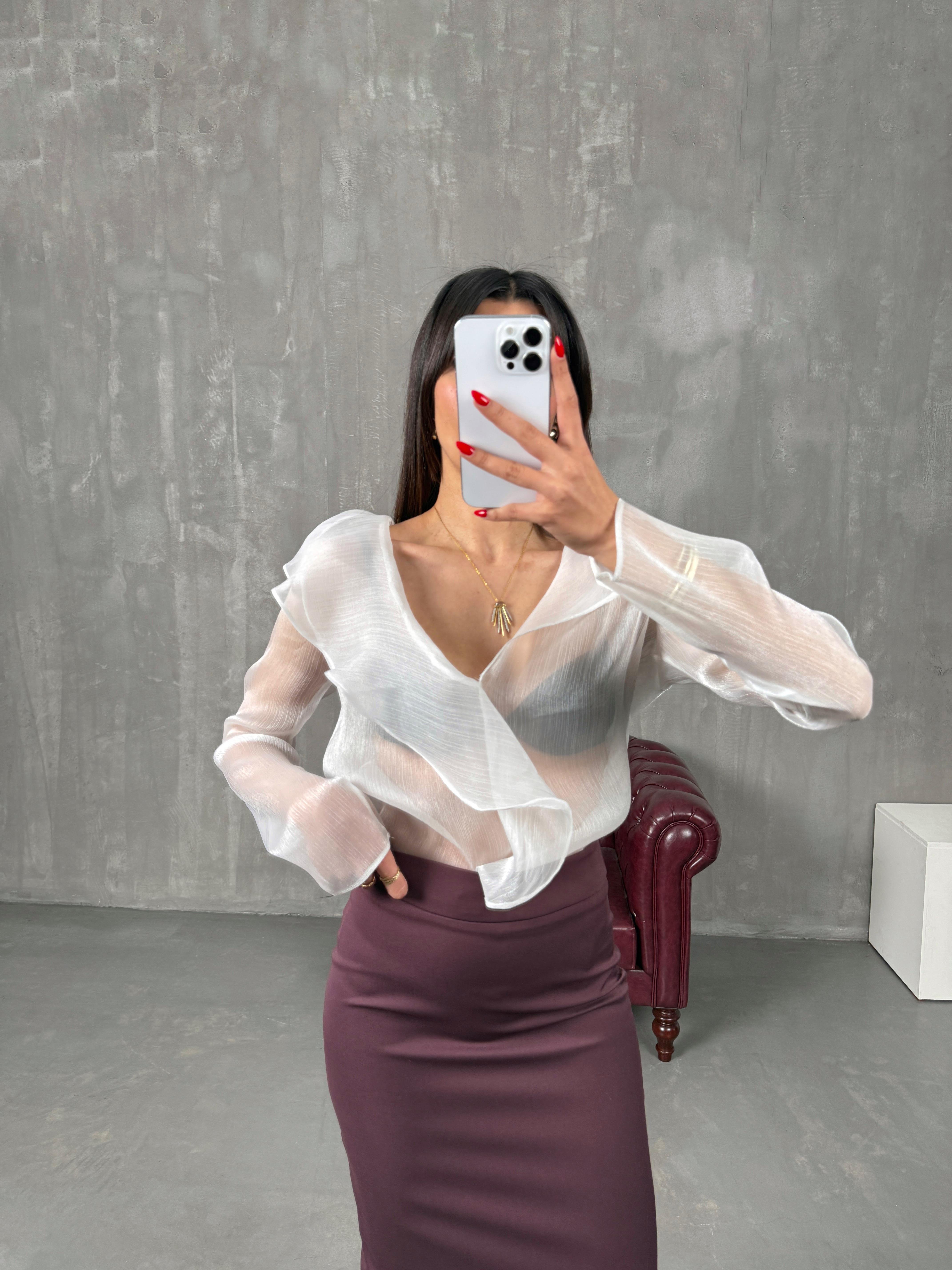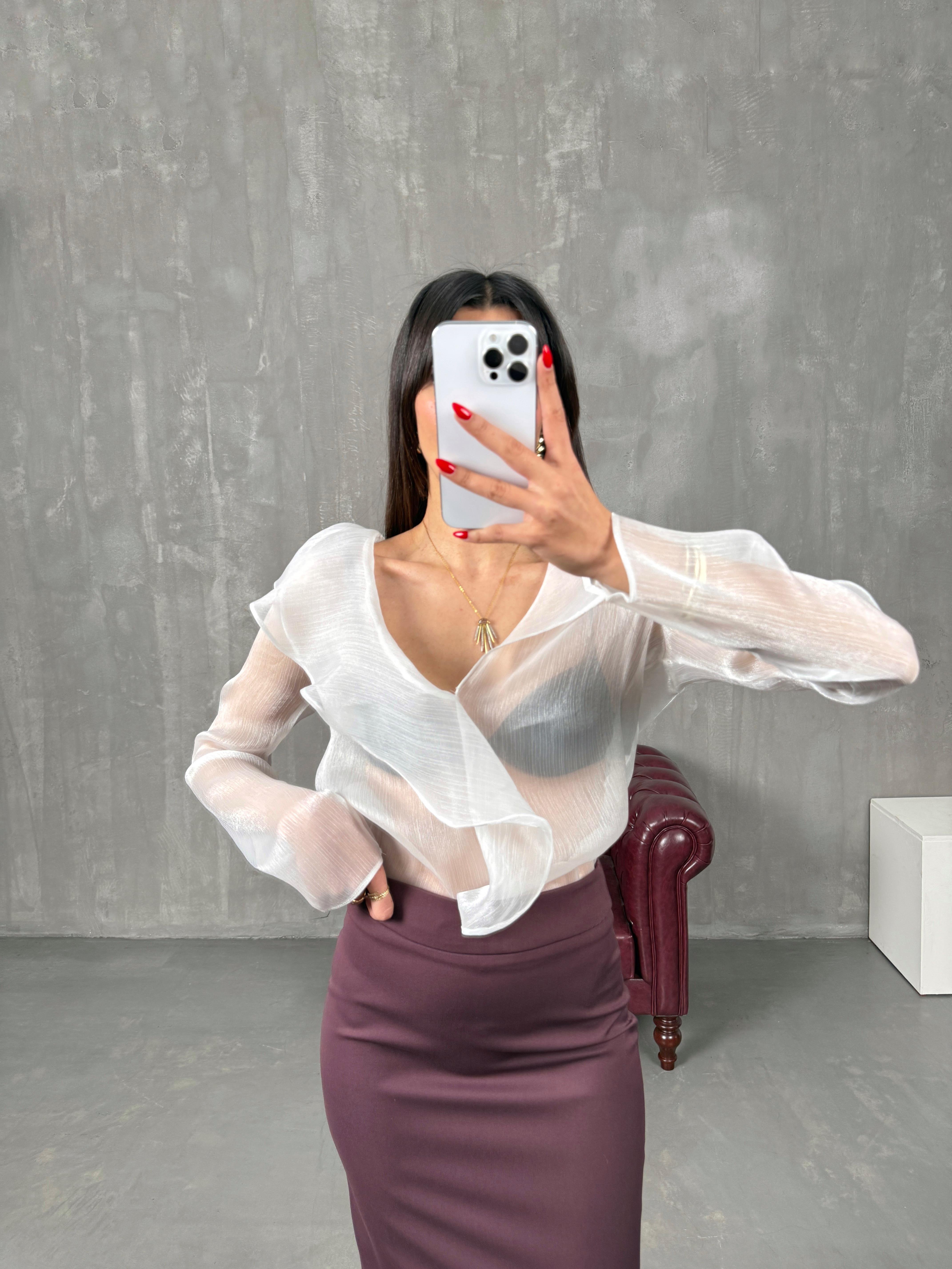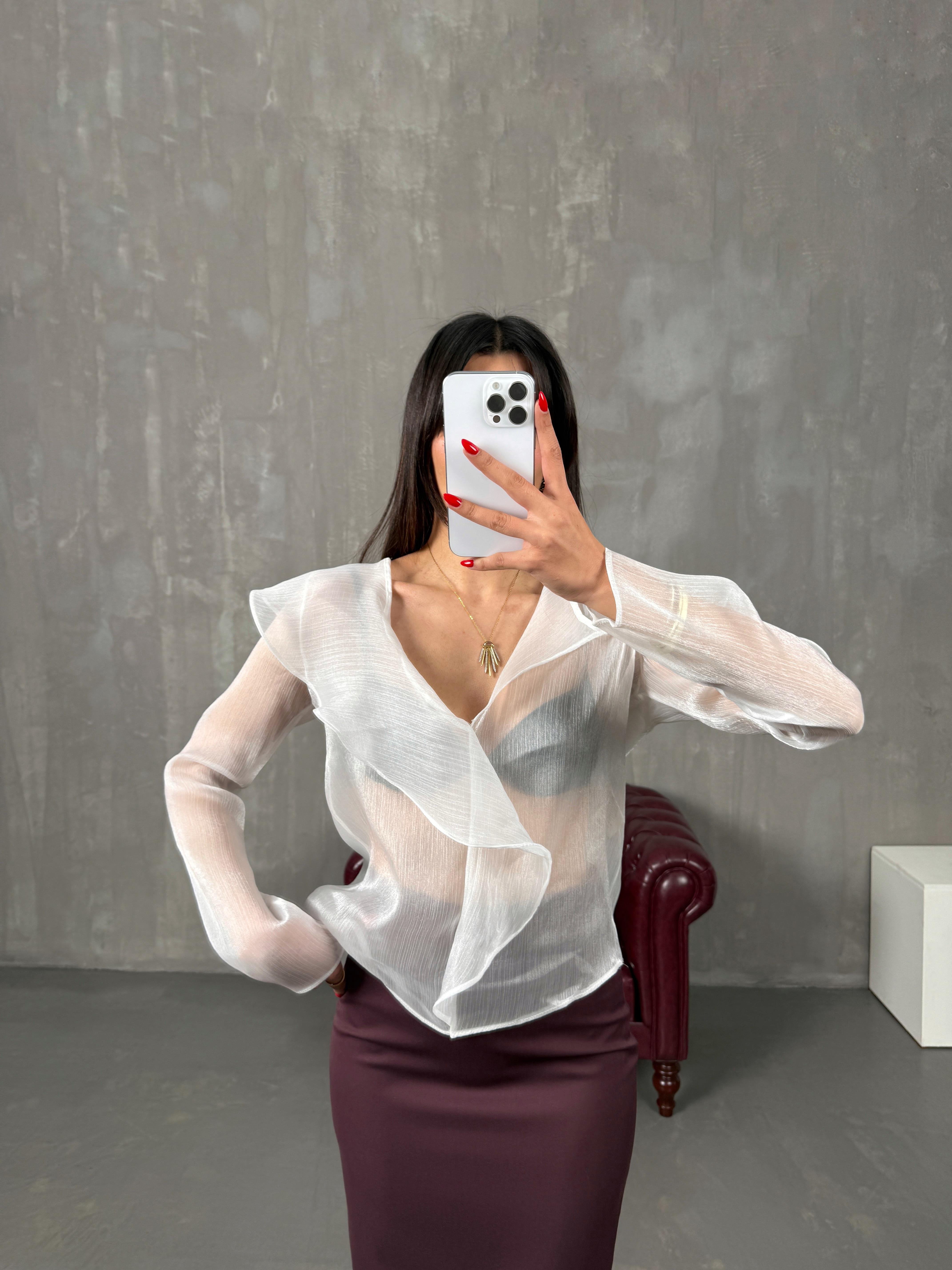 جافا بلوزة شفافة لون أبيض مُعادل لإم دي