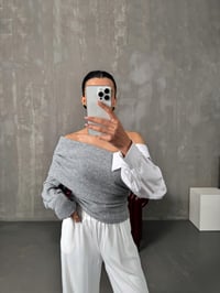 Jarse Gri Kayık Yaka Gömlek Detaylı Triko Bluz