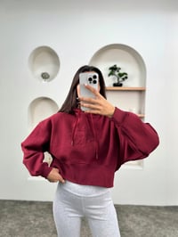 Jime Bordo Muadil Crop Kapüşonlu  Şardonlu Sweatshirt