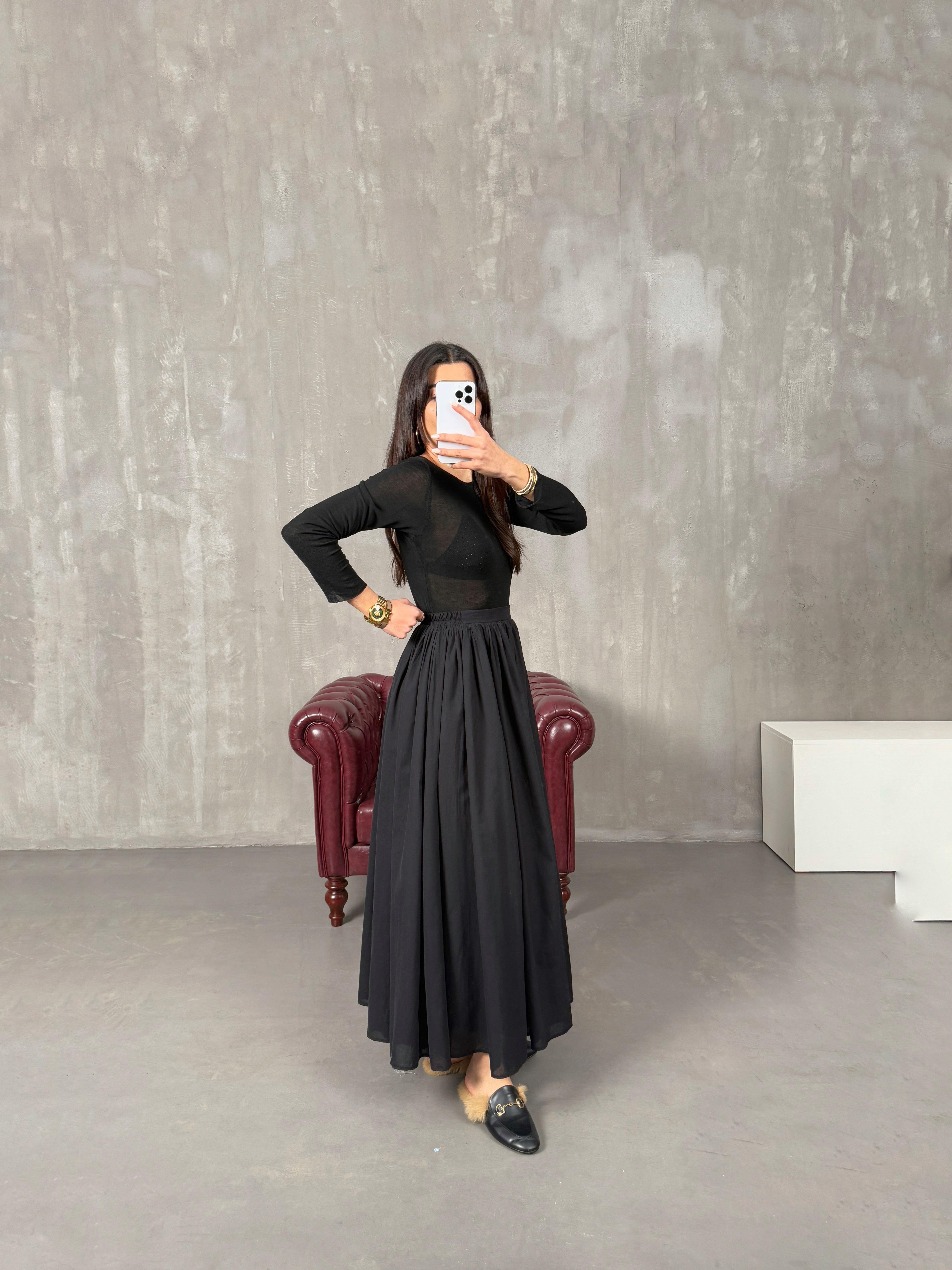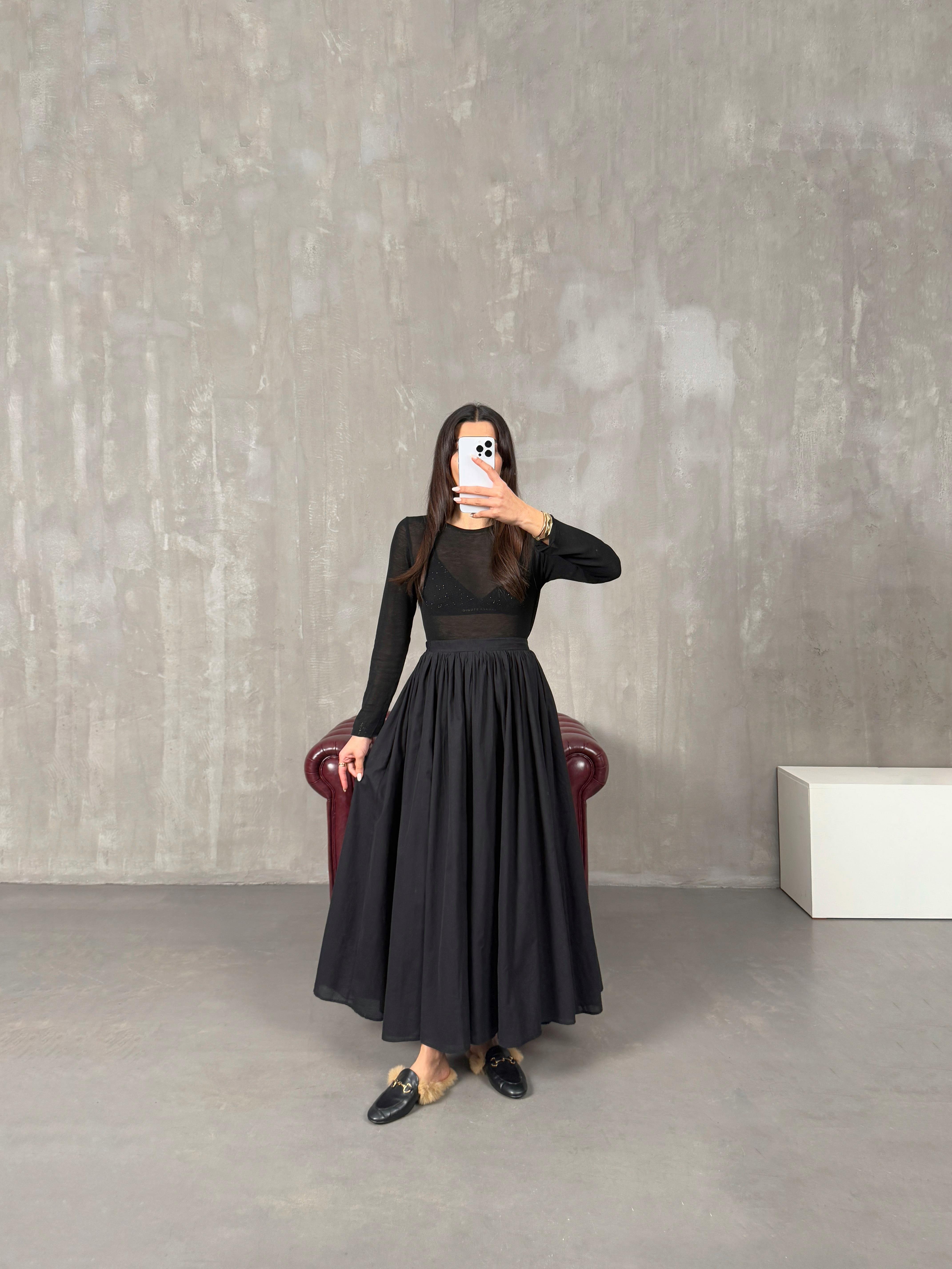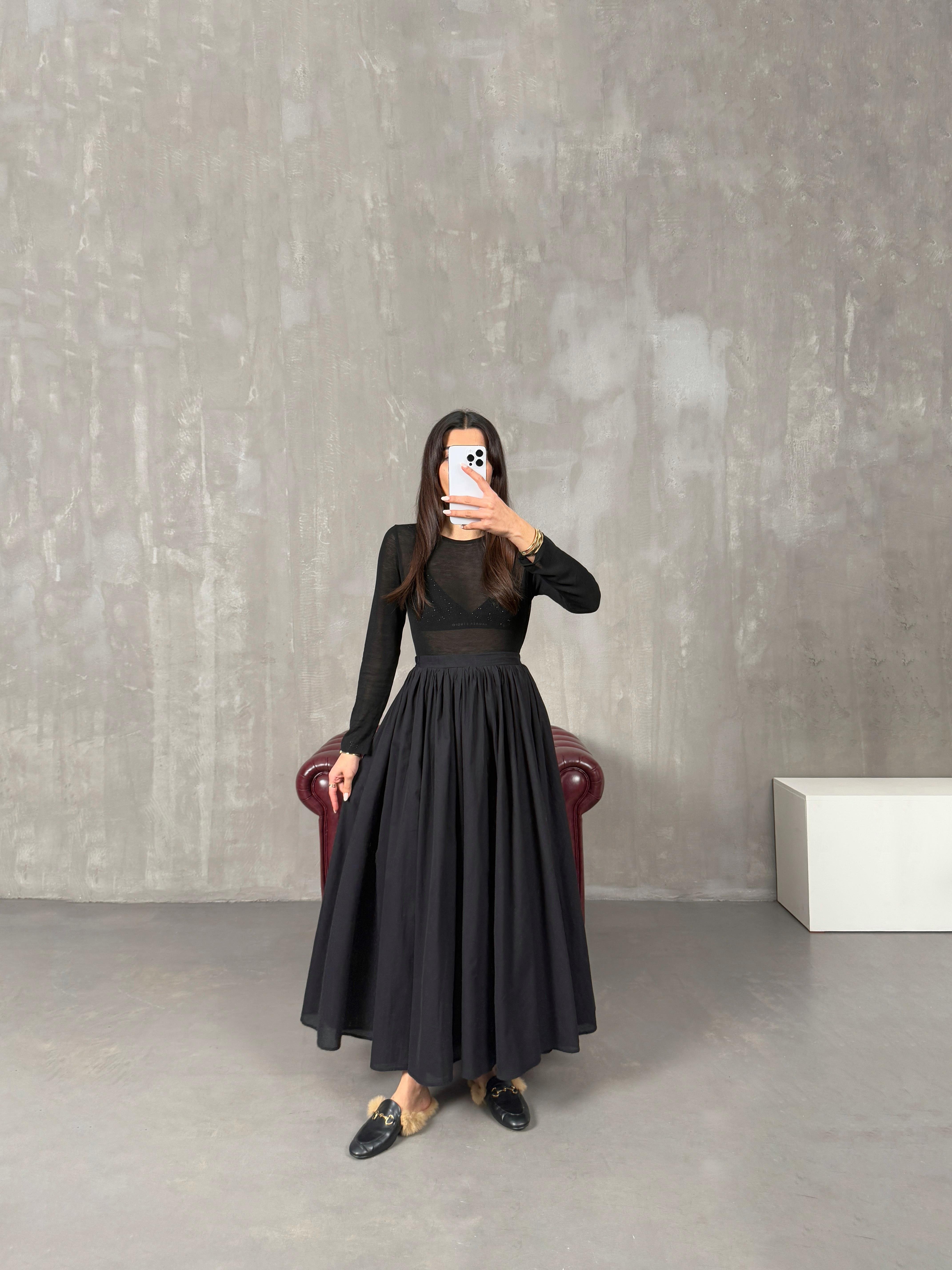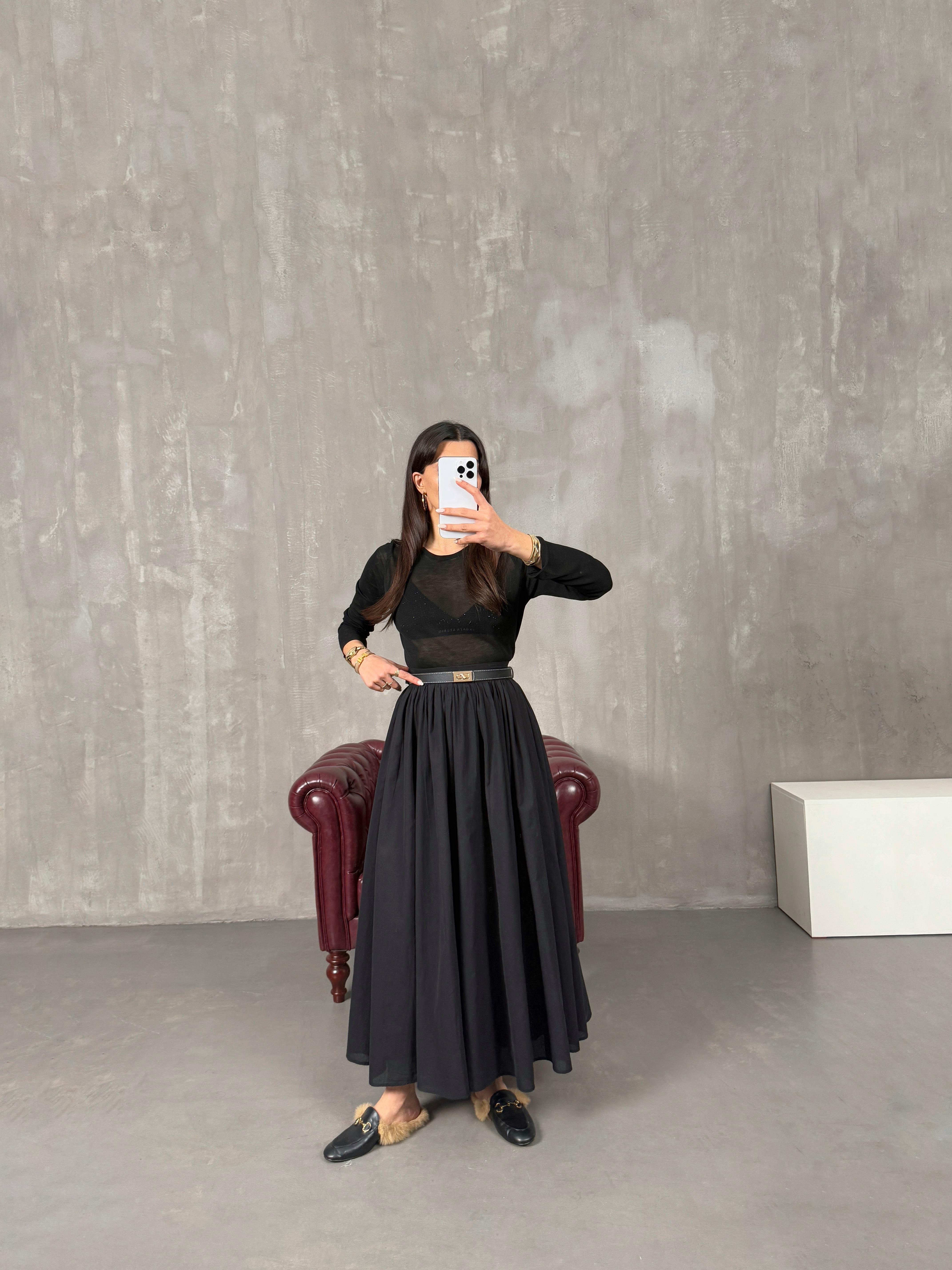 Jolena Siyah Astarlı Vual Kumaş Etek
