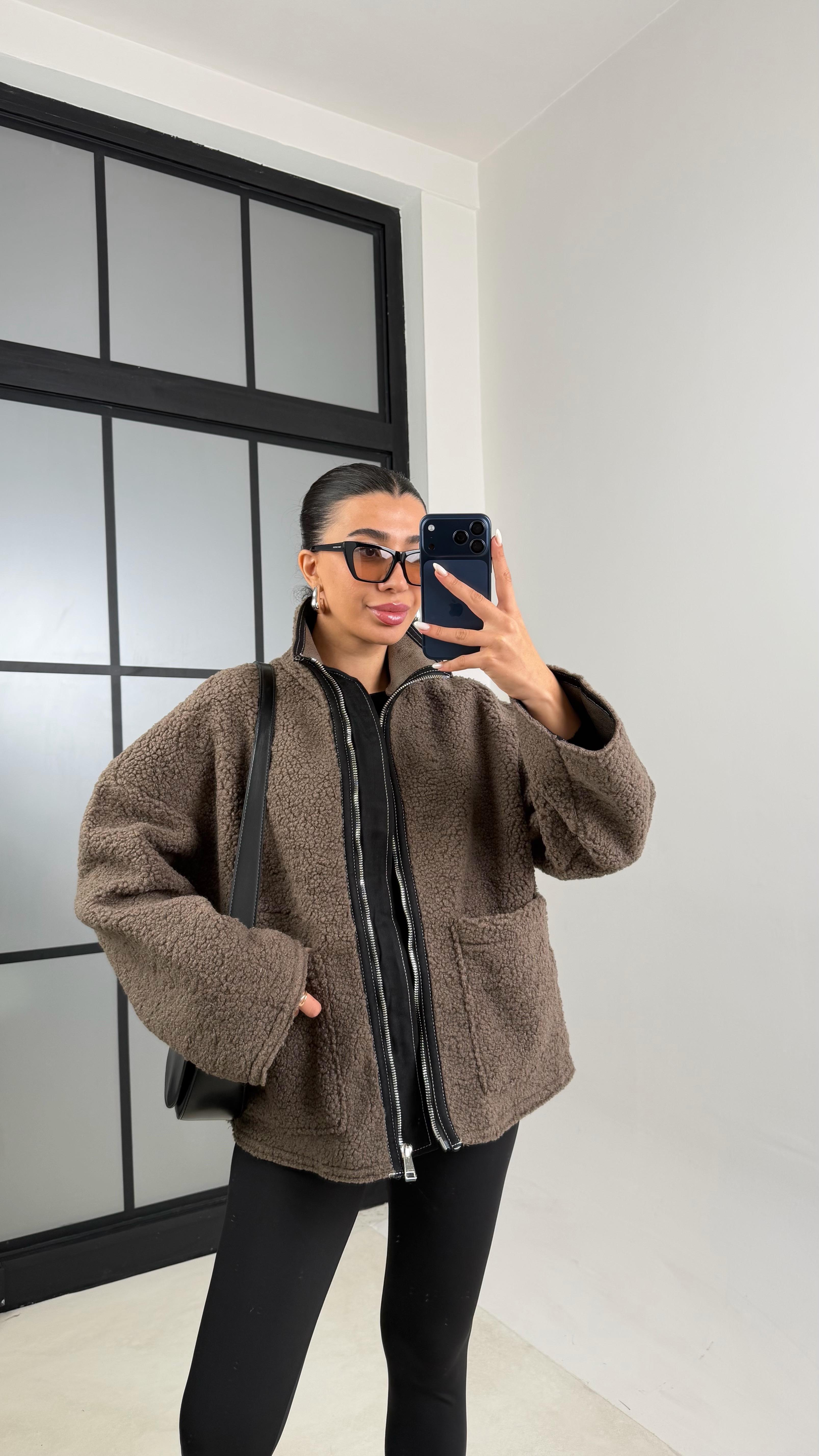 Kahve Cepli Fermuarlı Peluş Mont GAUS-00602GAUS الجواكيت GAUS-00602