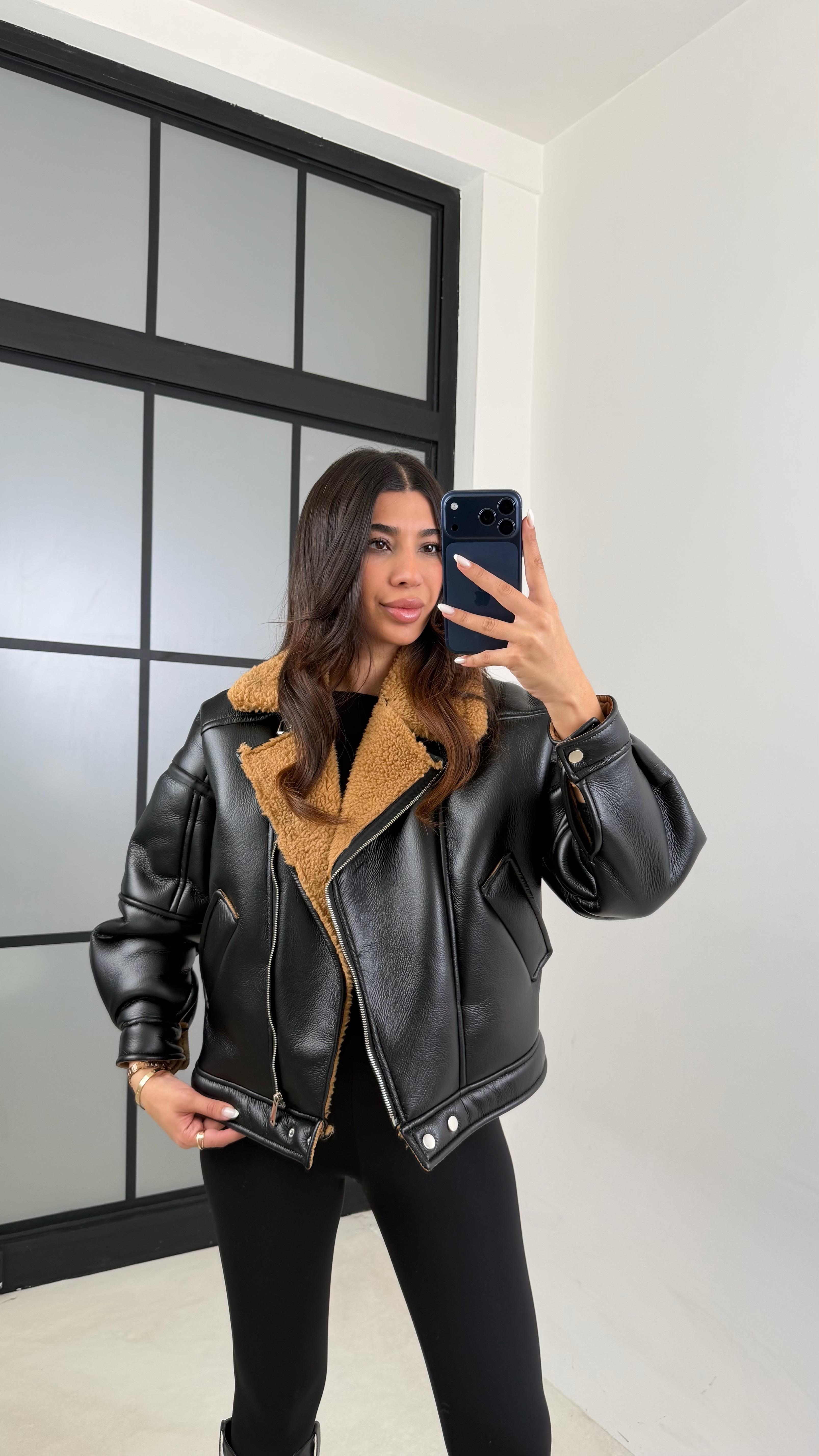 Kahve İçi Peluşlu Deri Mont GAUS-00608
