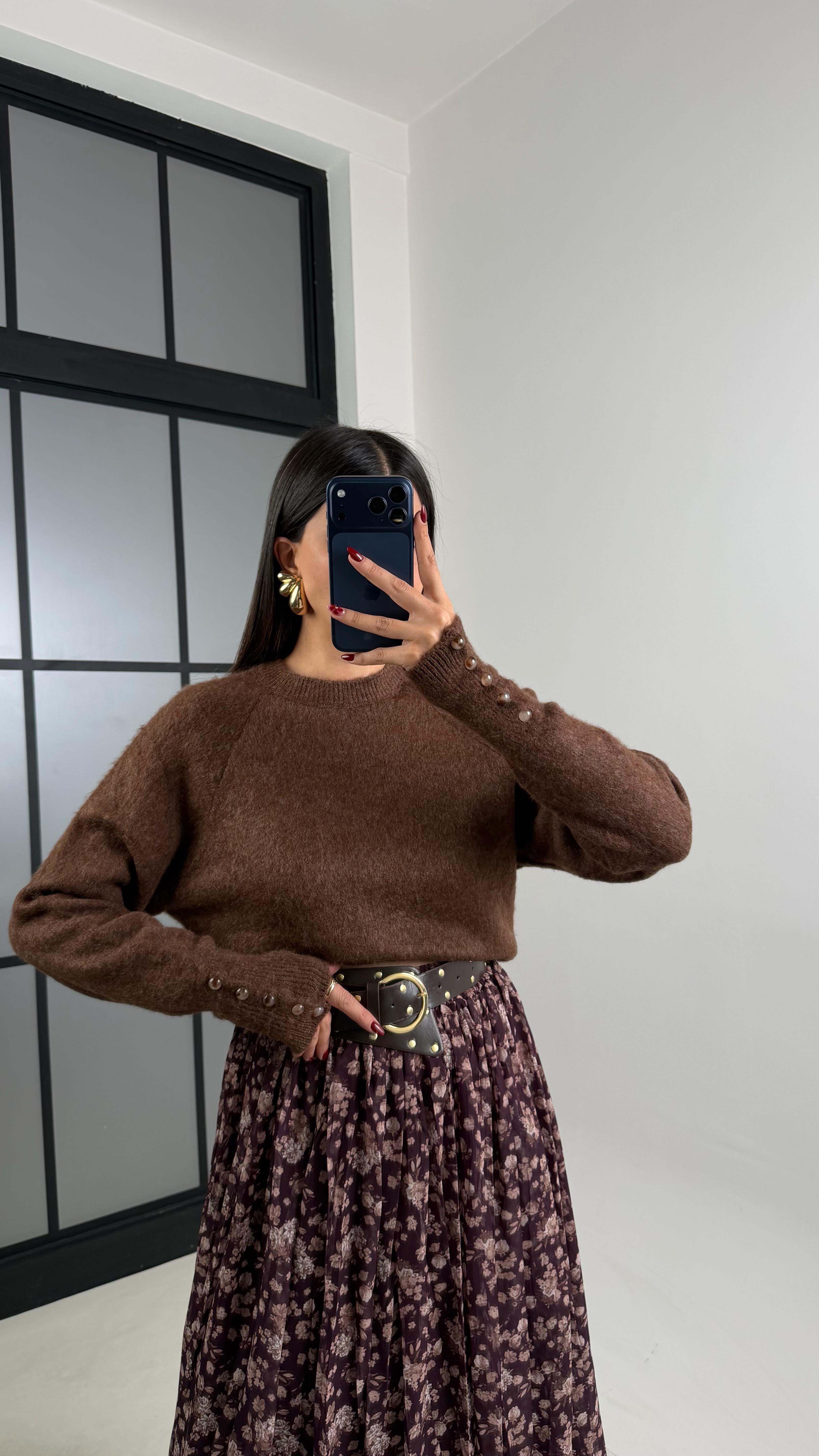 Kahve İtalyan Kol Yumuşak Dokulu Triko Kazak GAUS-00644