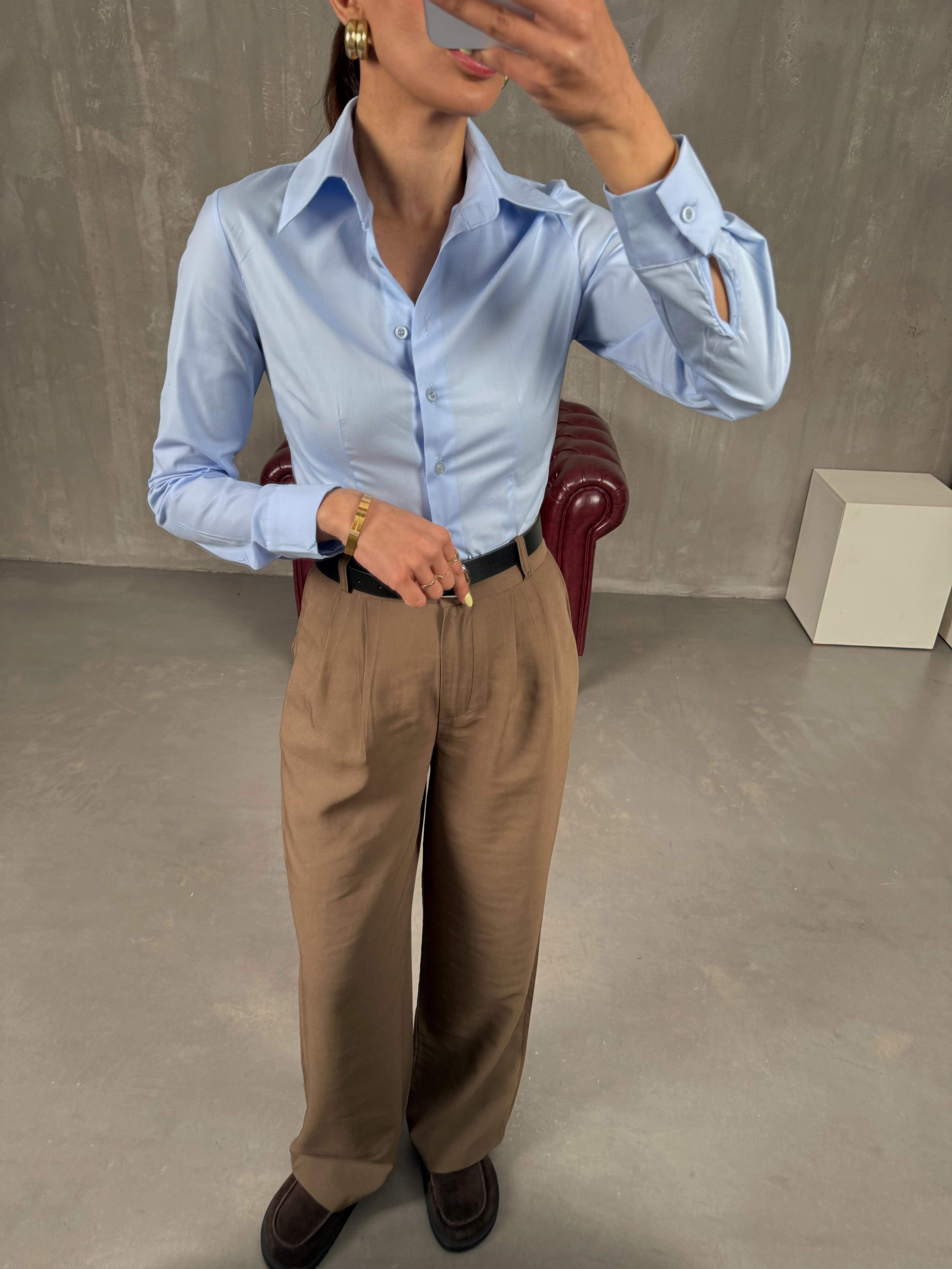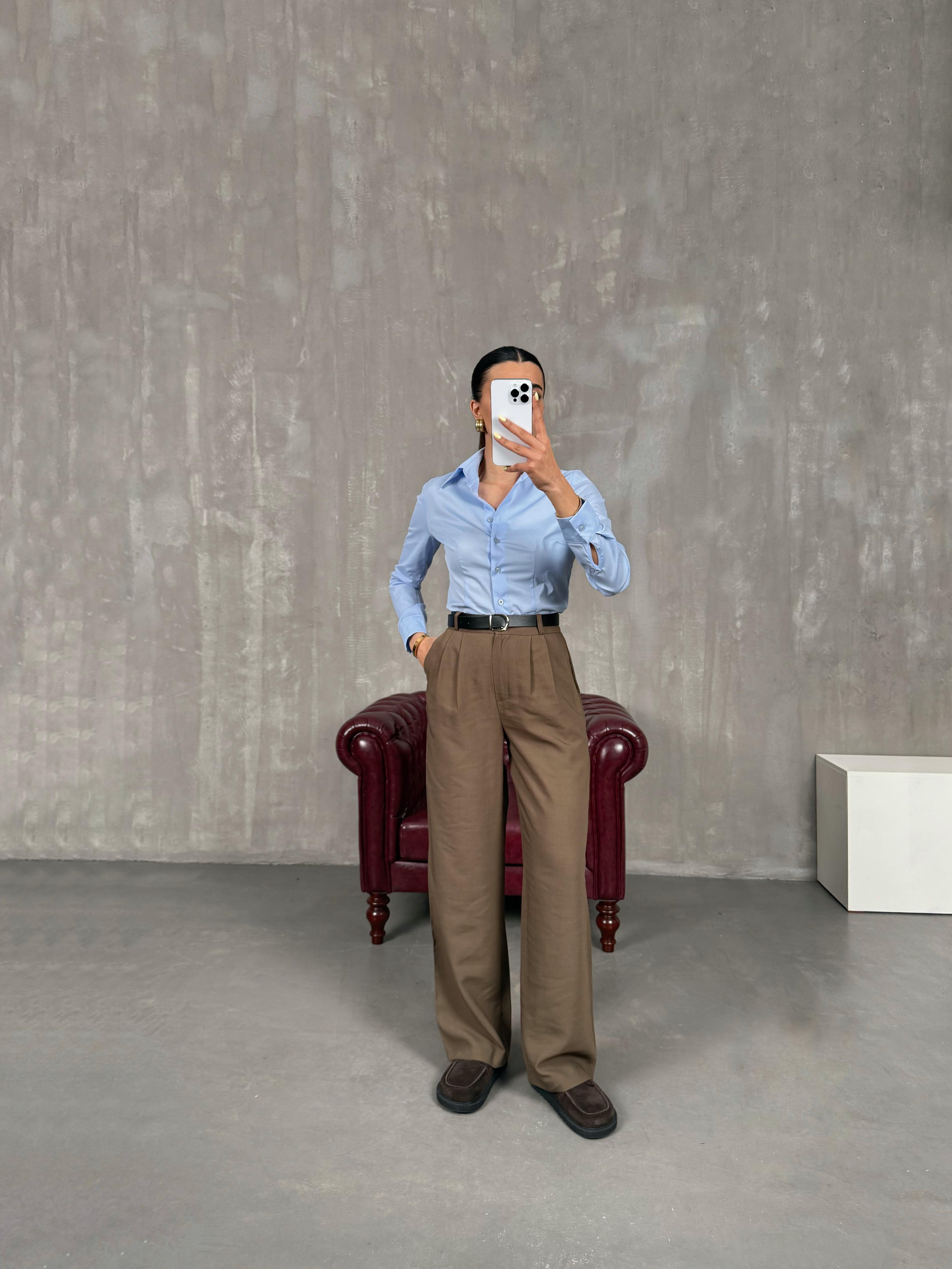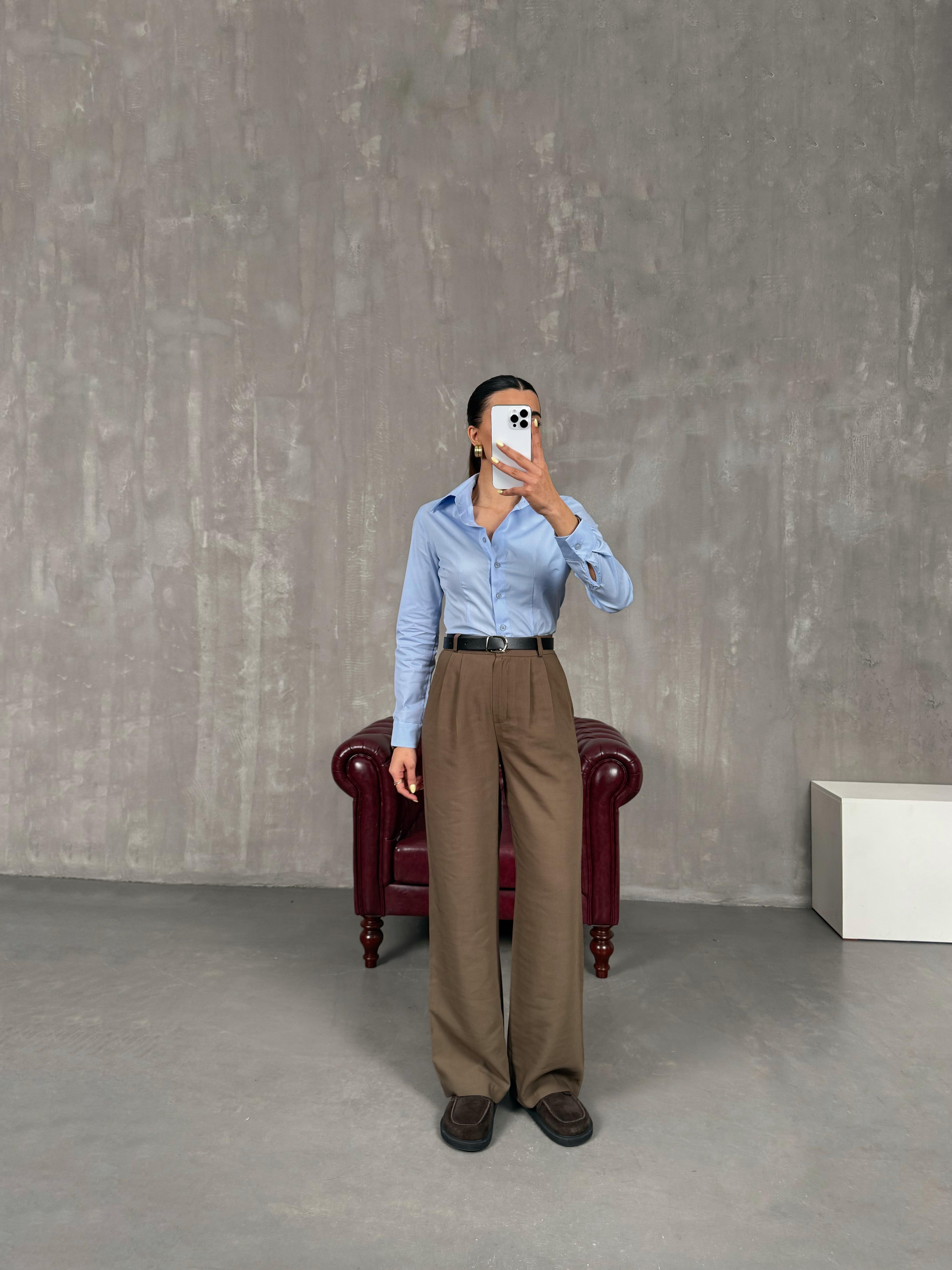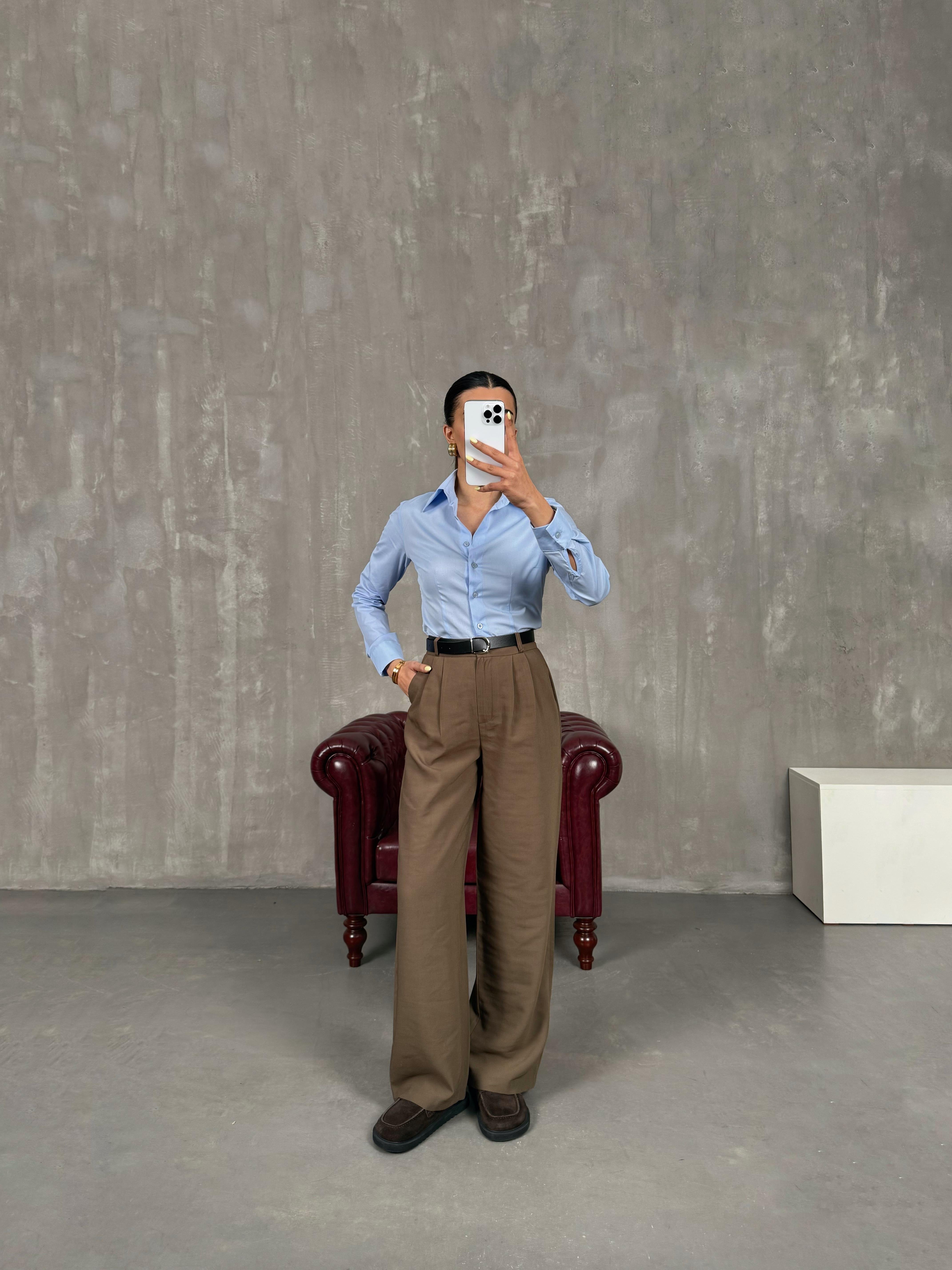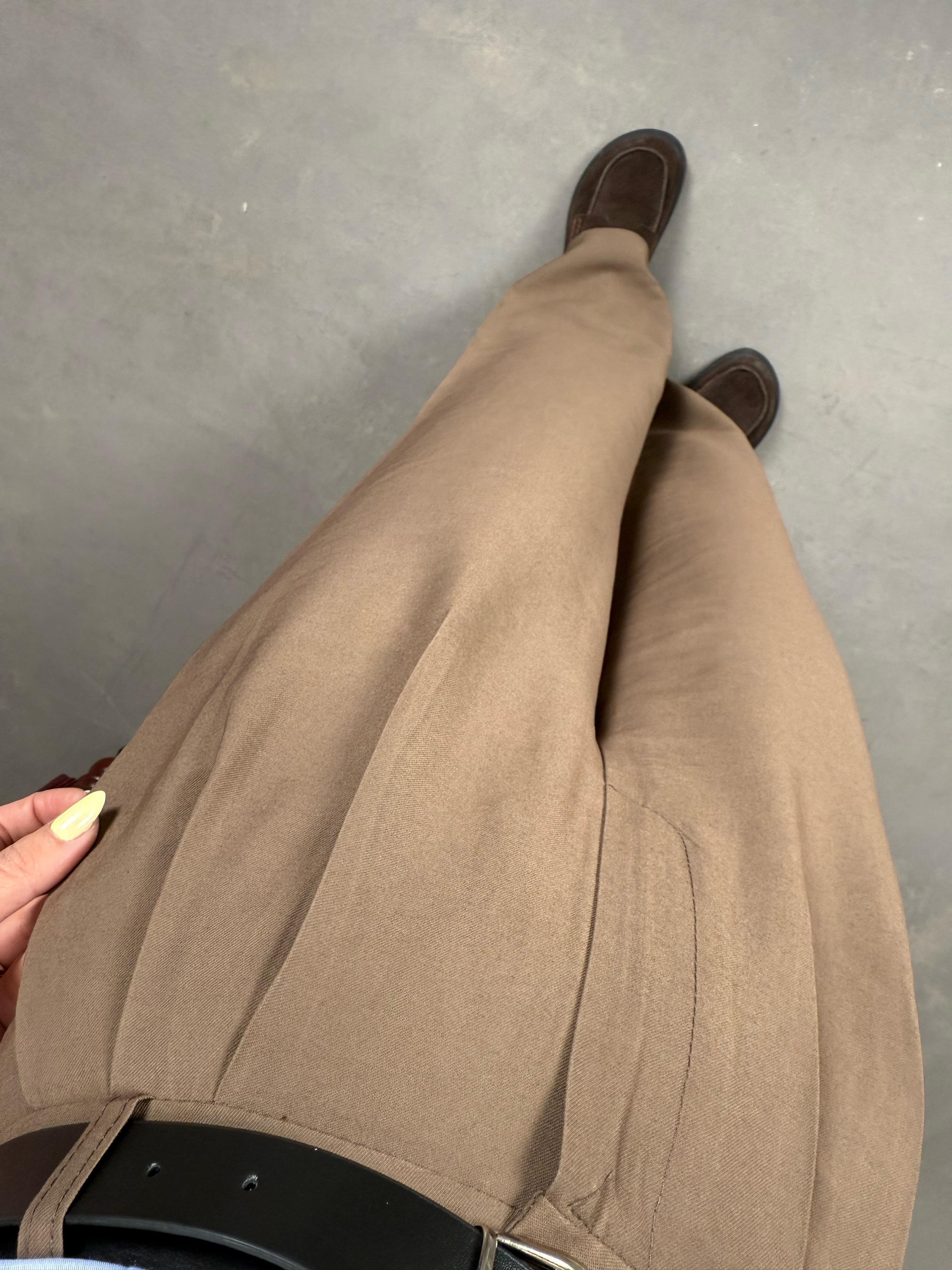 بنطال بالازو بني قماش مستورد مع حزام Gaus00090
