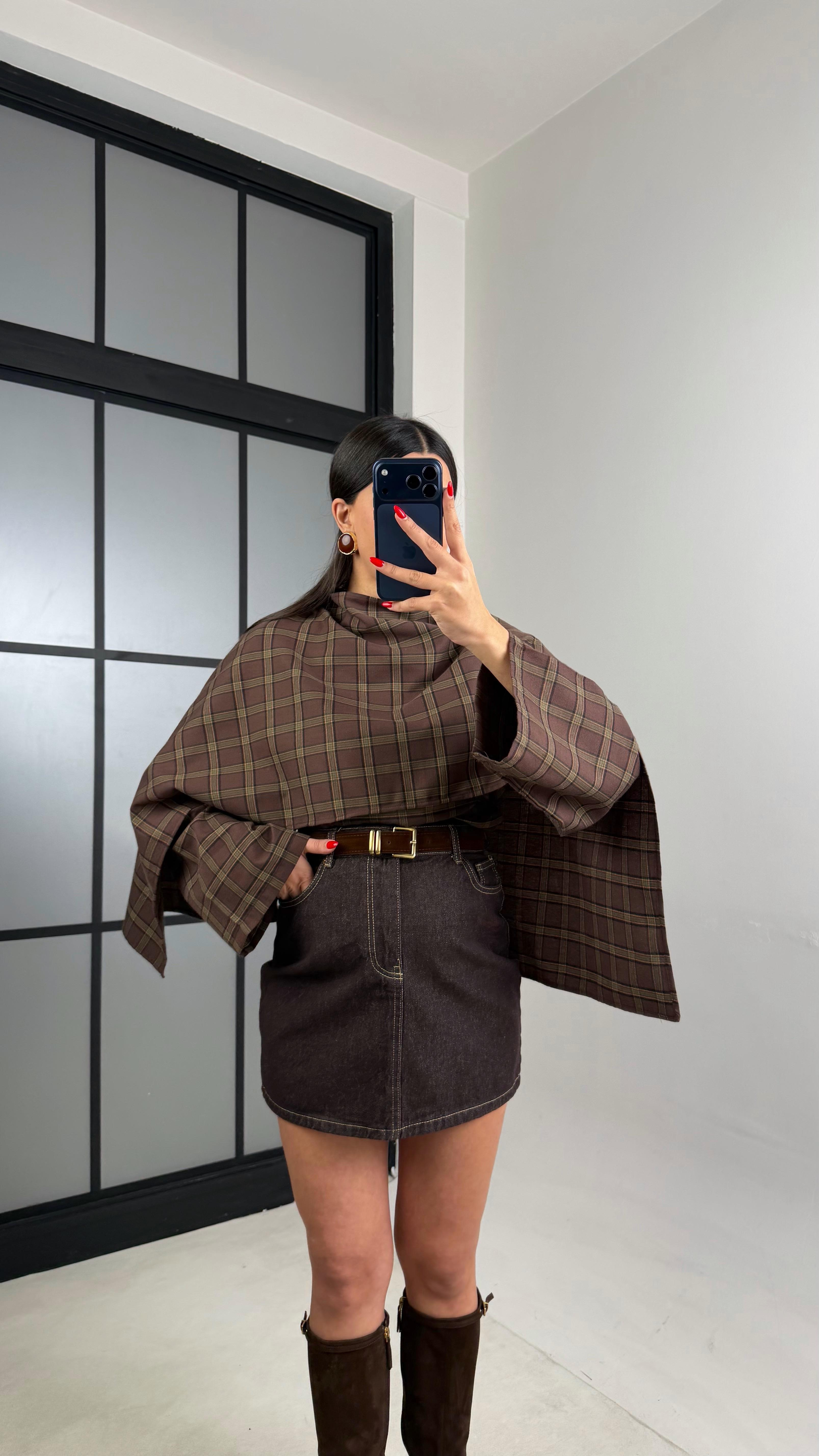 Kahve Kemerli Mini Denim Etek GAUS-01042