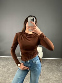 Kahverengi Yandan Büzgülü Bluz