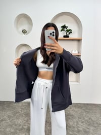 Khloe Antrasit Üç İplik Şardonlu Kapüşonlu Fermuarlı Sweatshirt