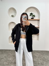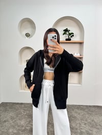Khloe Siyah Üç İplik Şardonlu Kapüşonlu Fermuarlı Sweatshirt