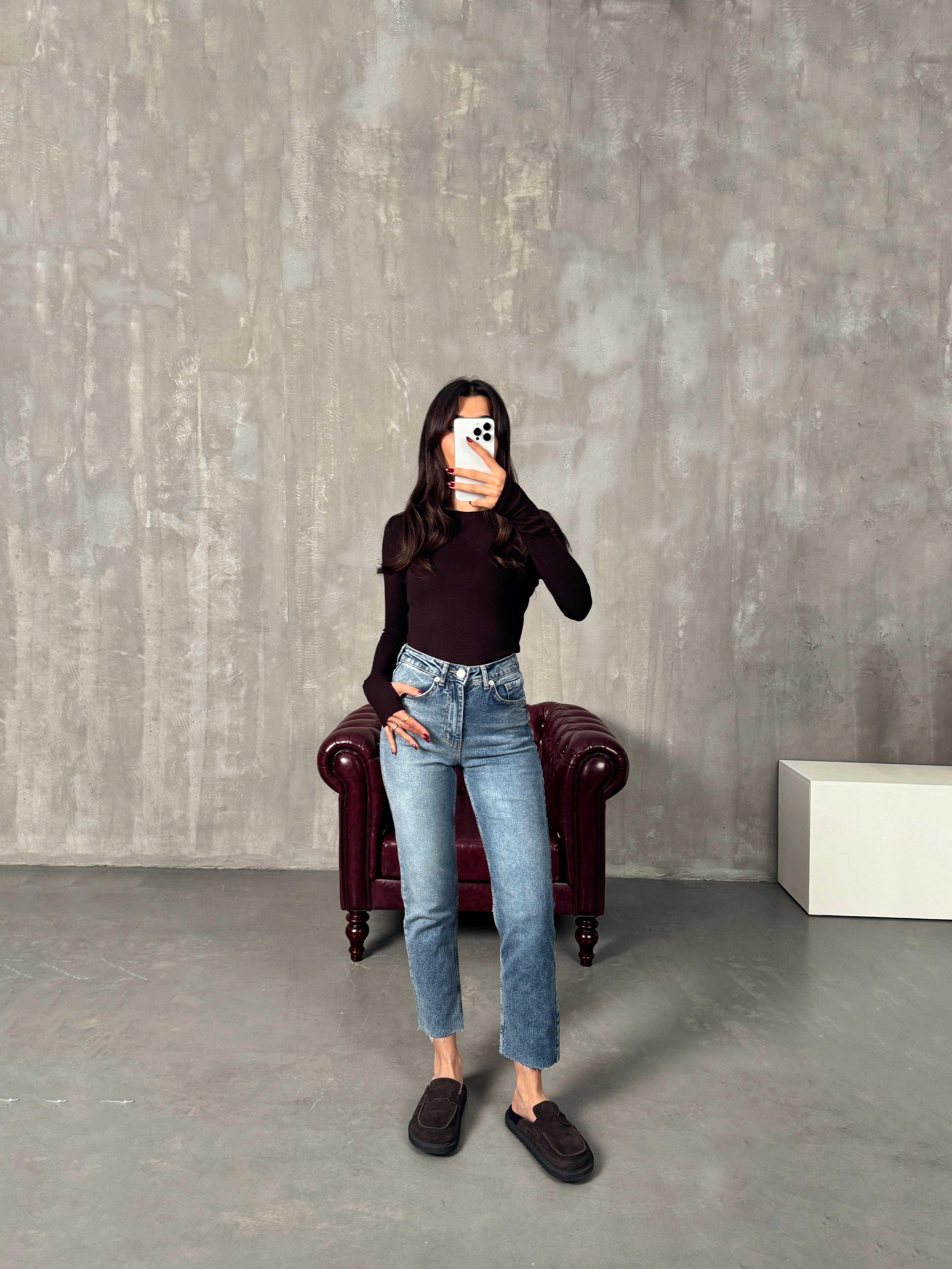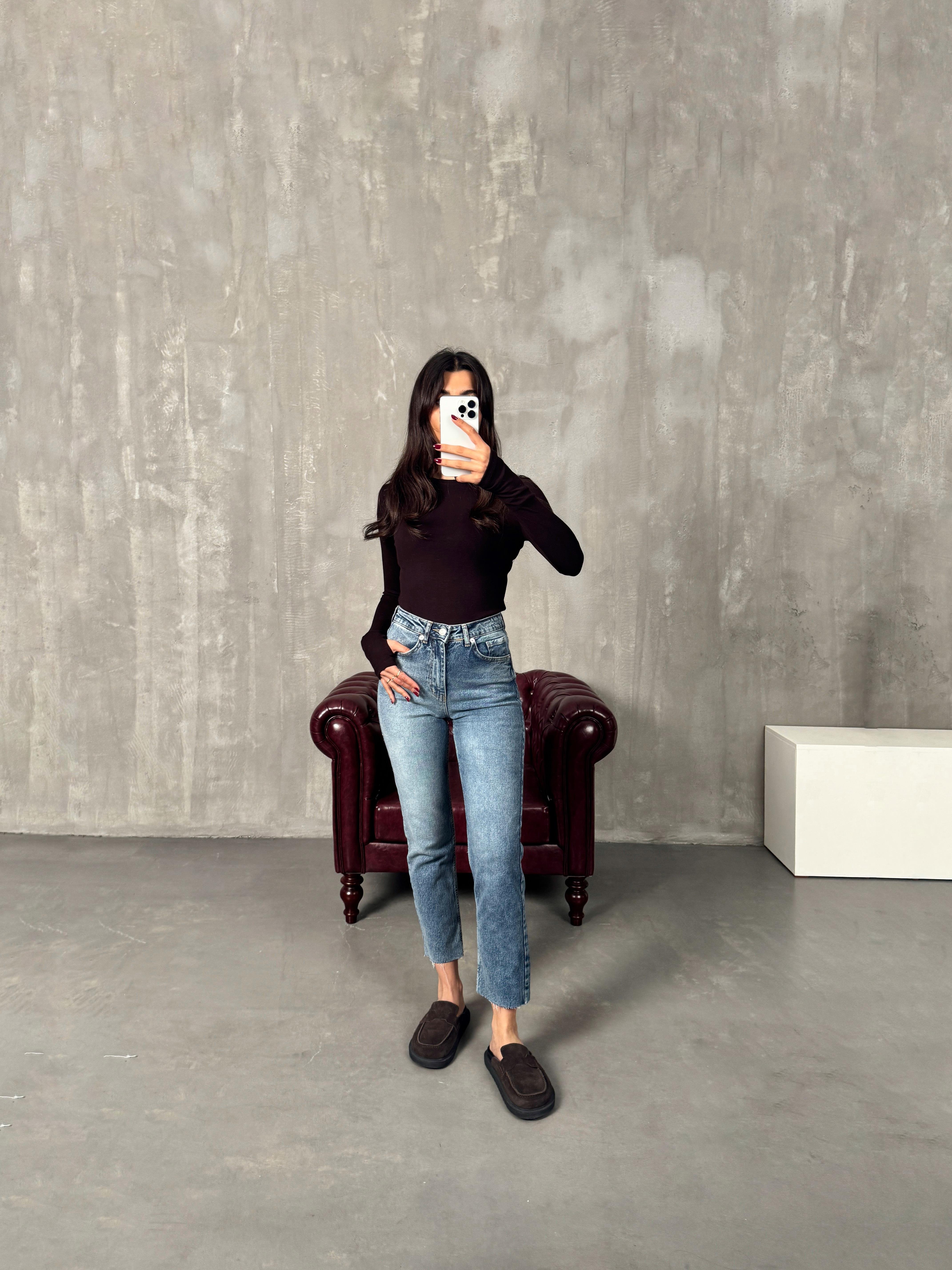 Kow Yıkamalı Mavi ZR Kesik Paça Mom Jean