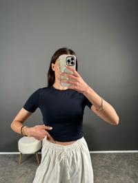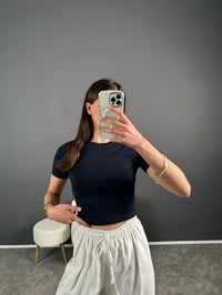 Ekru Gömlek Yaka Sırt Dekolteli Bluz Lacivert Basic Crop Tshirt
