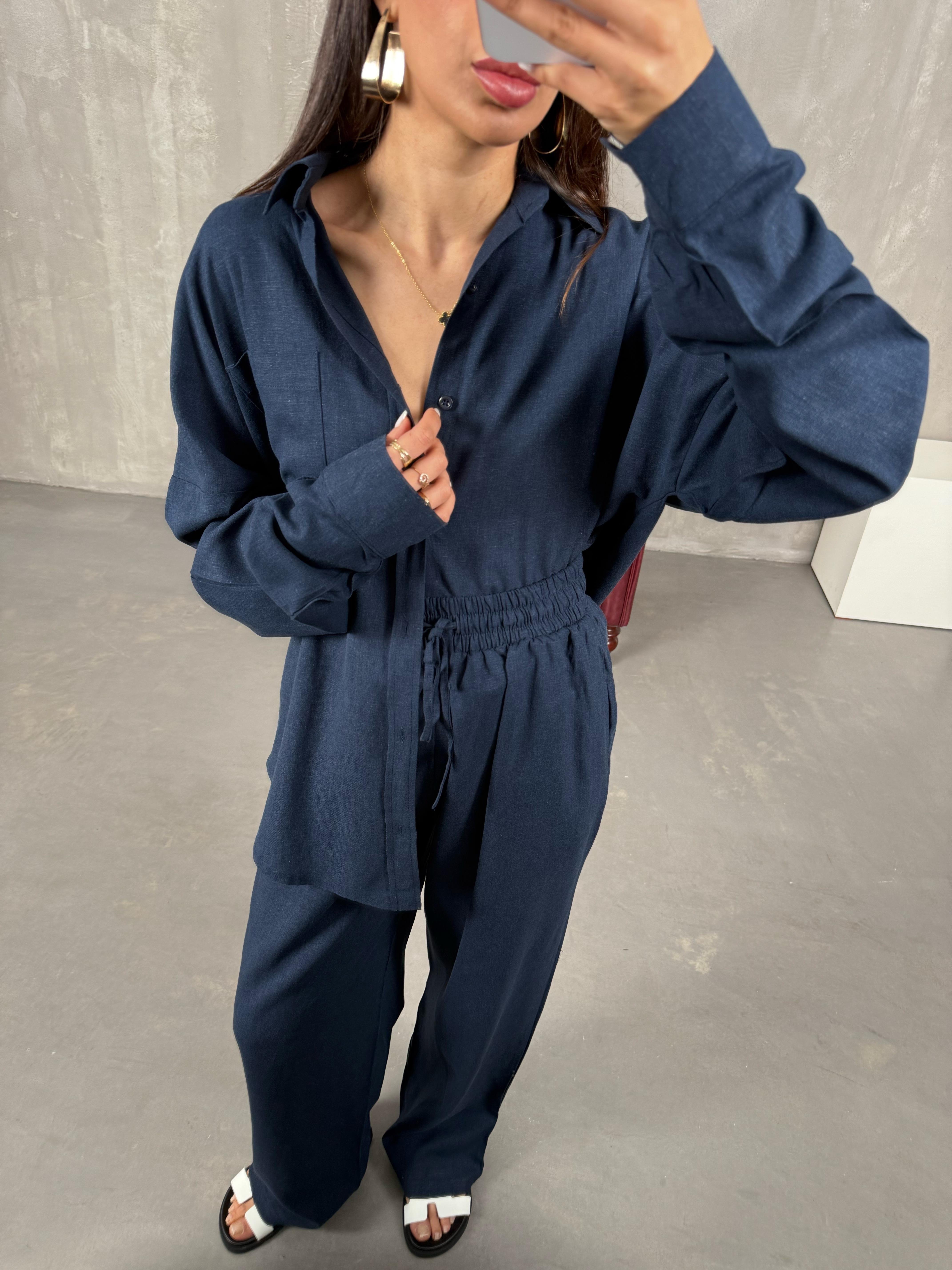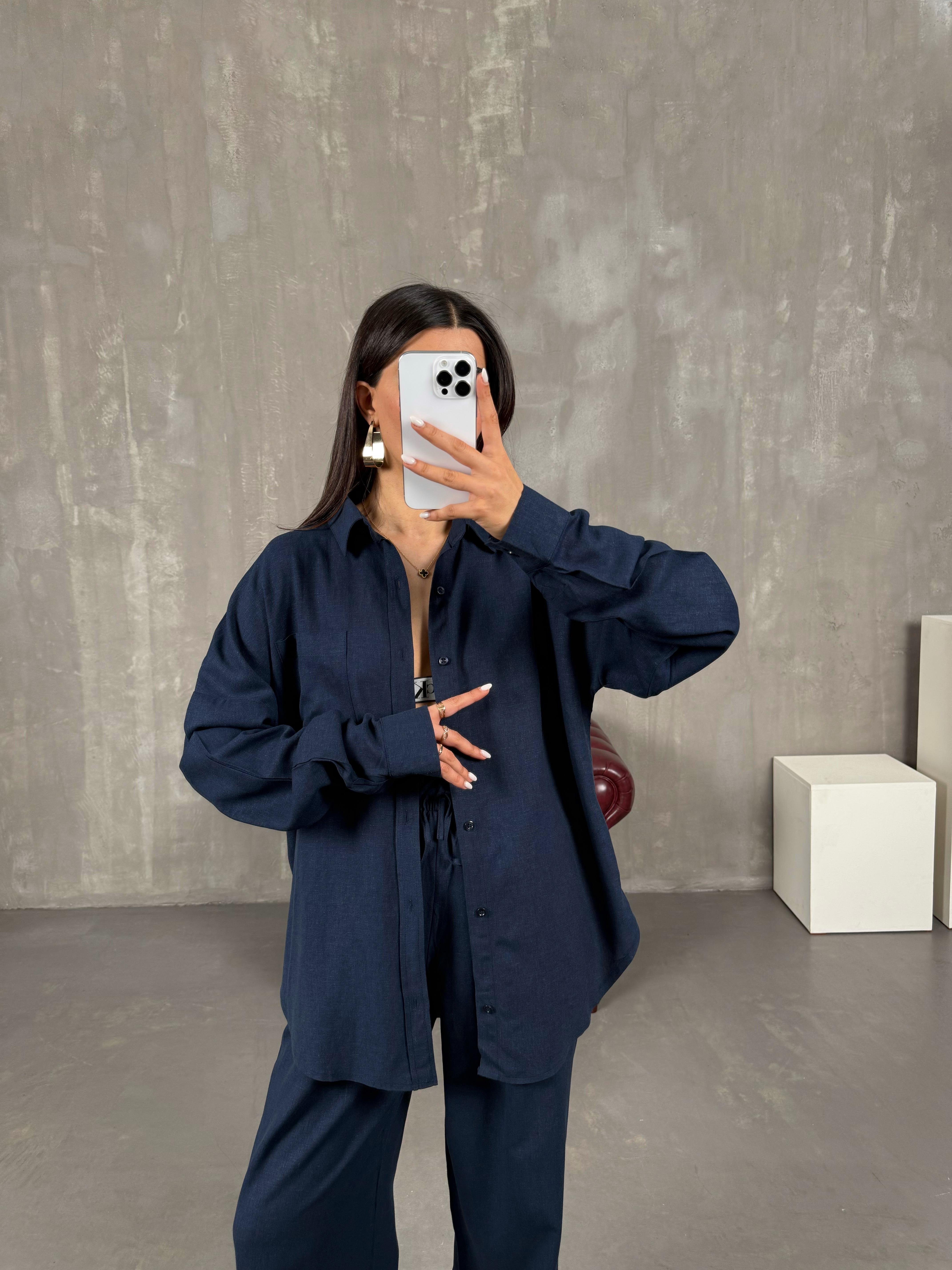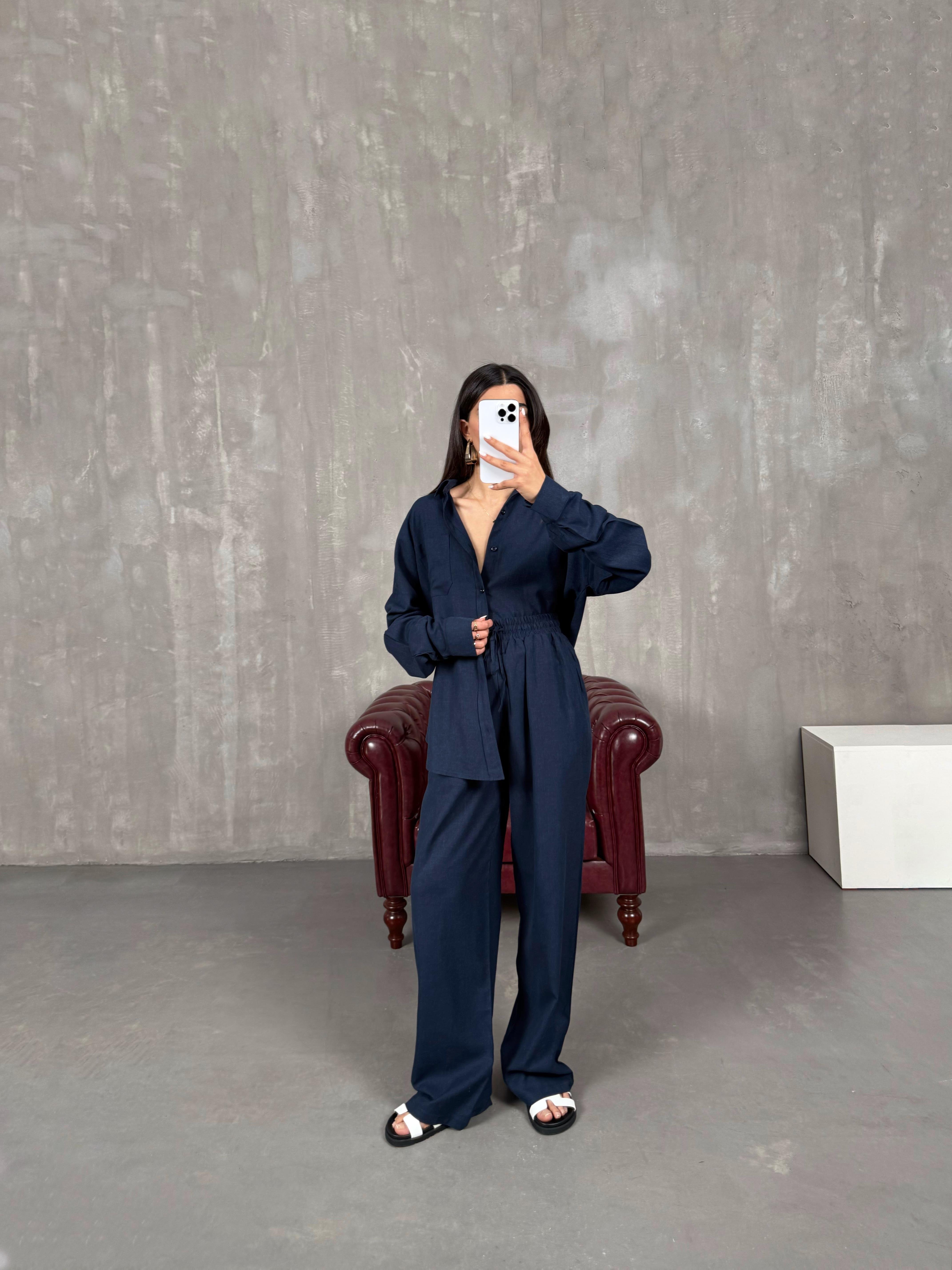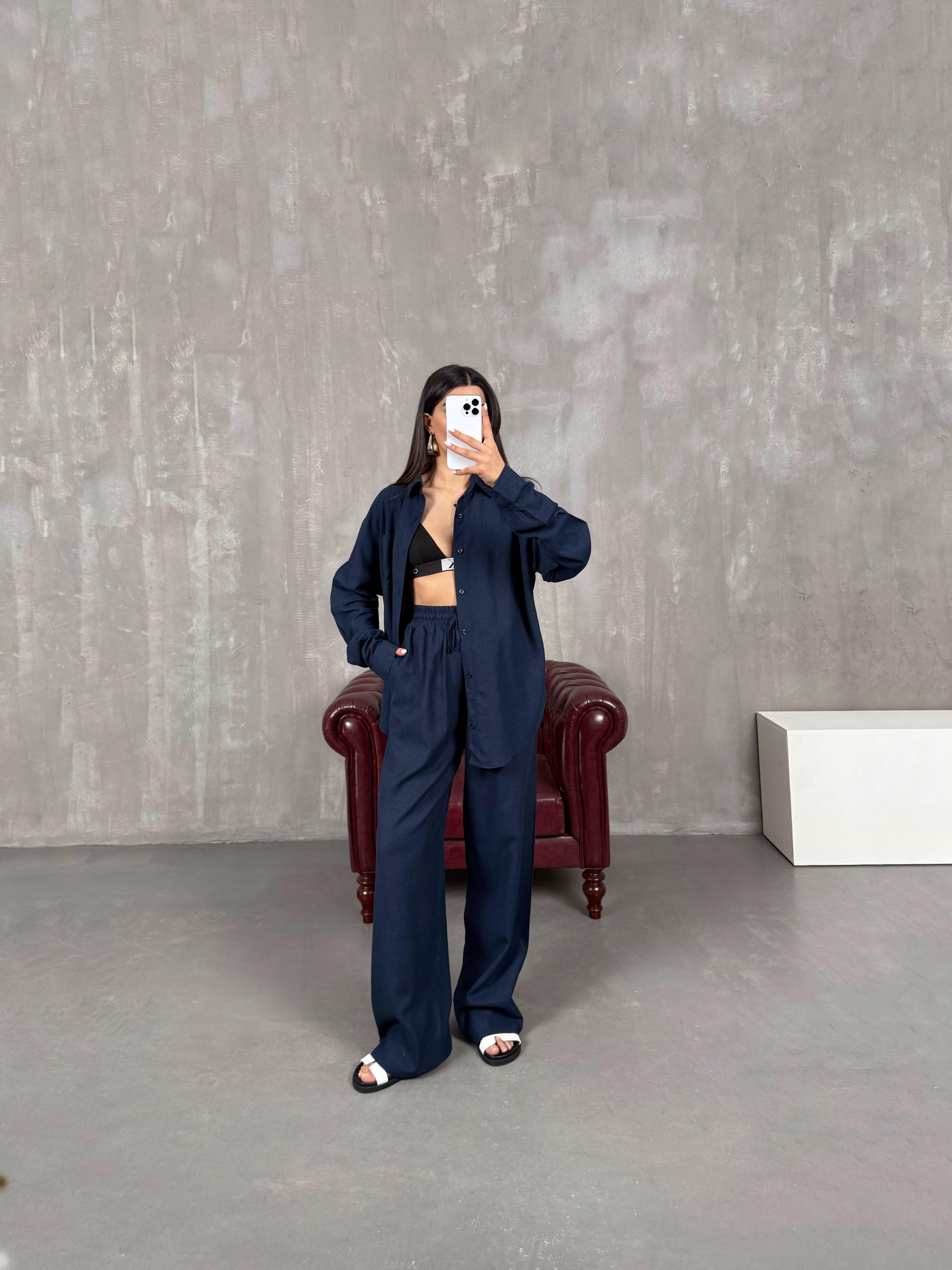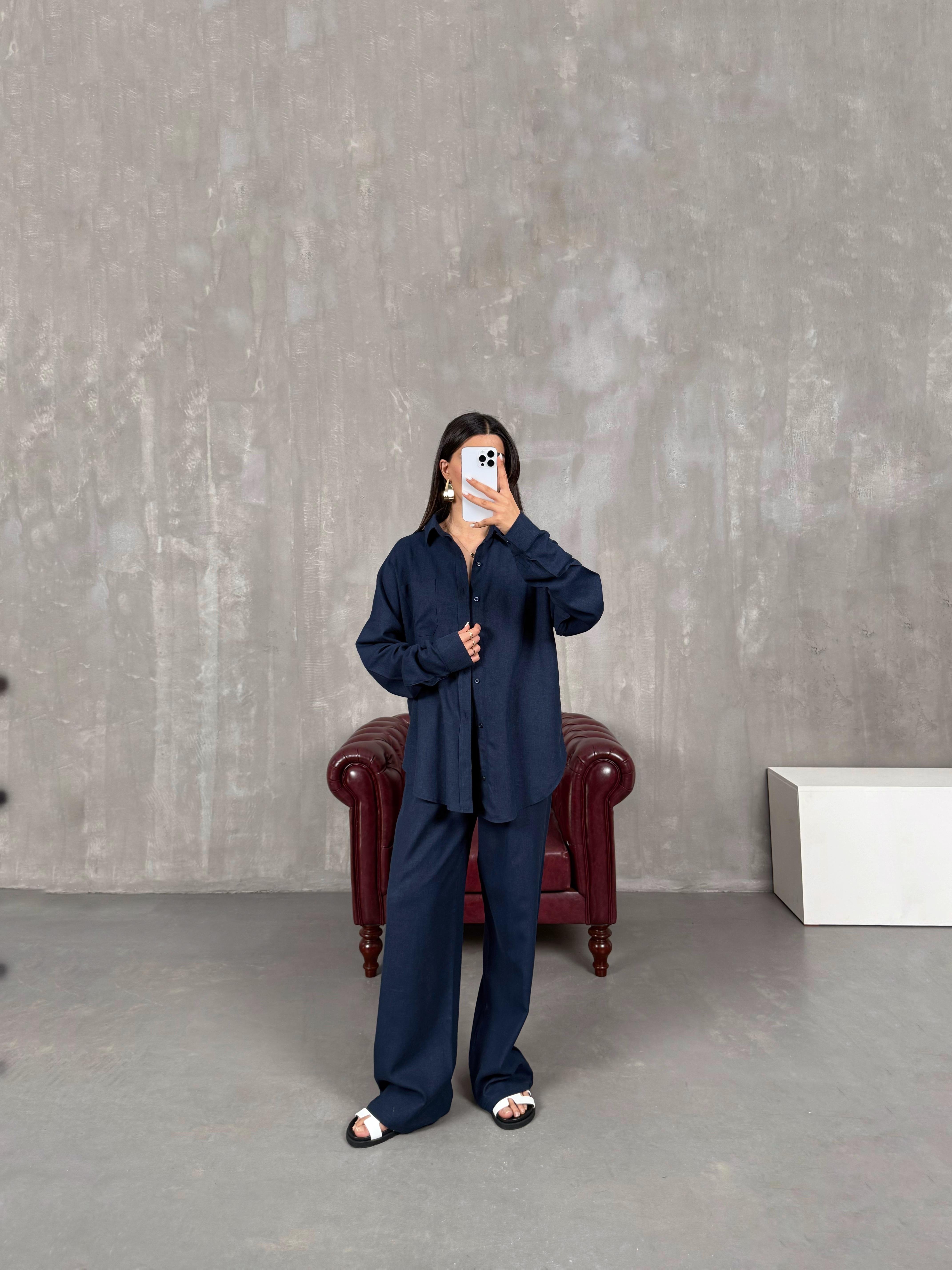 Lacivert Gömlek Pantolon Keten Muadil Takım Gaus00080