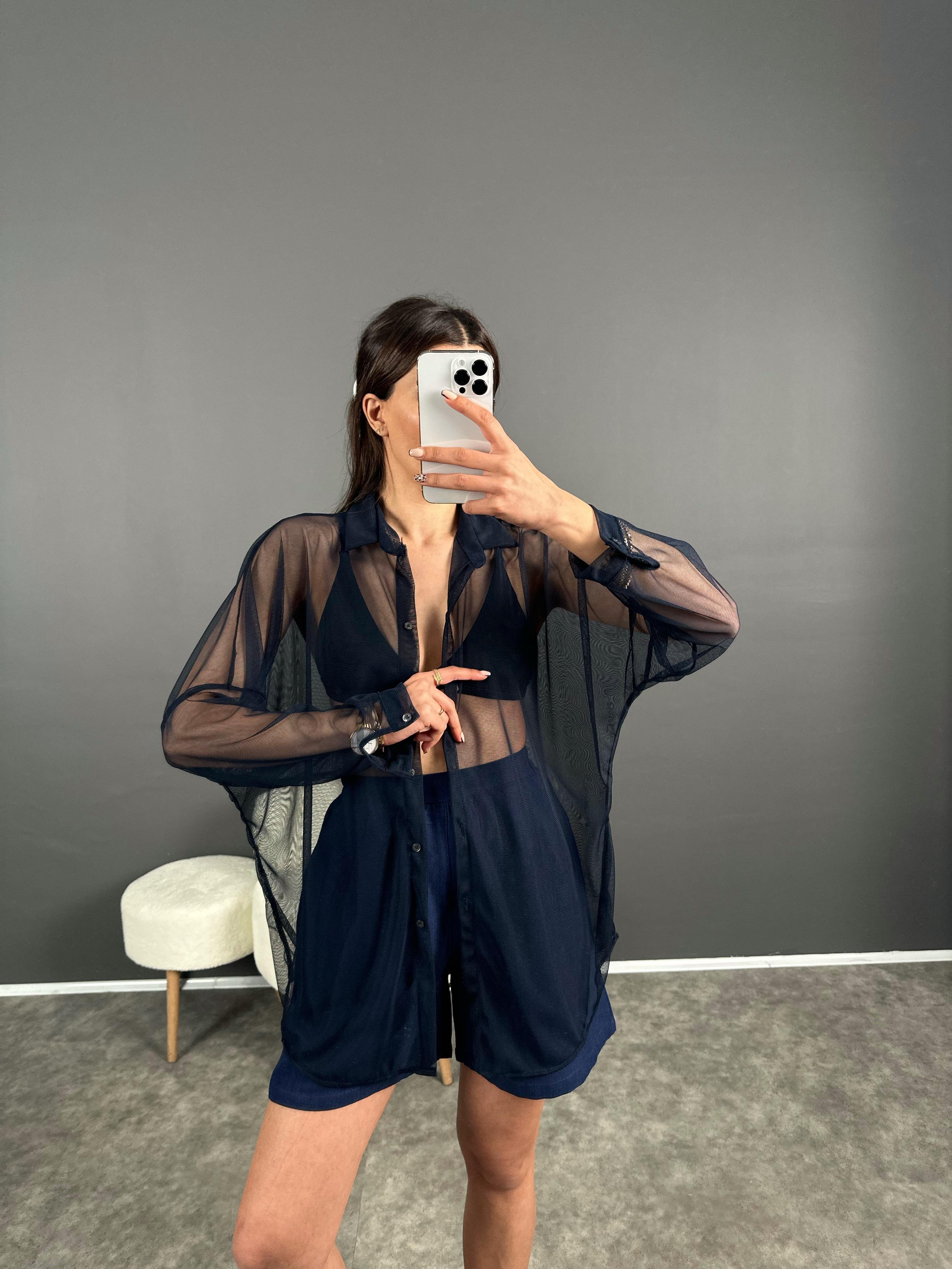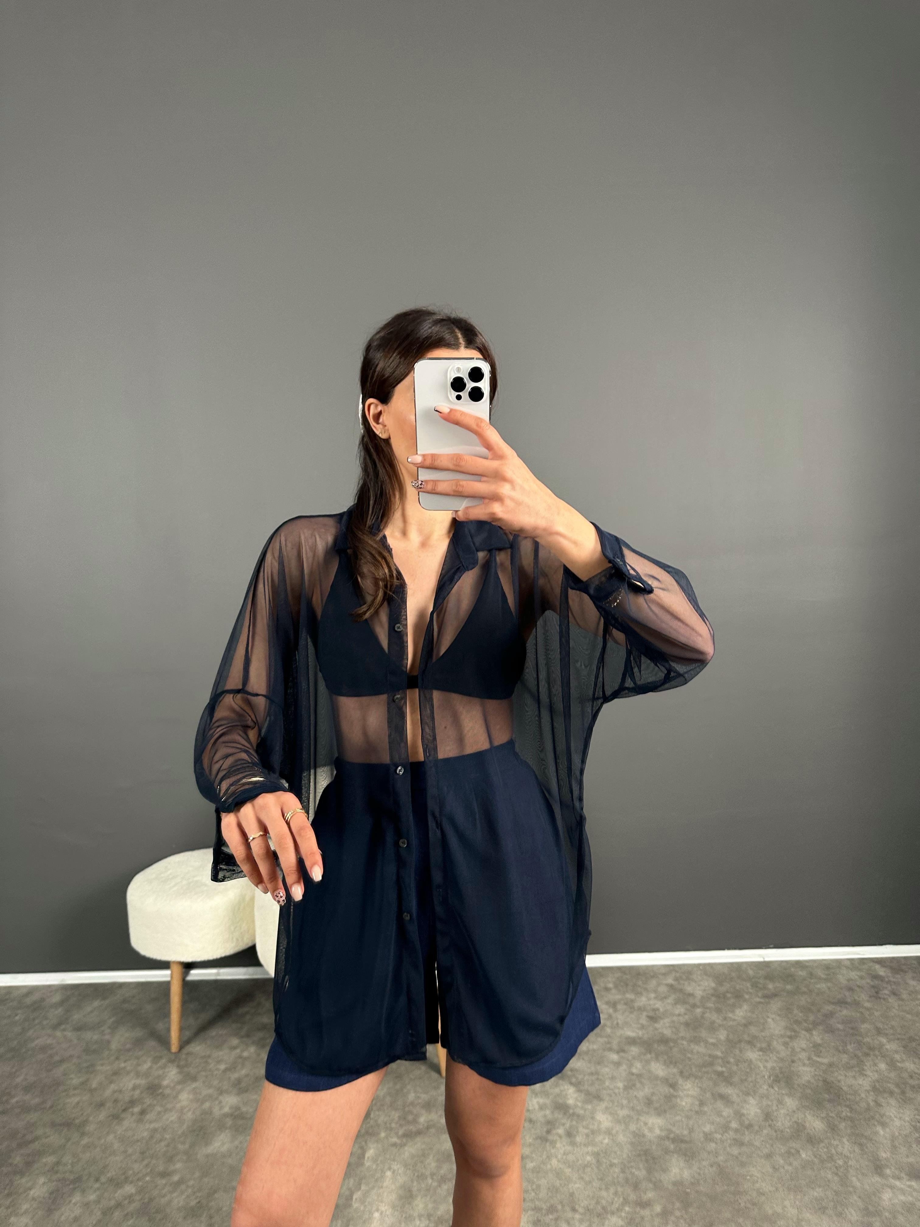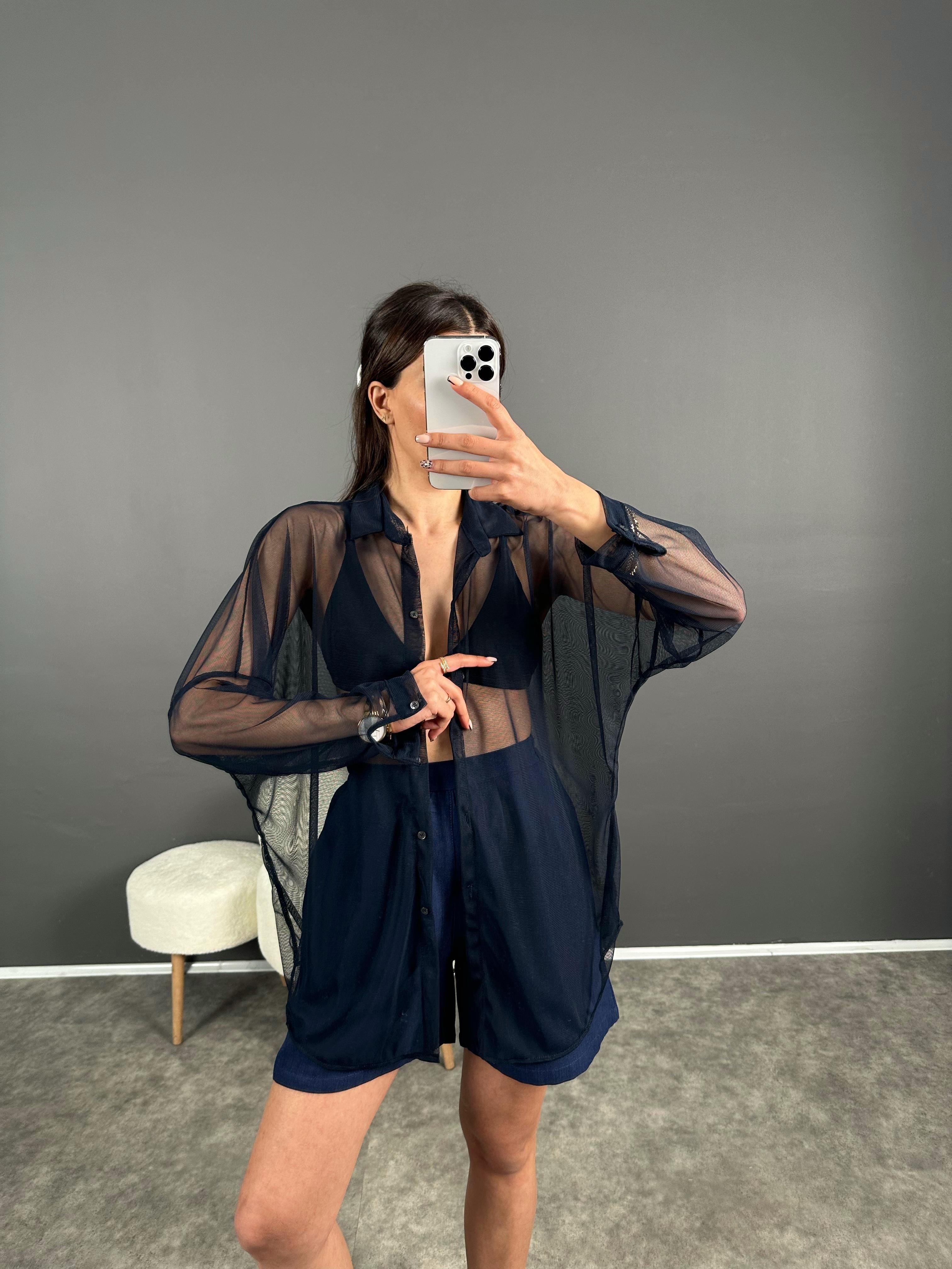 Lacivert Transparan Gömlek