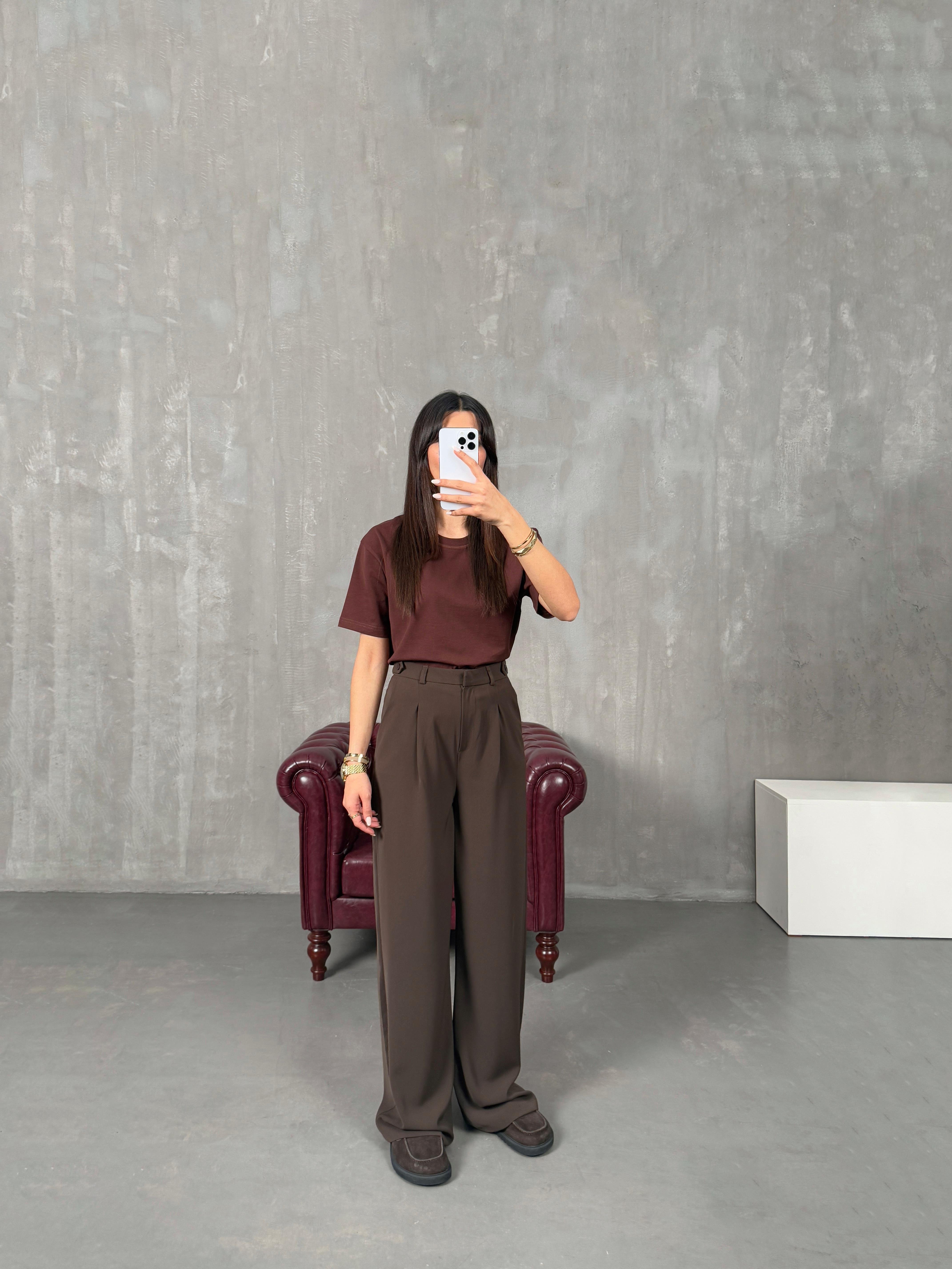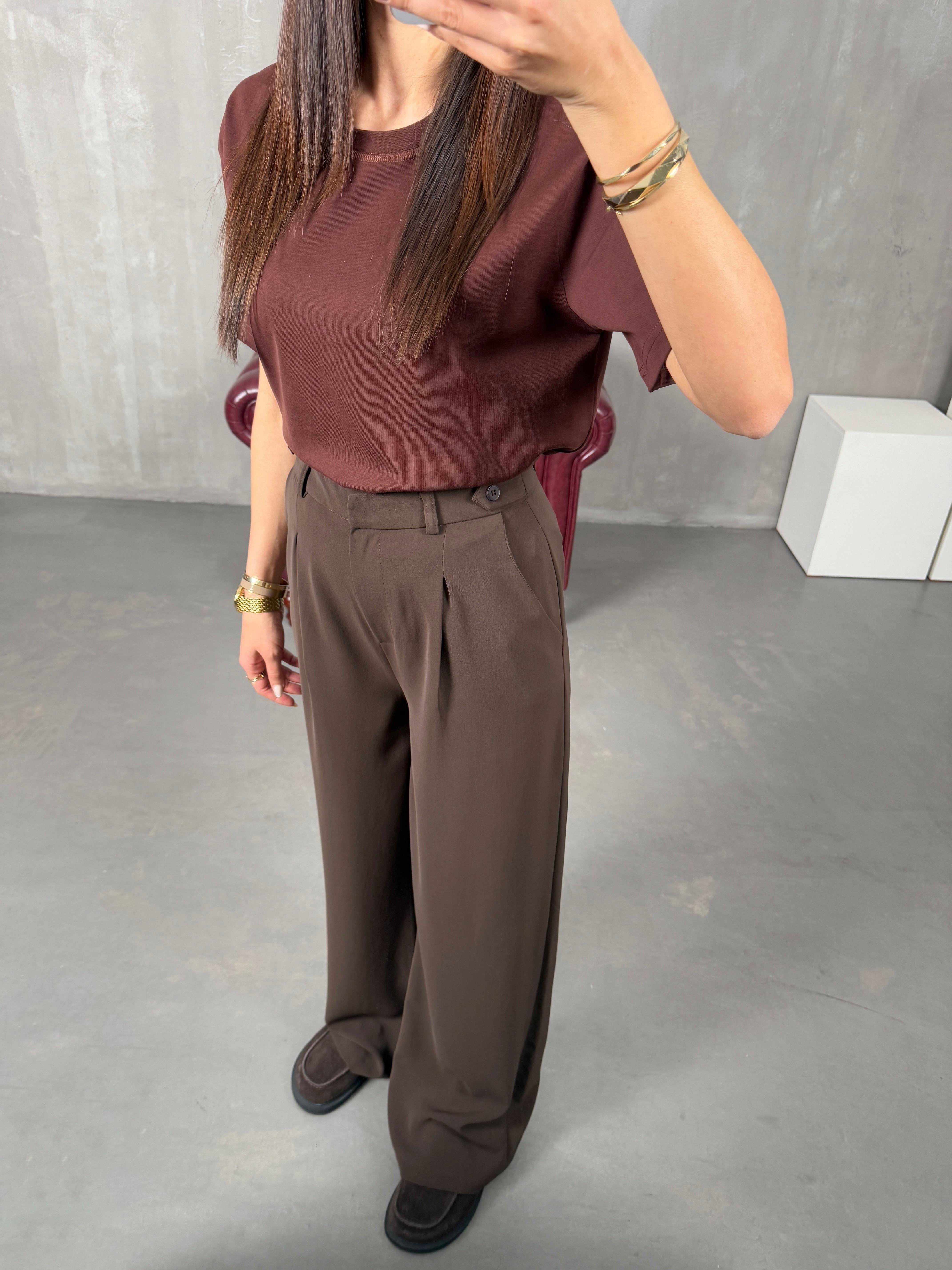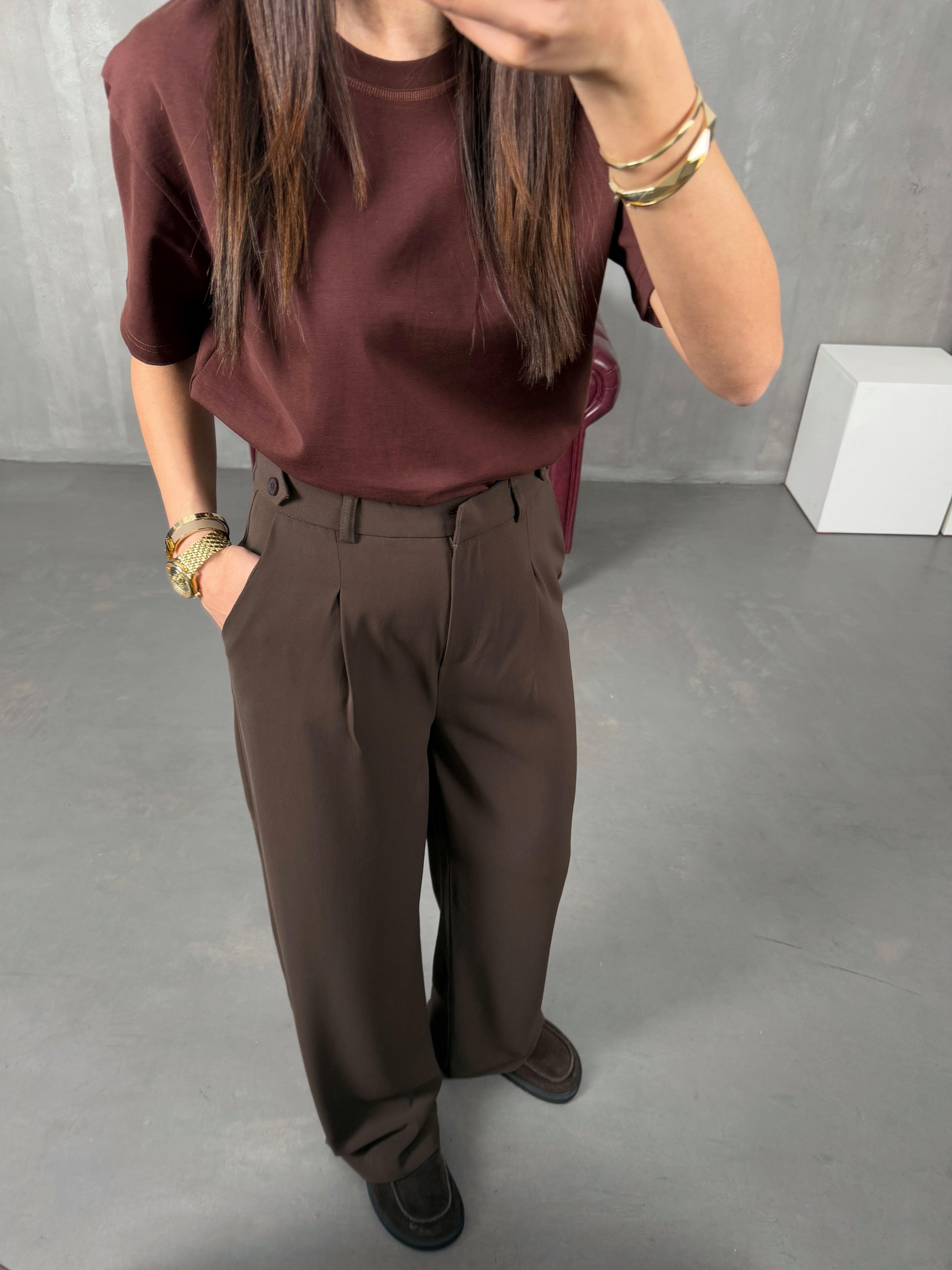 Layra Kahve Yandan Düğme Detaylı Kumaş Pantolon