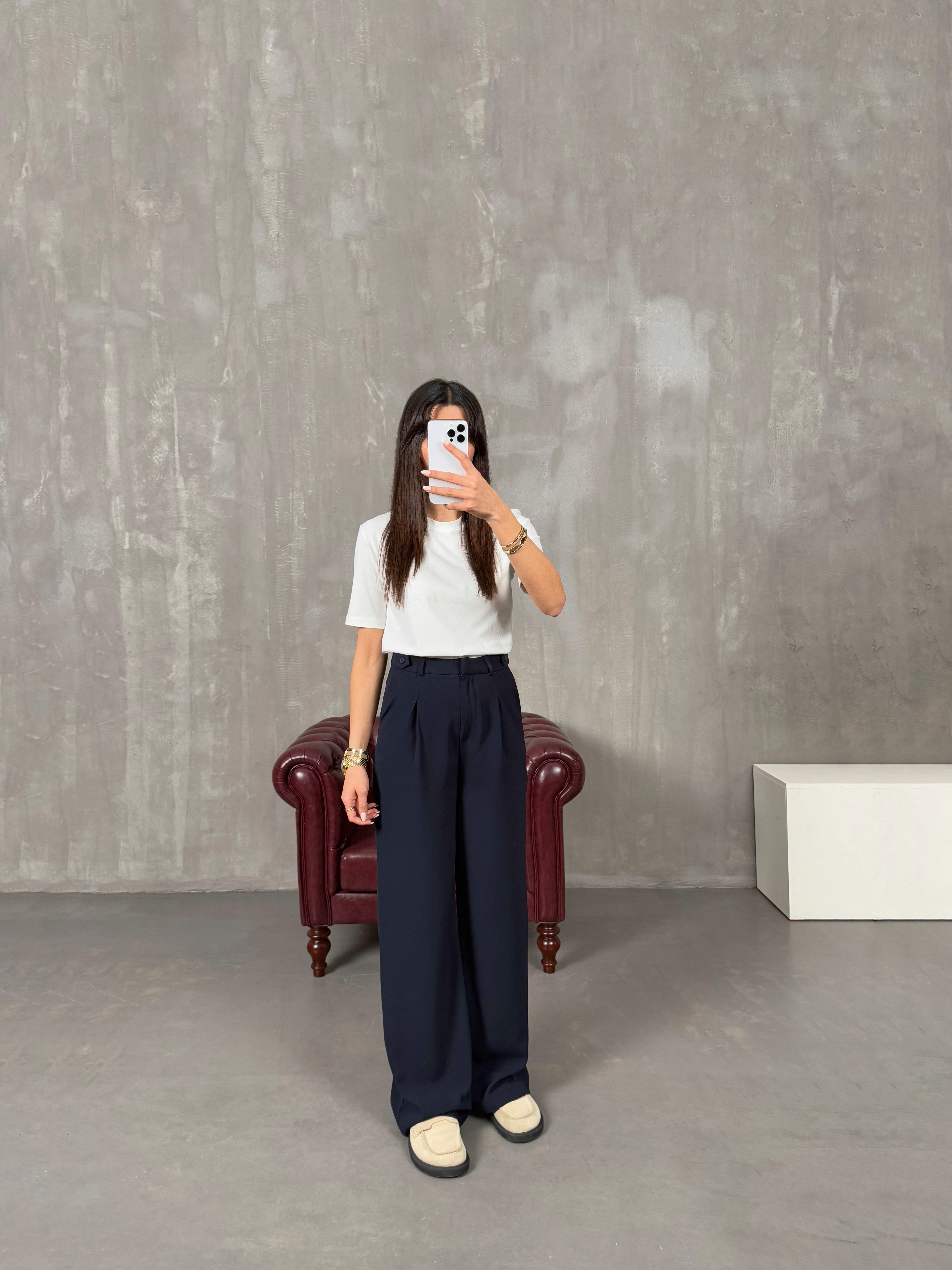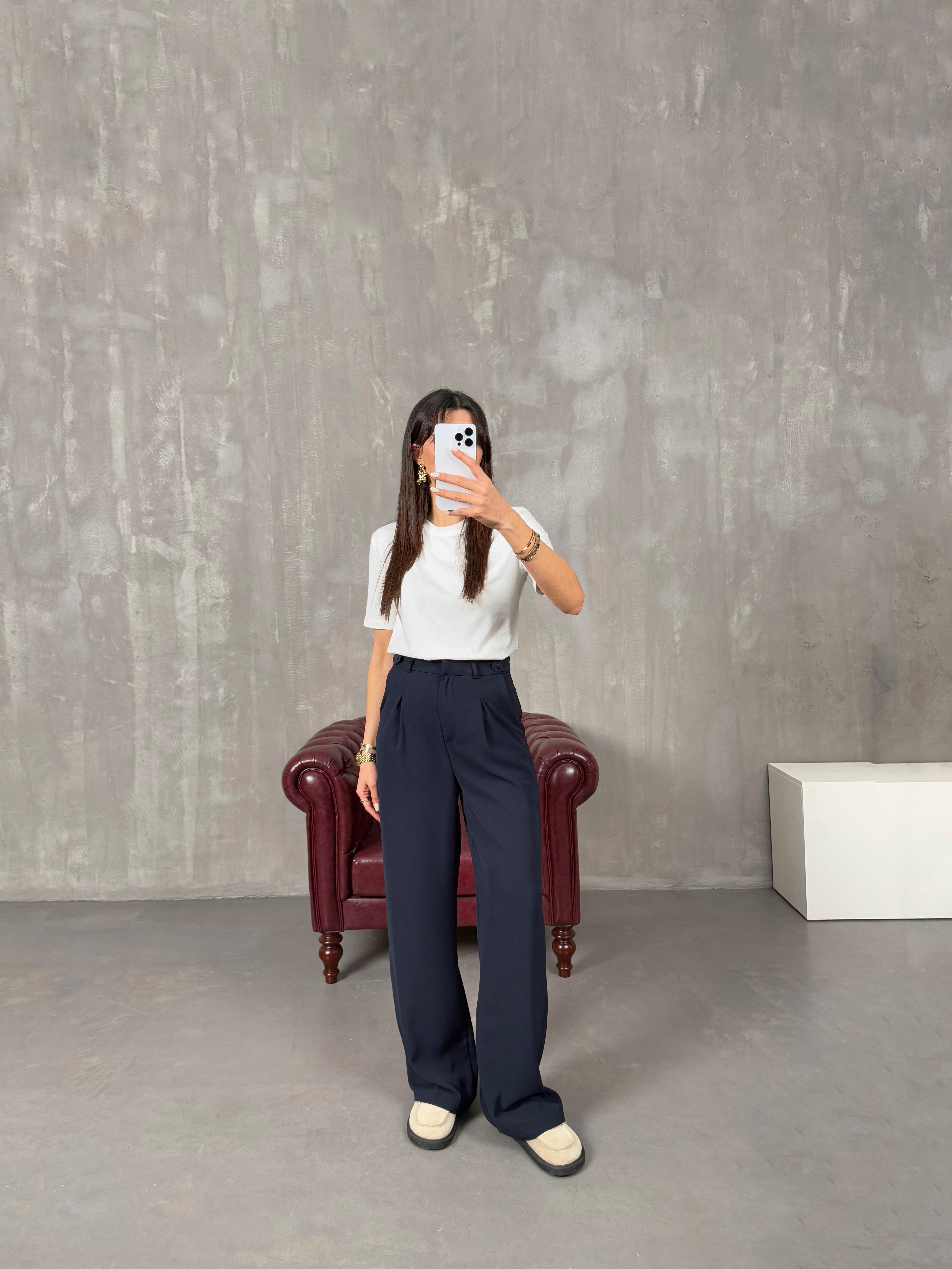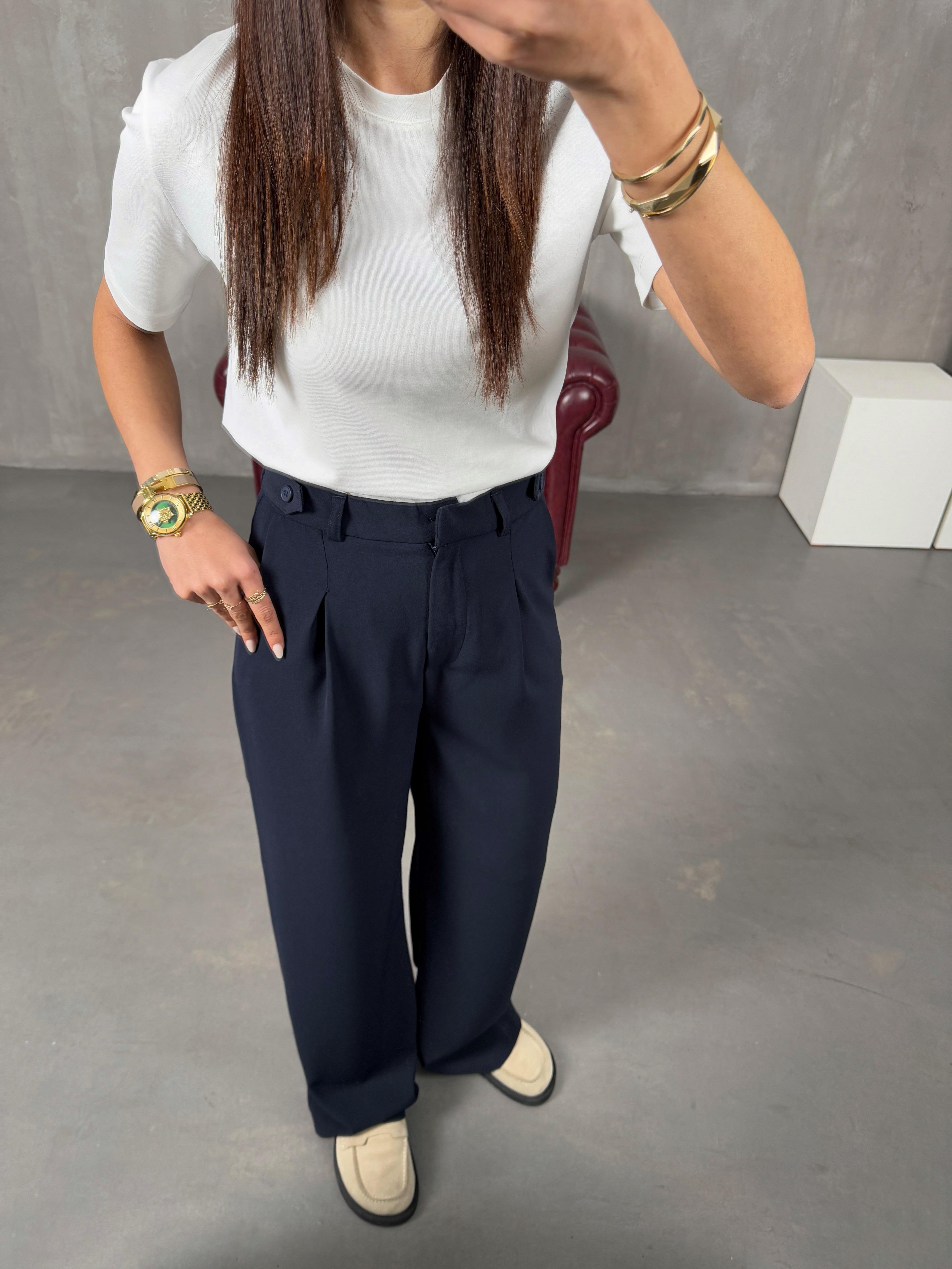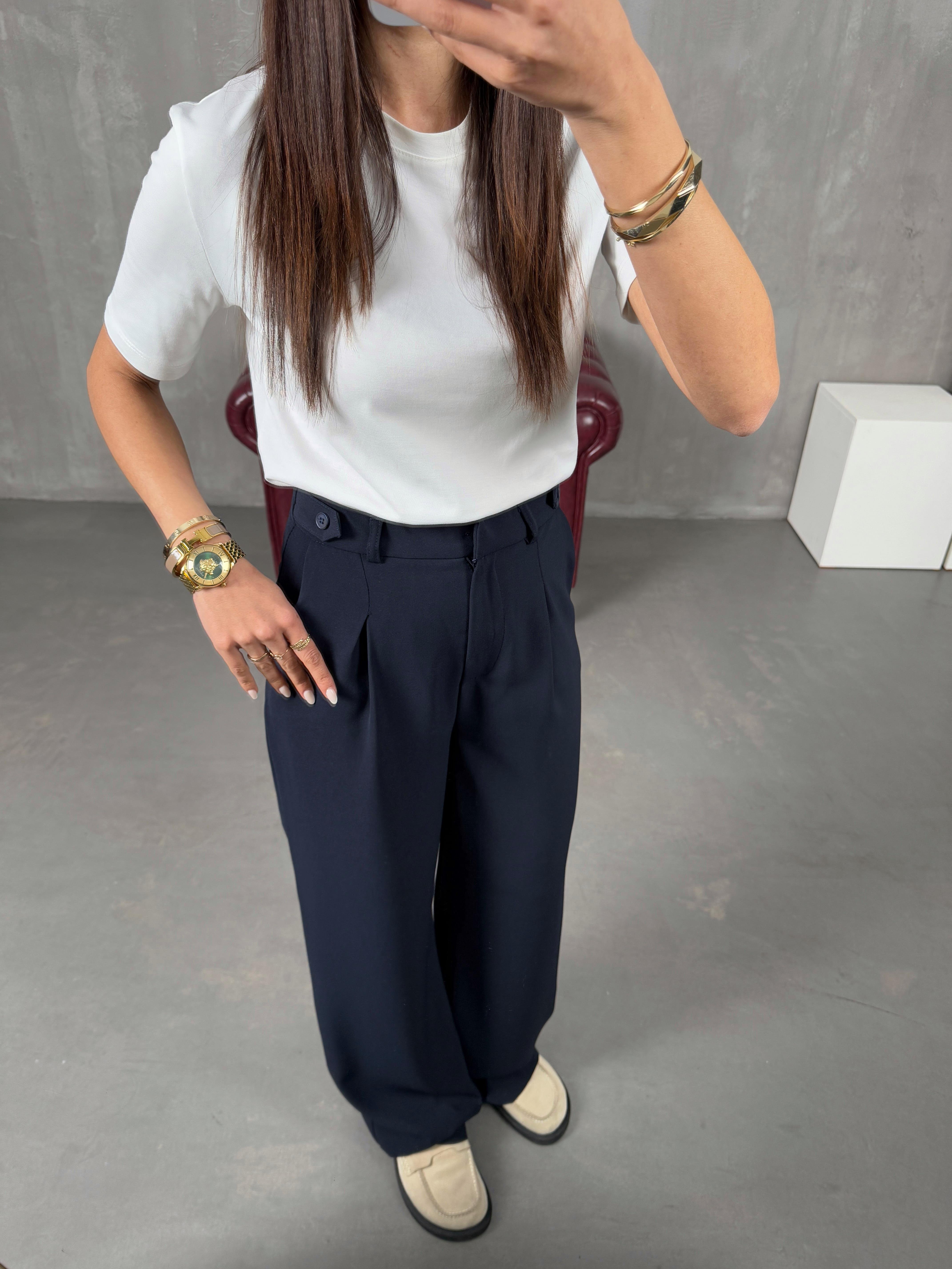 Layra Lacivert Yandan Düğme Detaylı Kumaş Pantolon