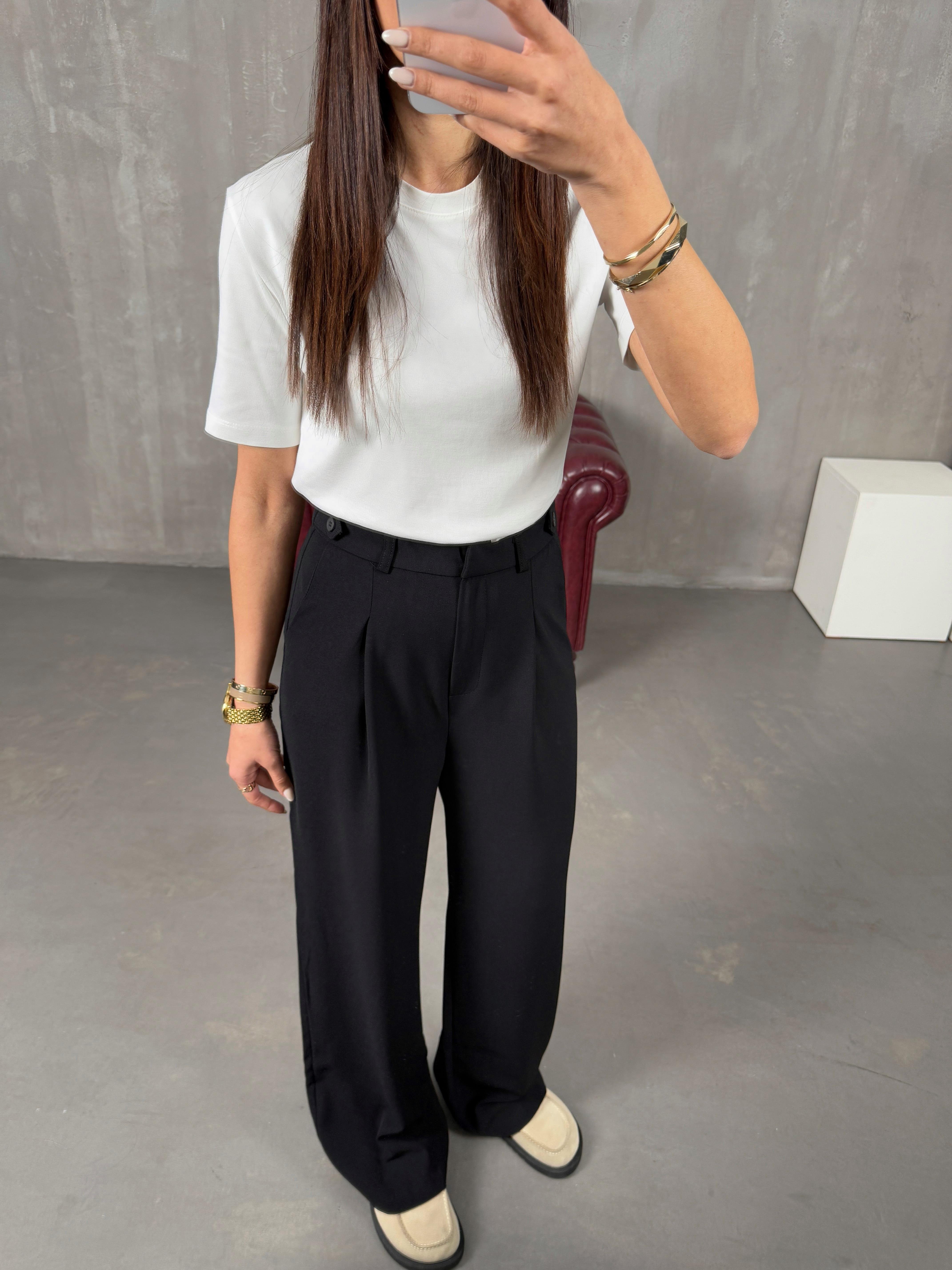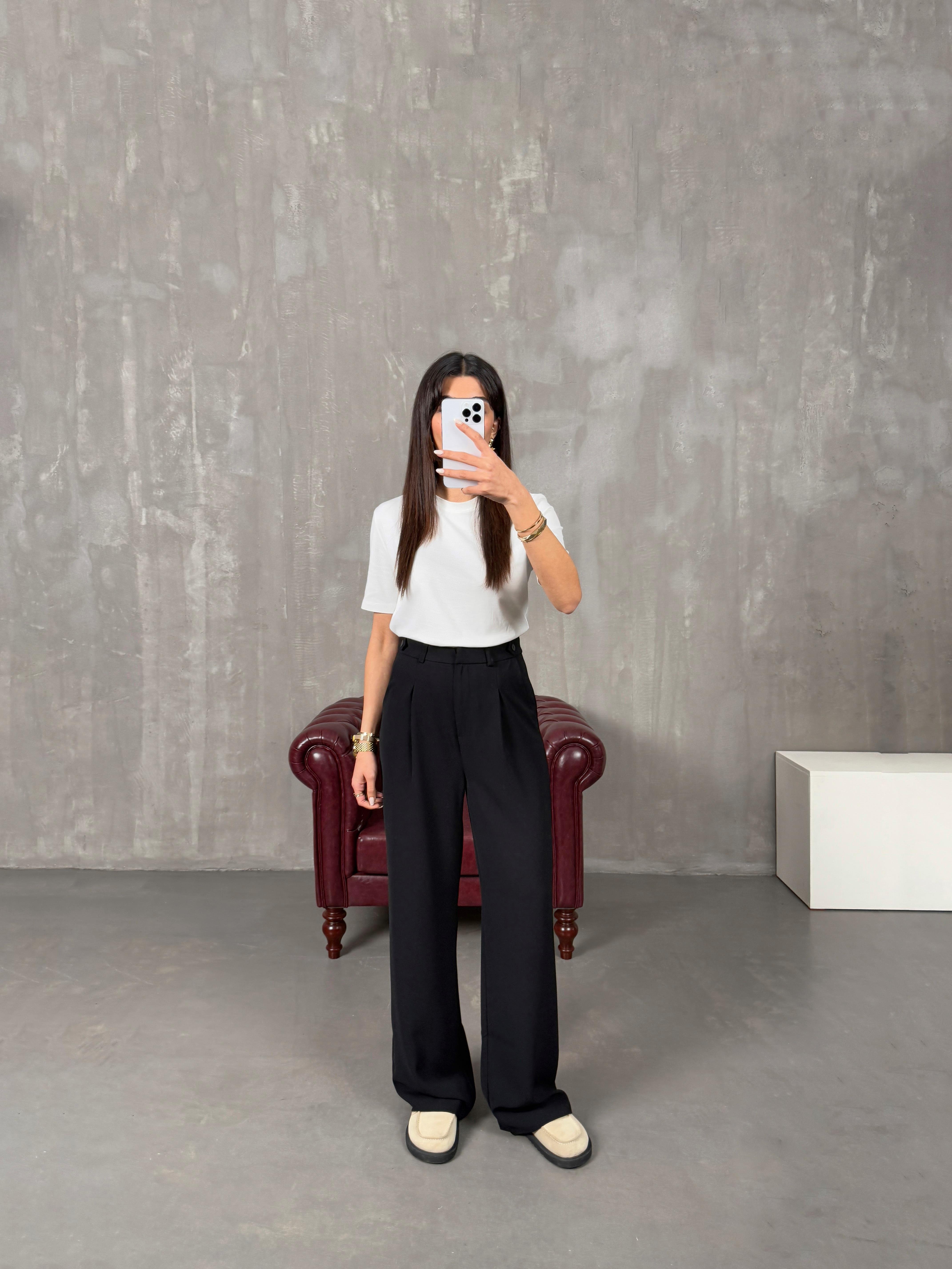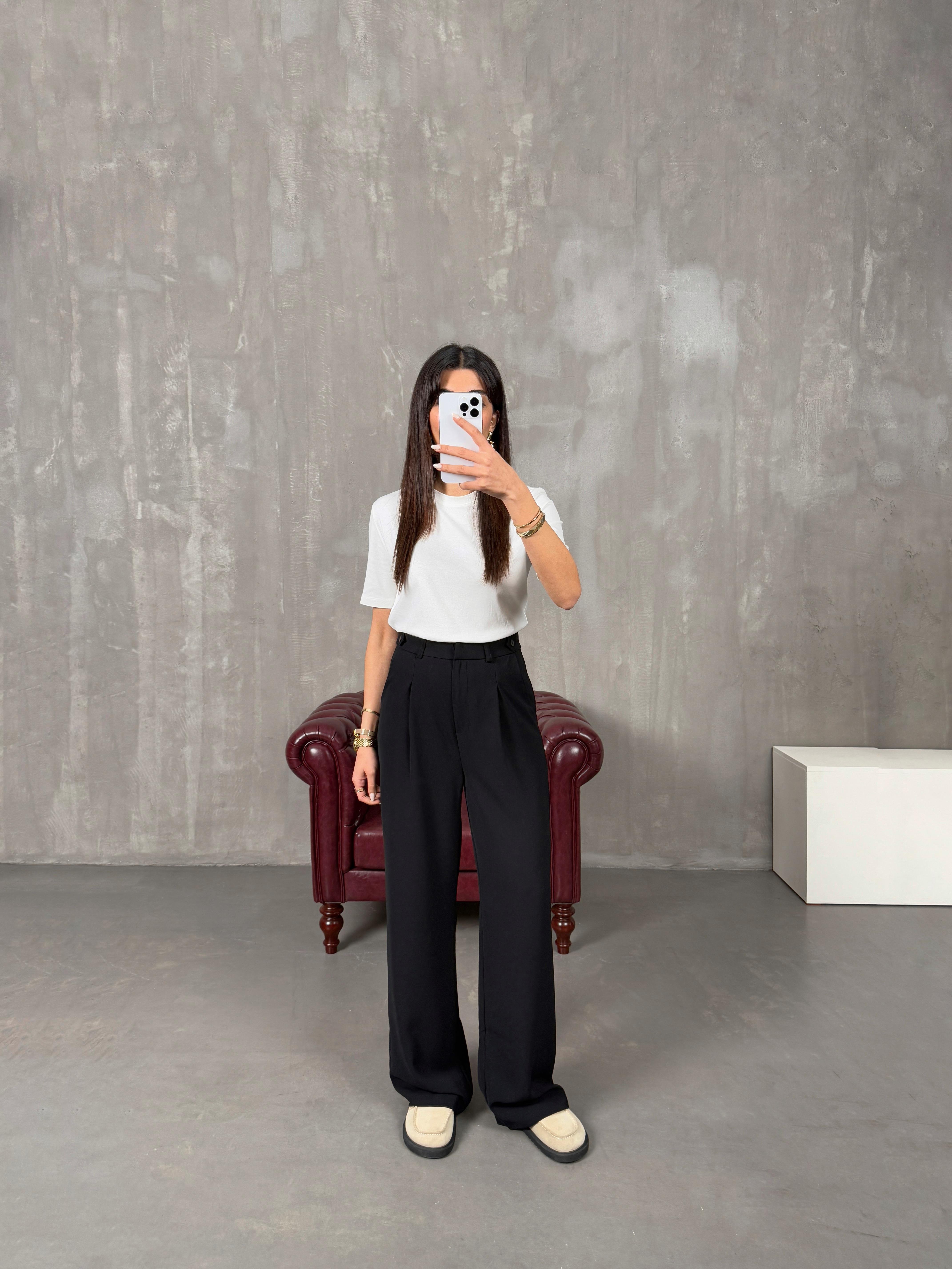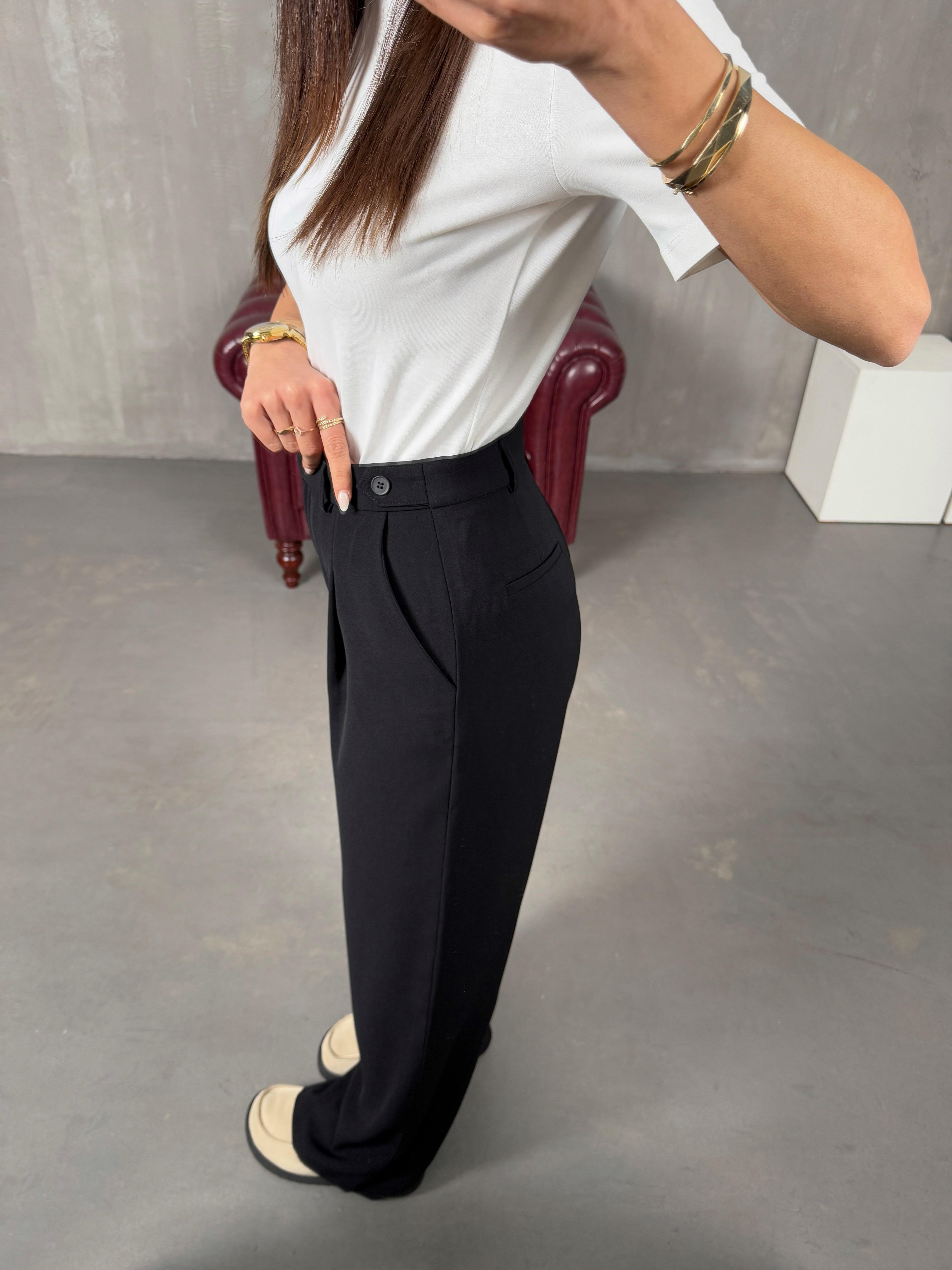Layra Siyah Yandan Düğme Detaylı Kumaş Pantolon