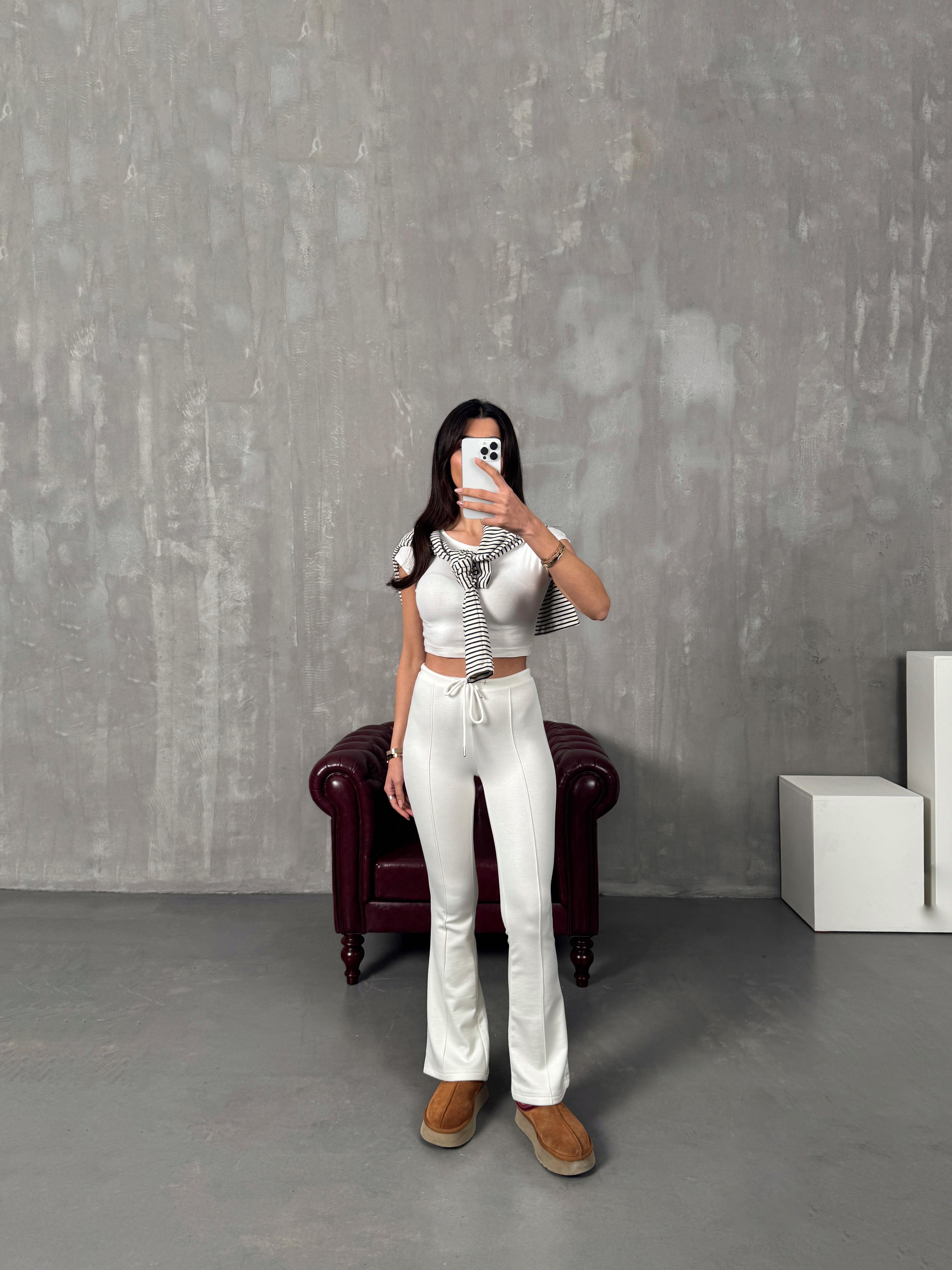 Lefko Krem ZR Model Çımalı İspanyol Paça Pantolon