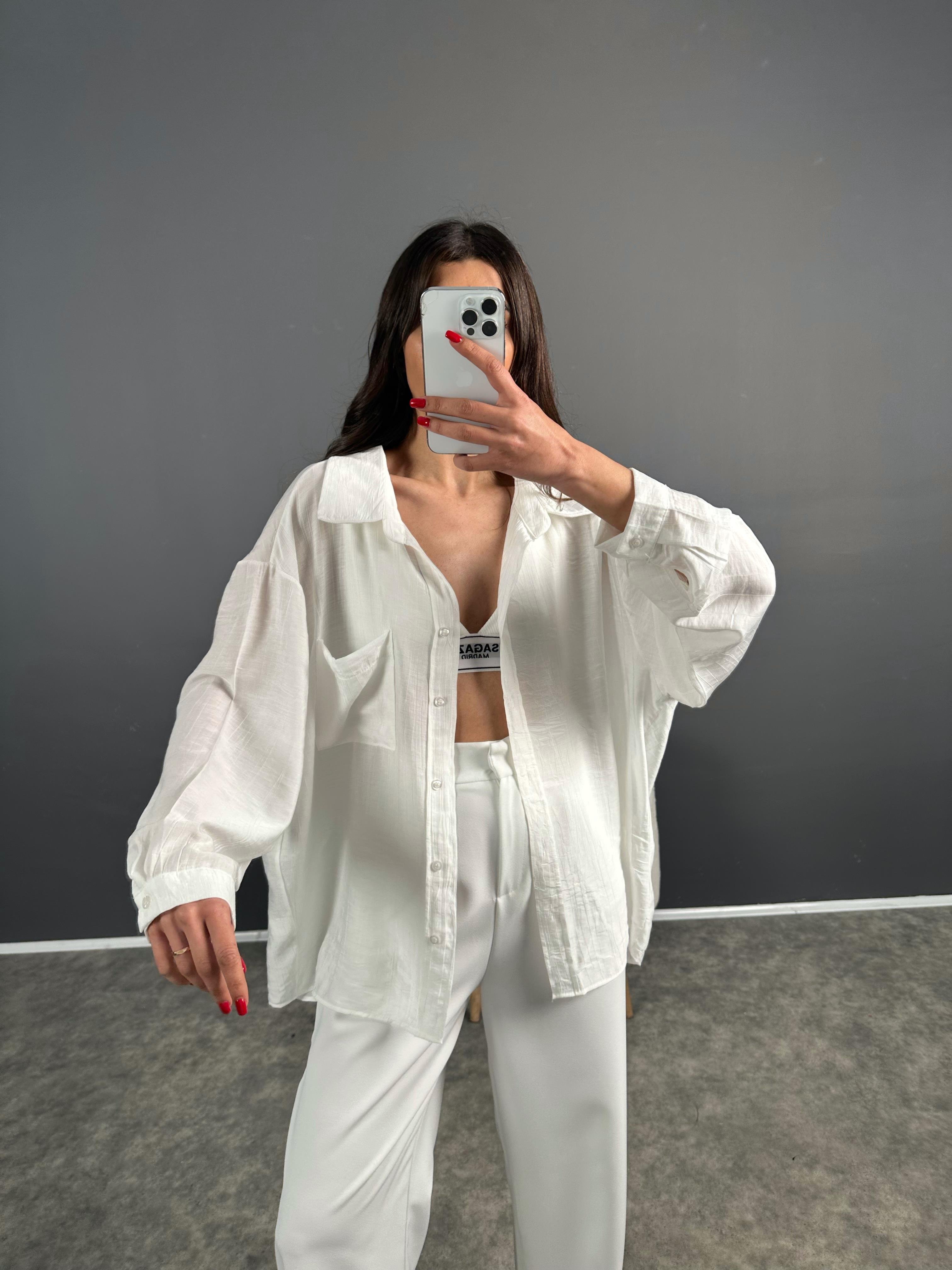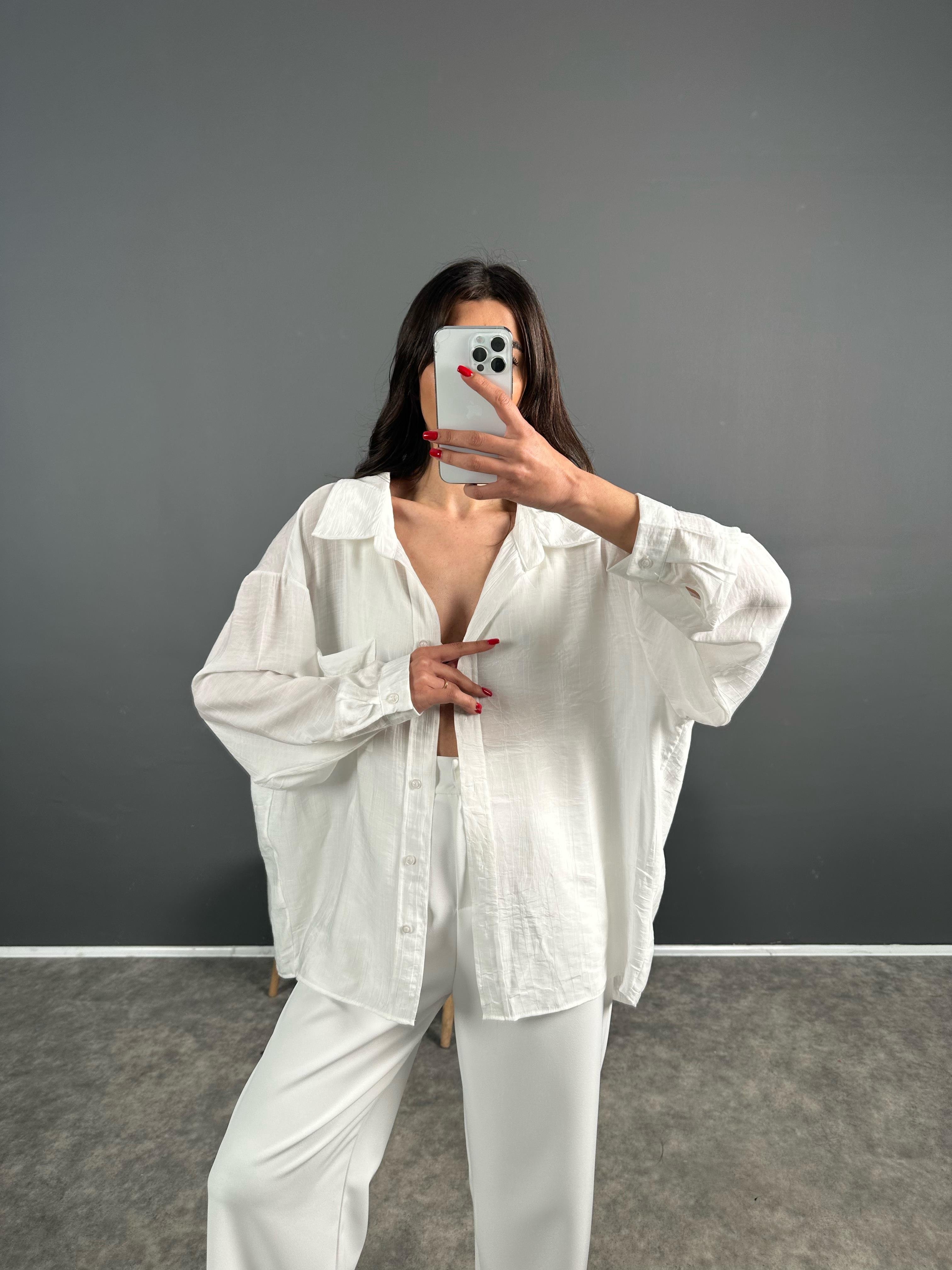 Li Beyaz Oversize Salaş Premium Gömlek