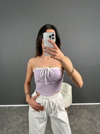 Lila Şeritli Fırfırlı Straplez