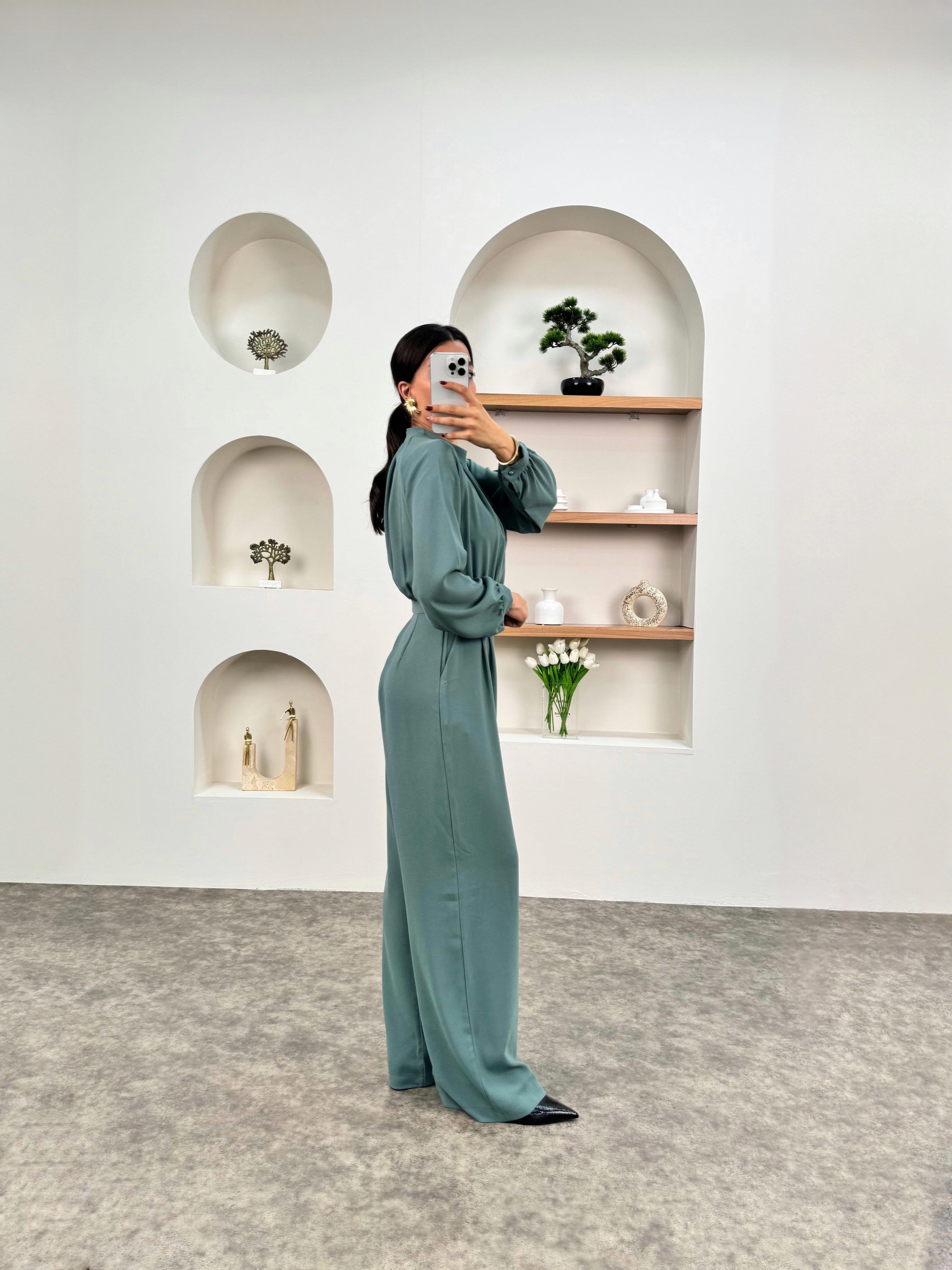 Lola Mint Krep Kumaş Yarım Balıkçı Yaka Tulum