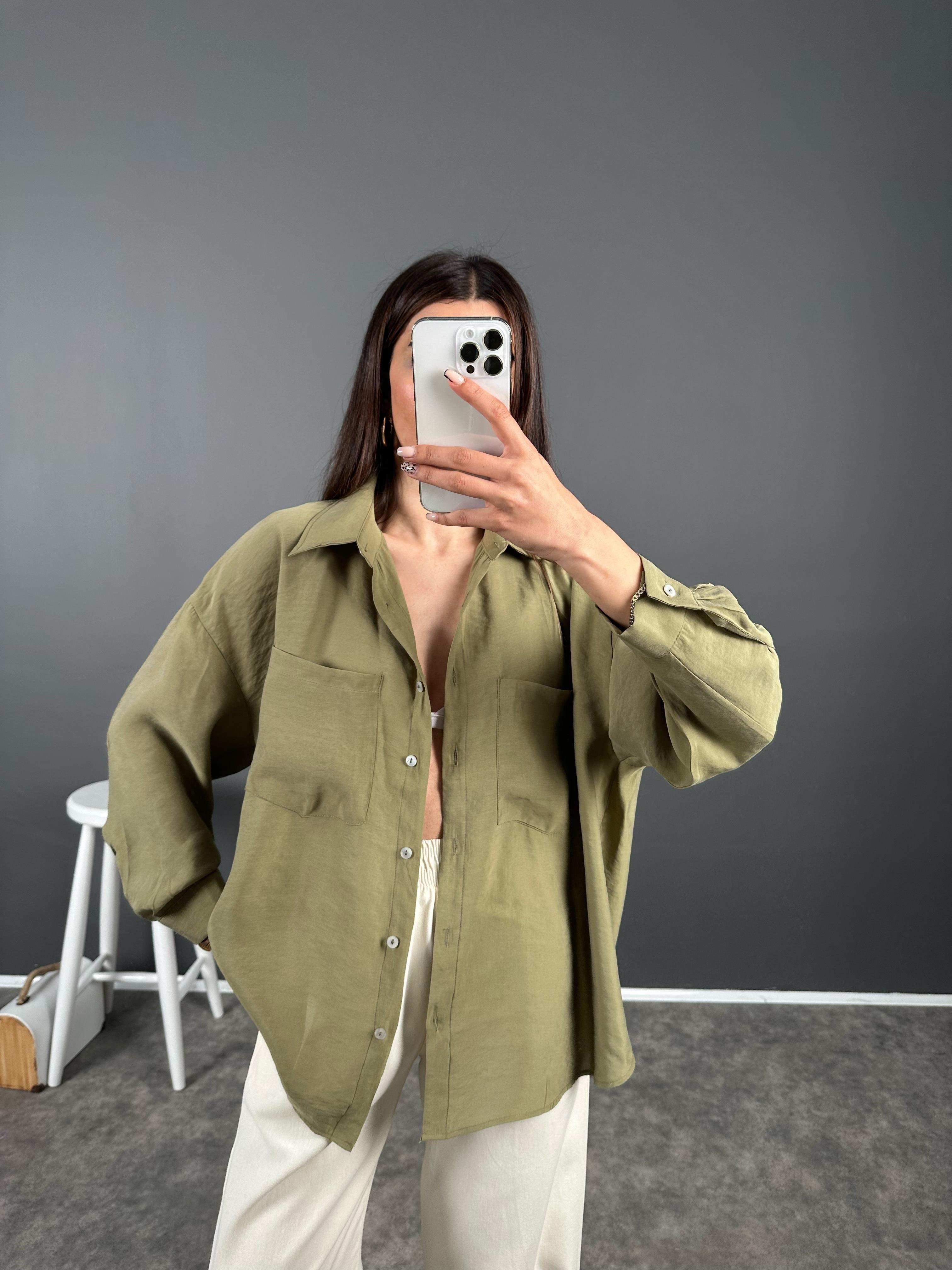 Lupus Haki Çift Cepli Oversize Premium Gömlek