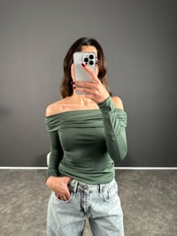 ماإيه بلوزة أخضر كاكي بياقة قارب