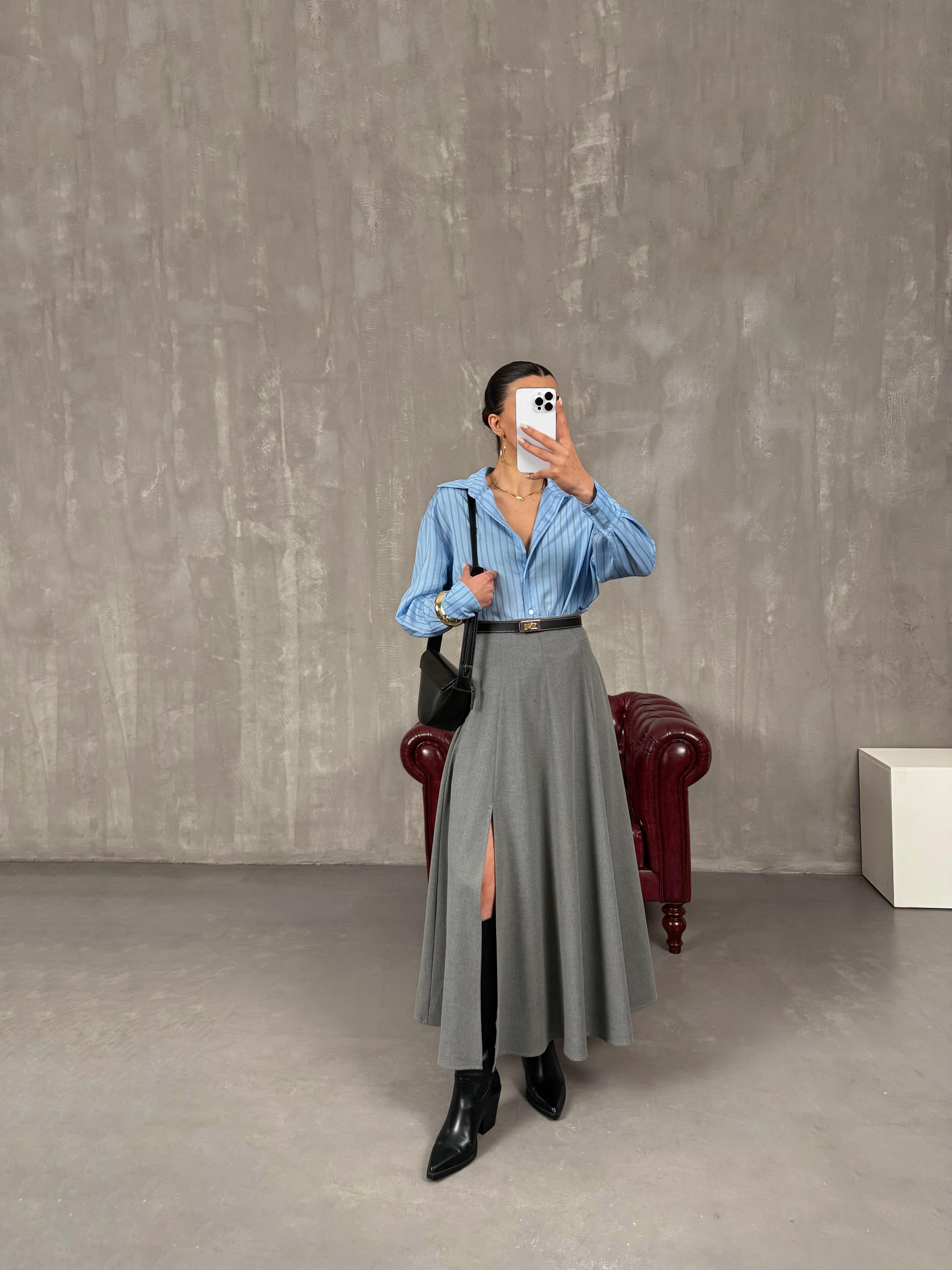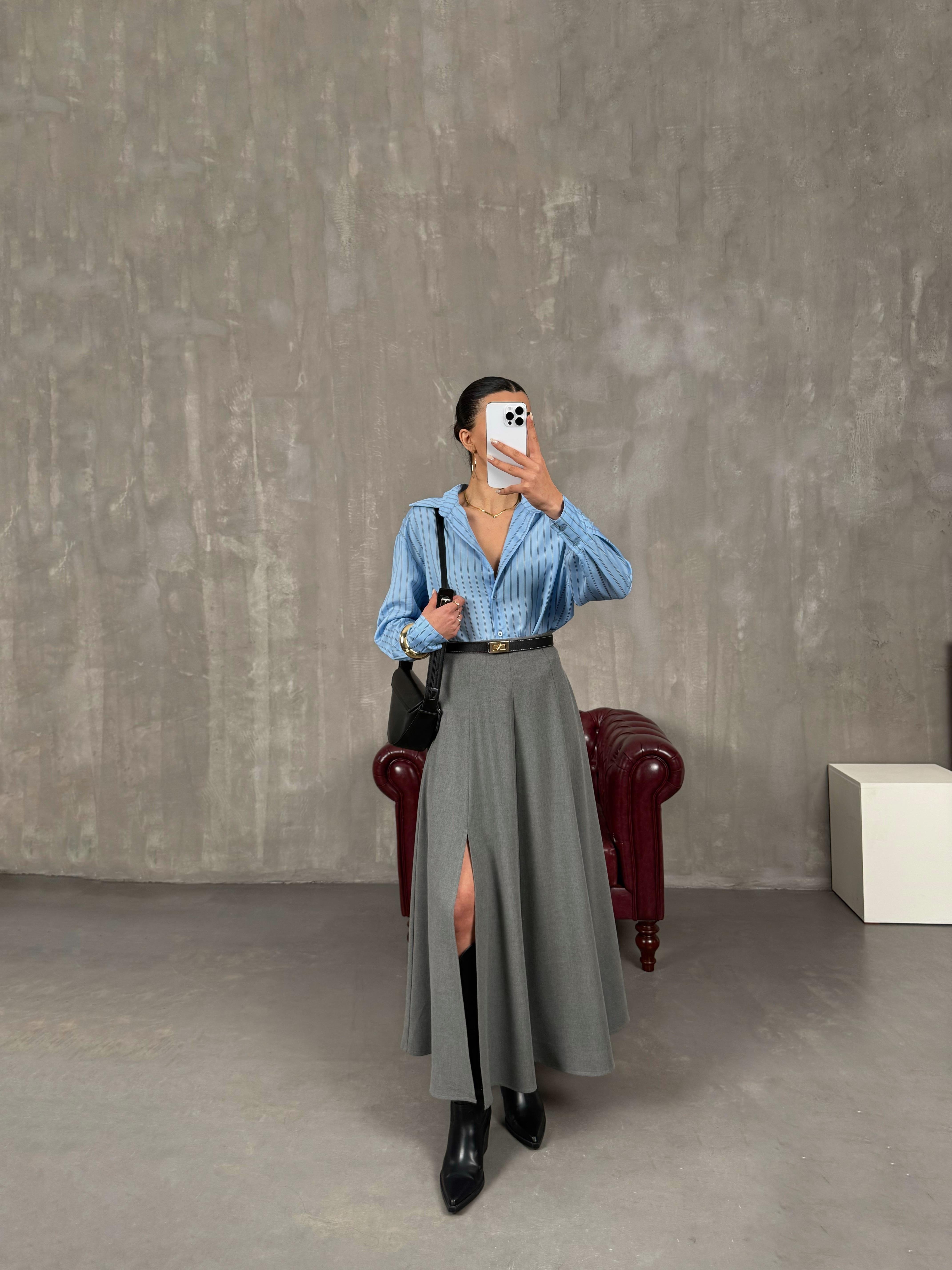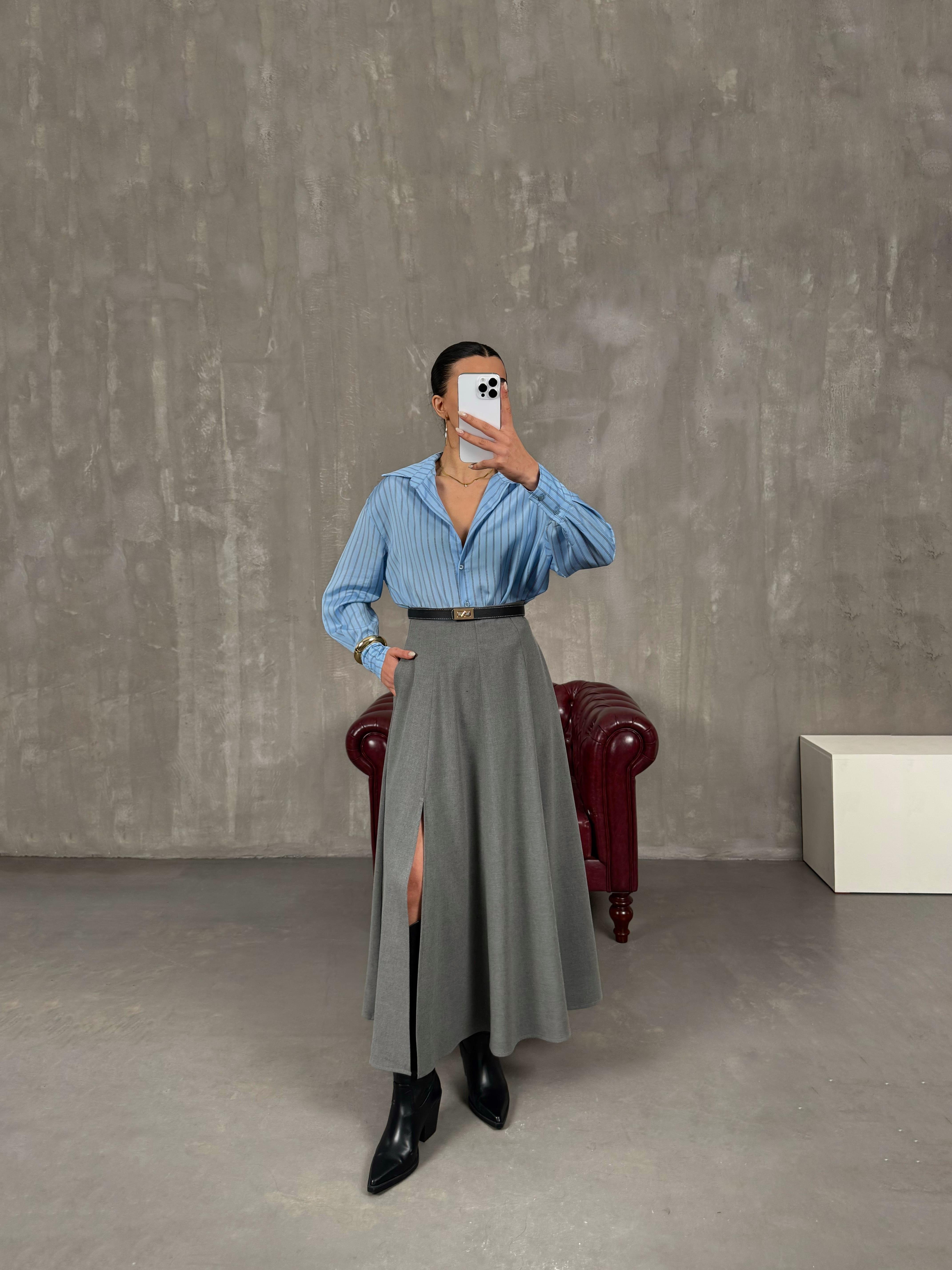 مافي تنورة سوداء بشق مع جيب مافي تنورة بني داكن بشق مع جيب