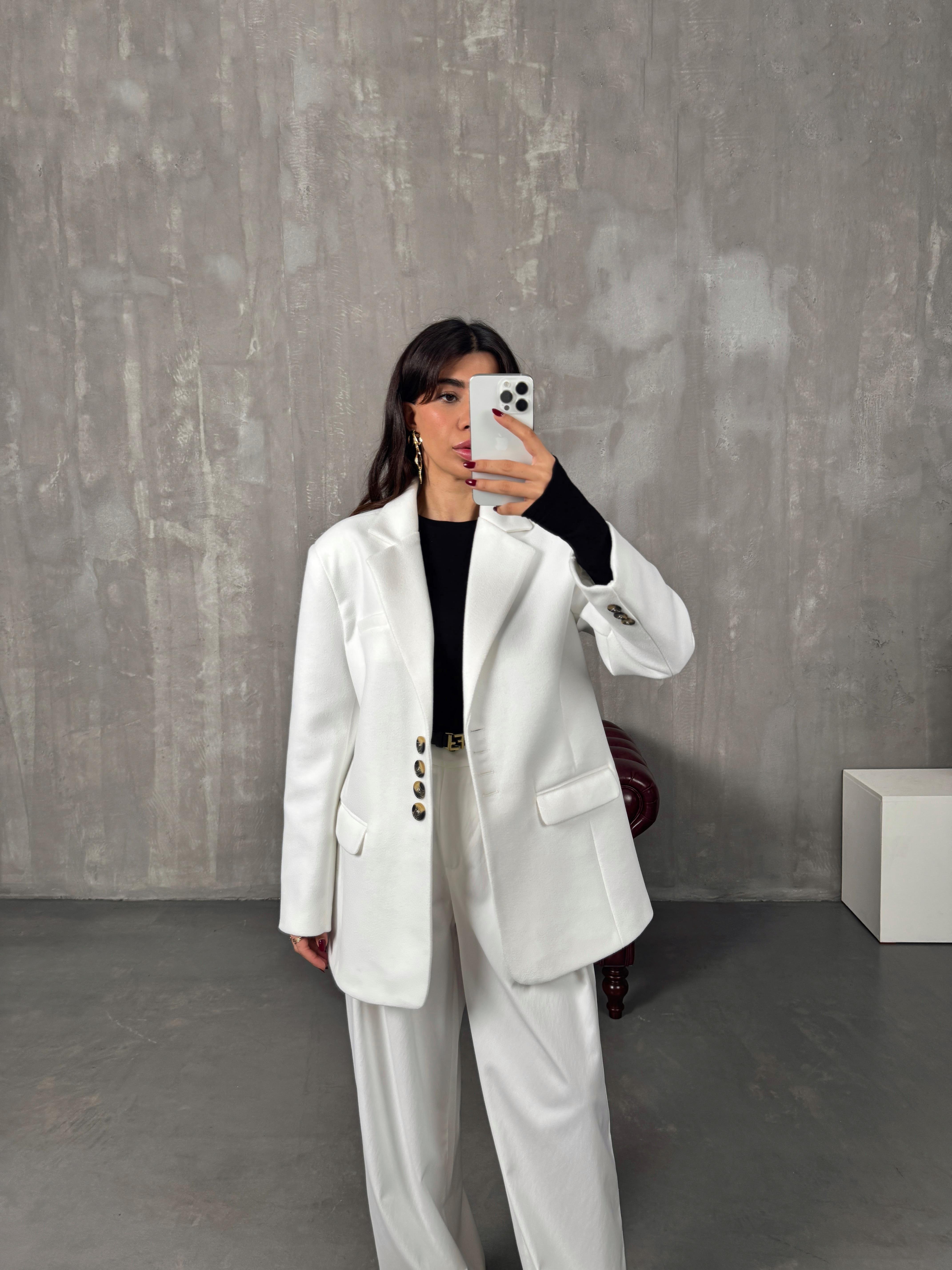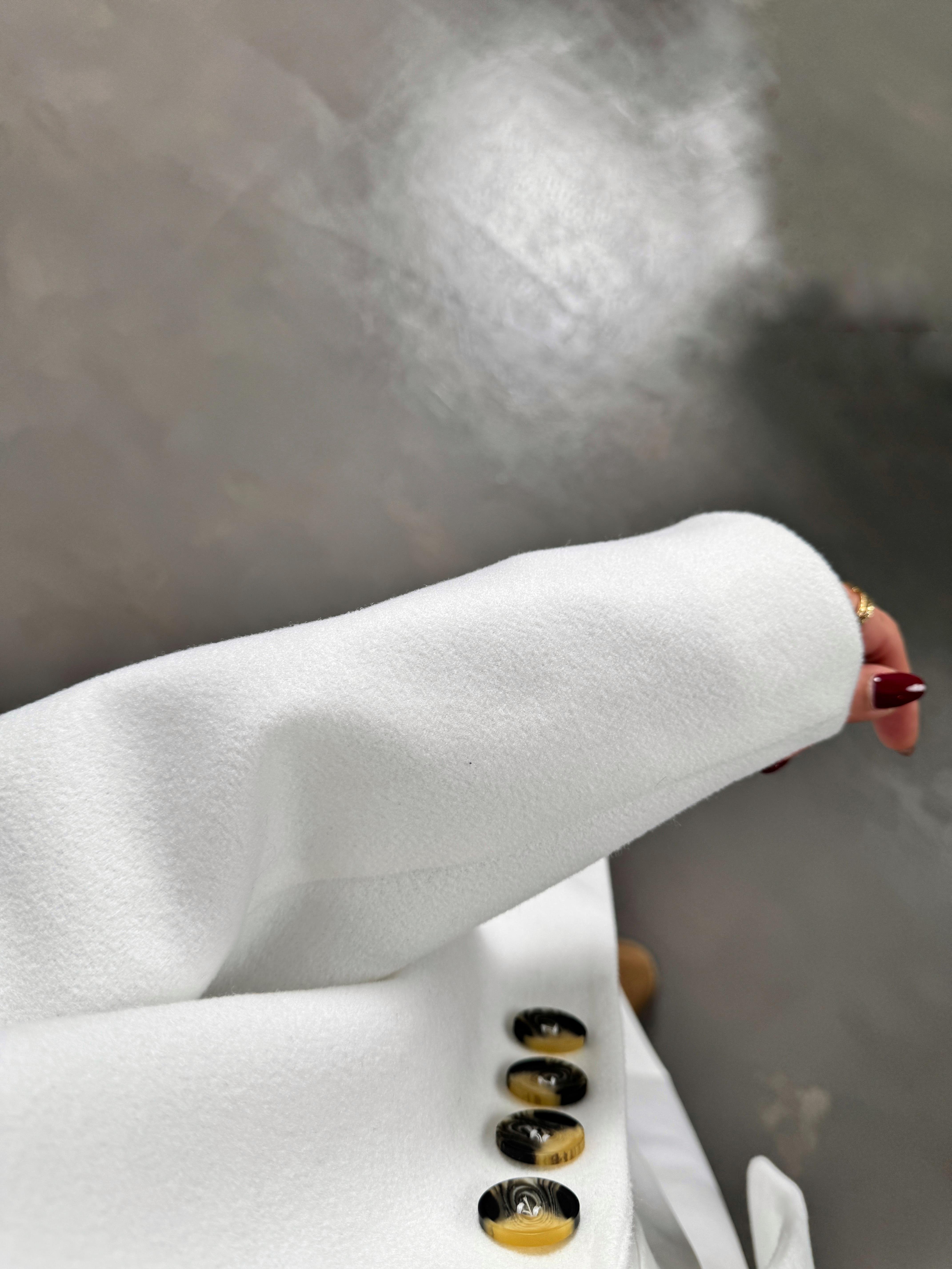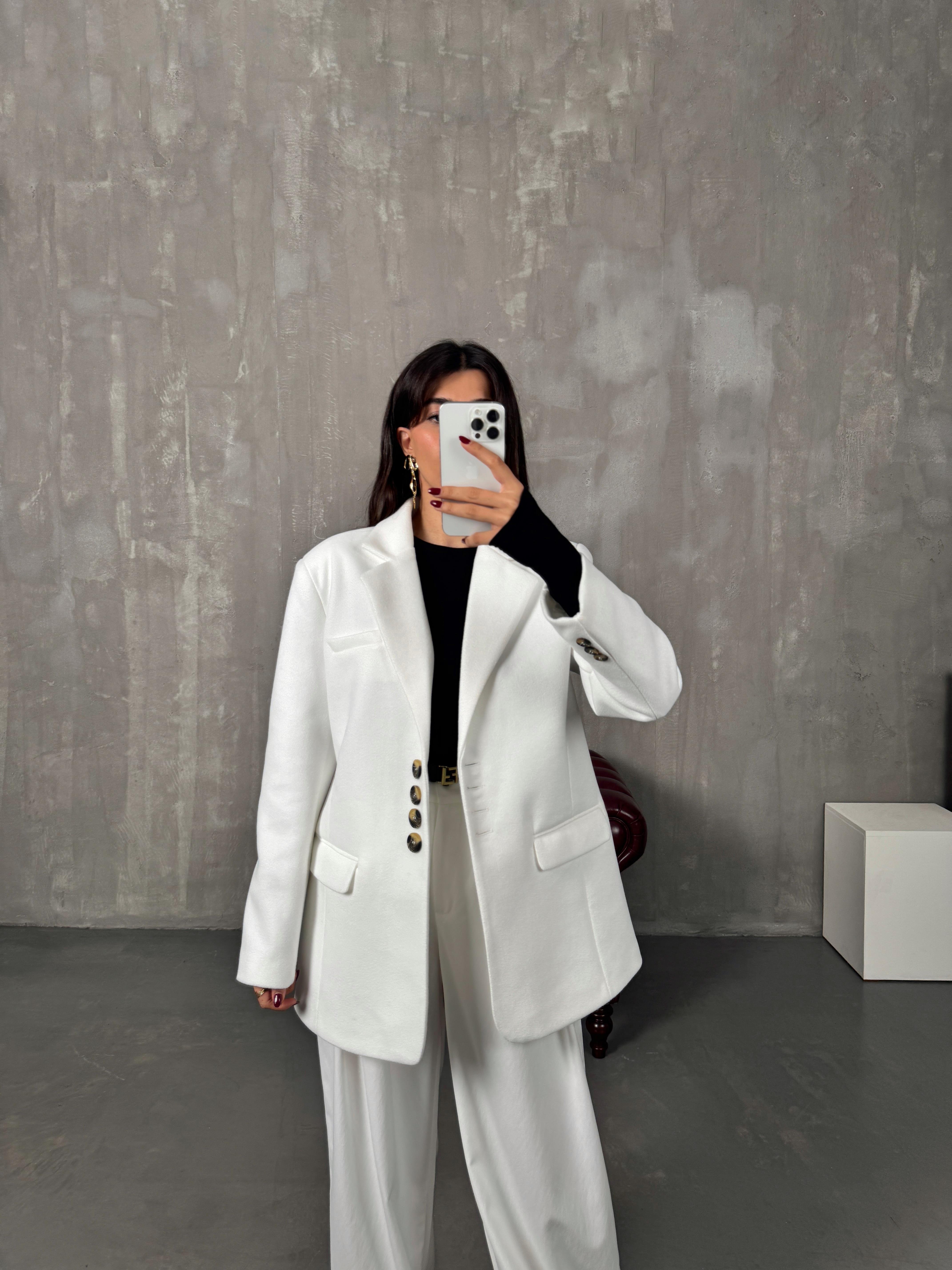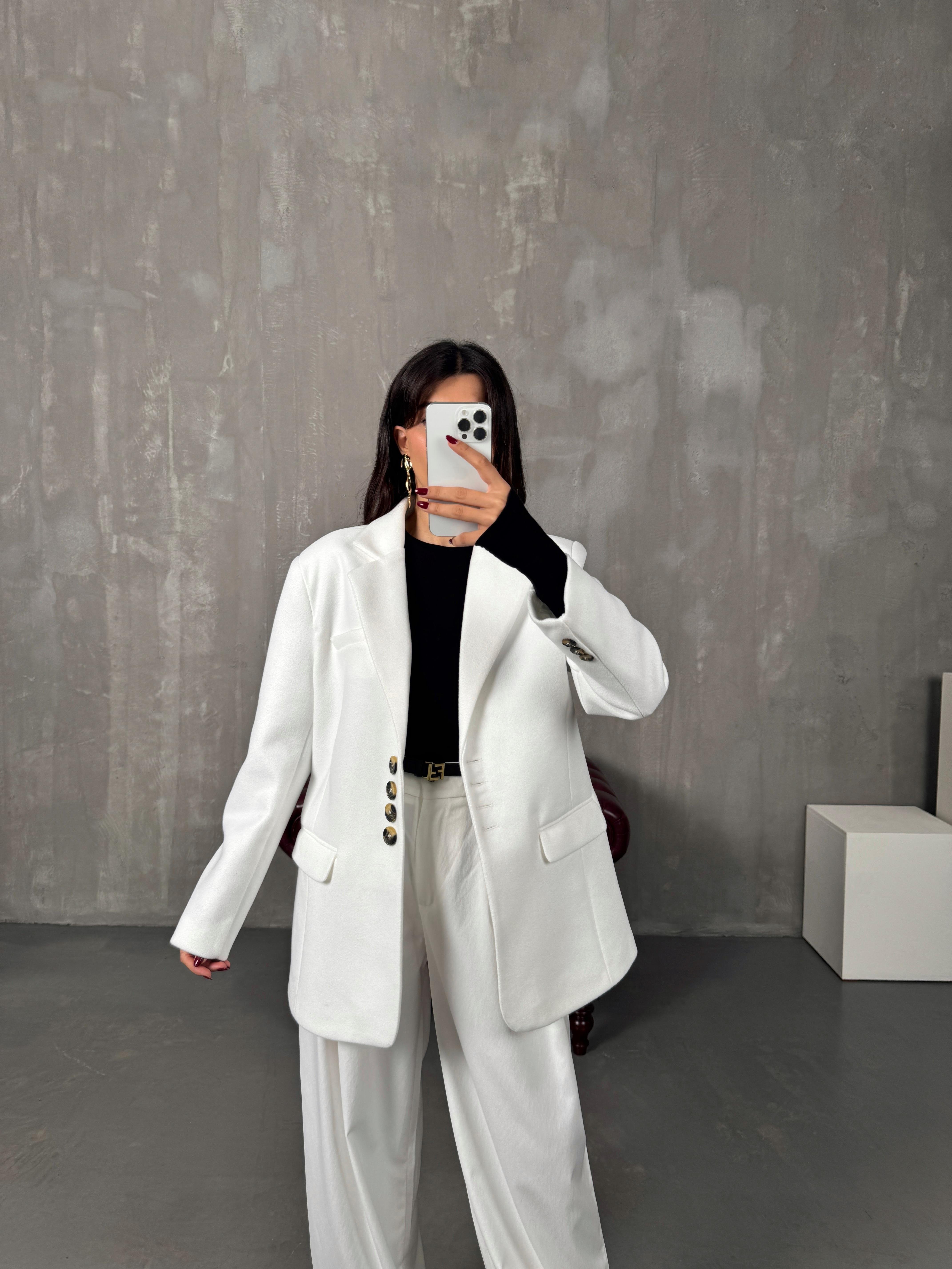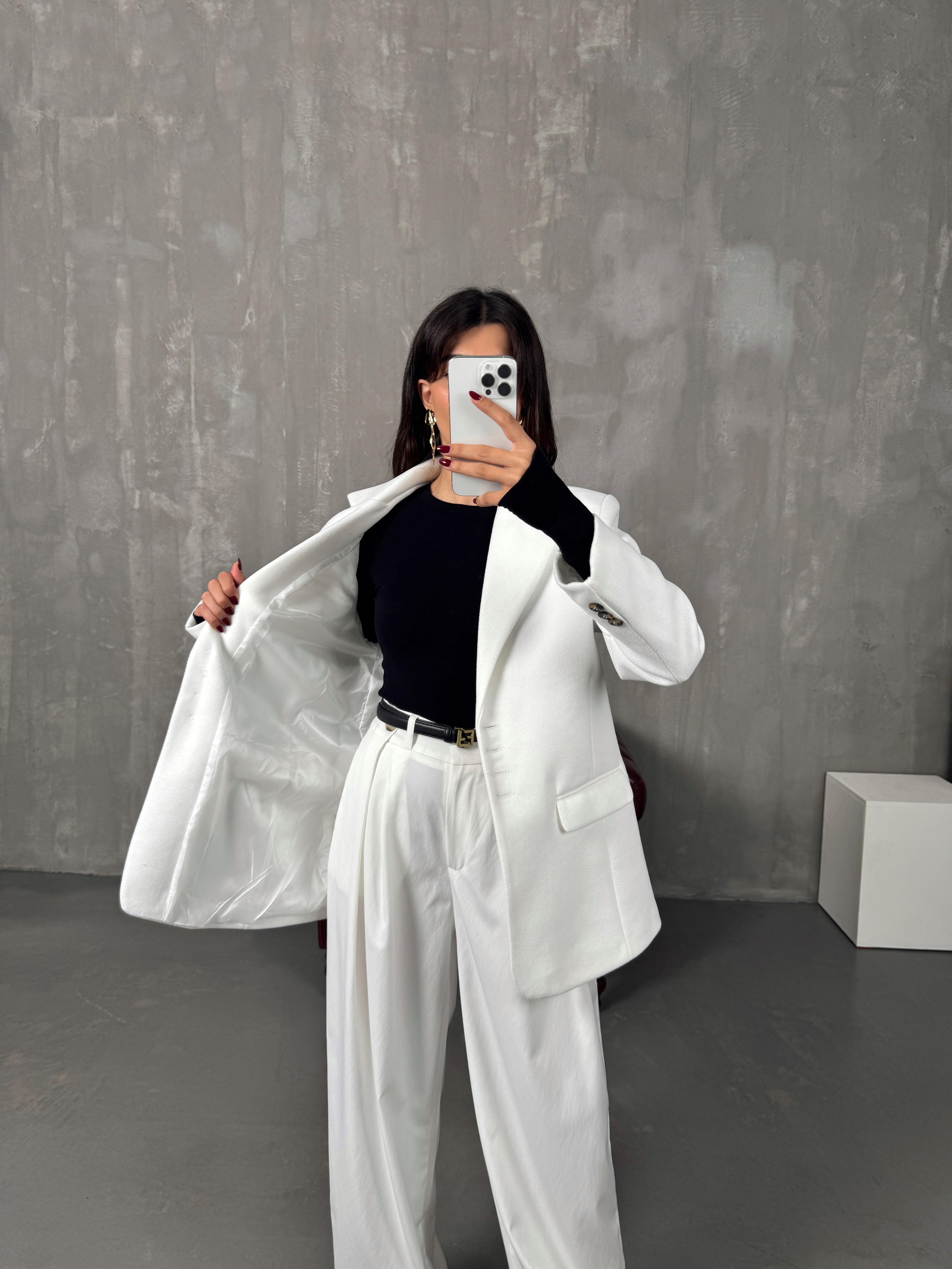 Mage Beyaz Kaşe Premium Astarlı Ceket