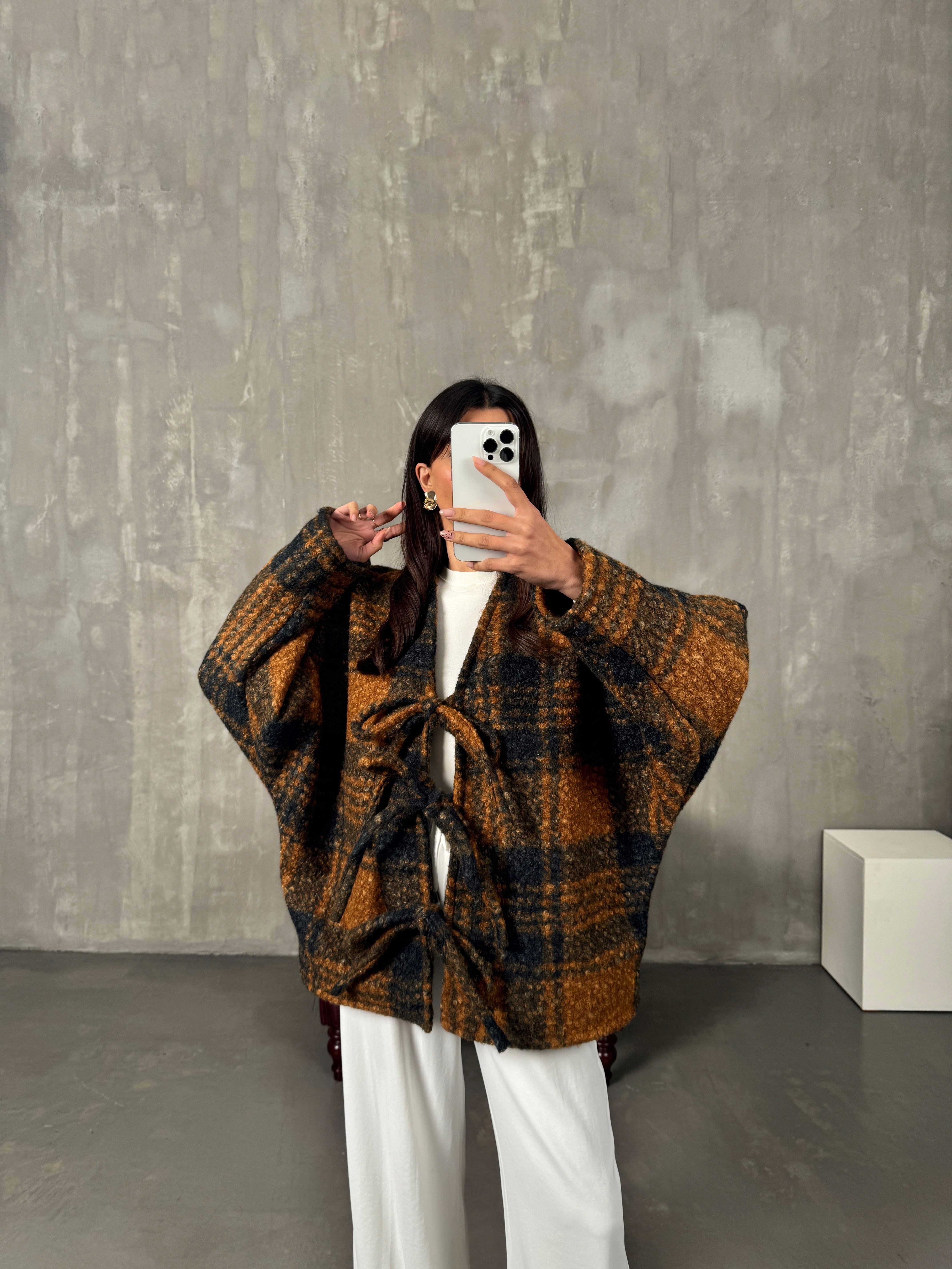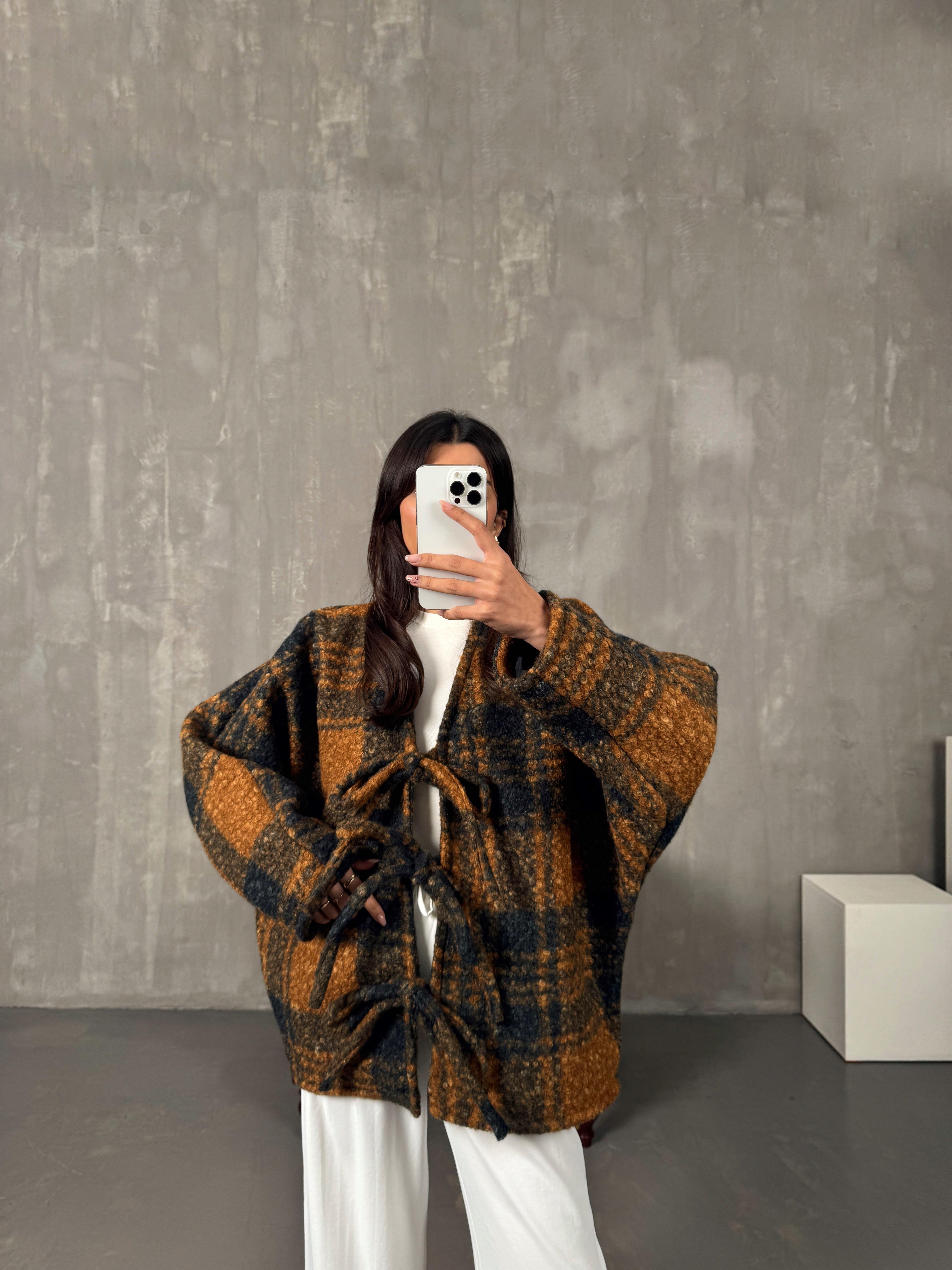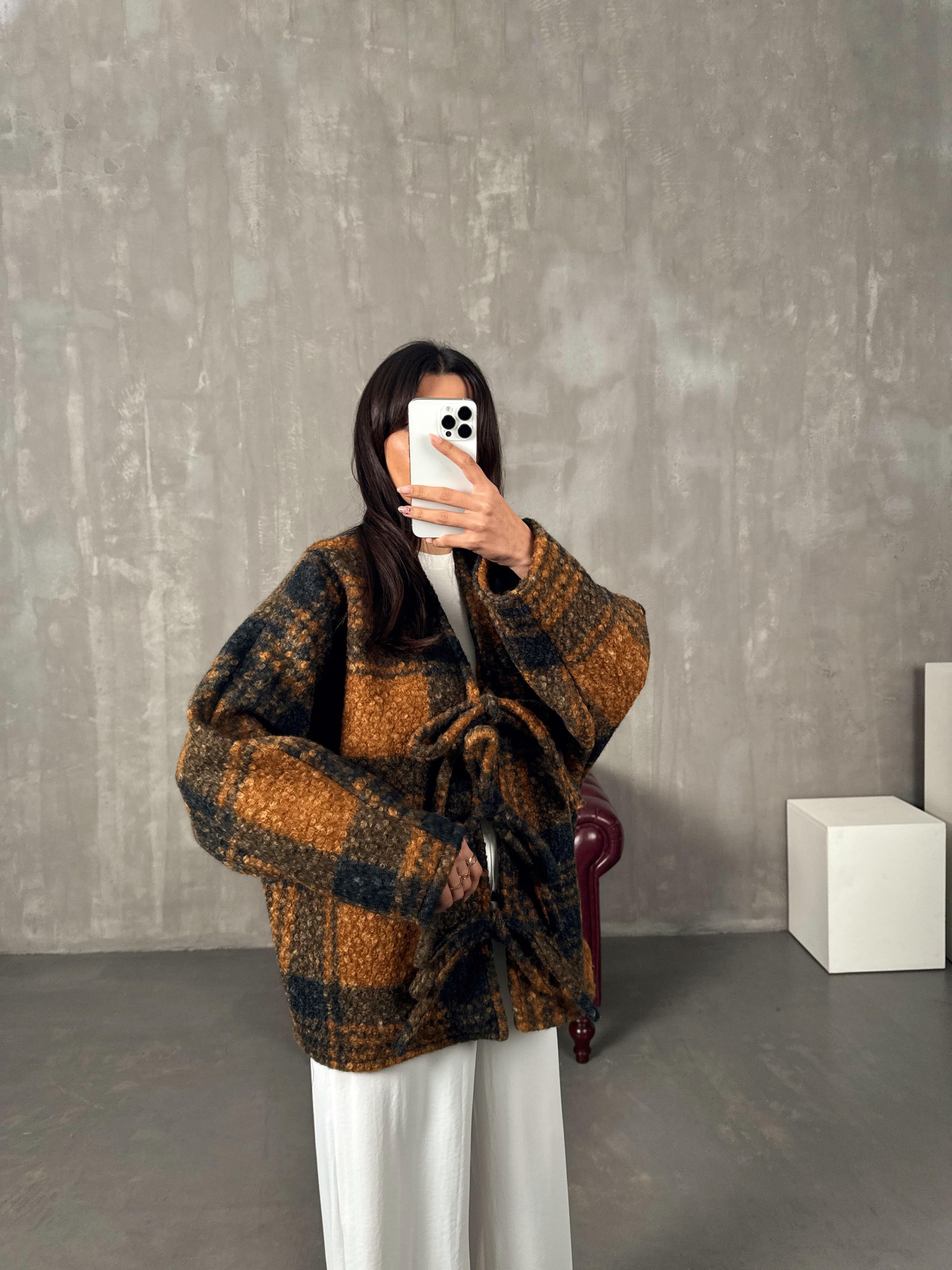 Manila Taba Çok Renkli Buklet Bağlamalı Astarlı Ceket