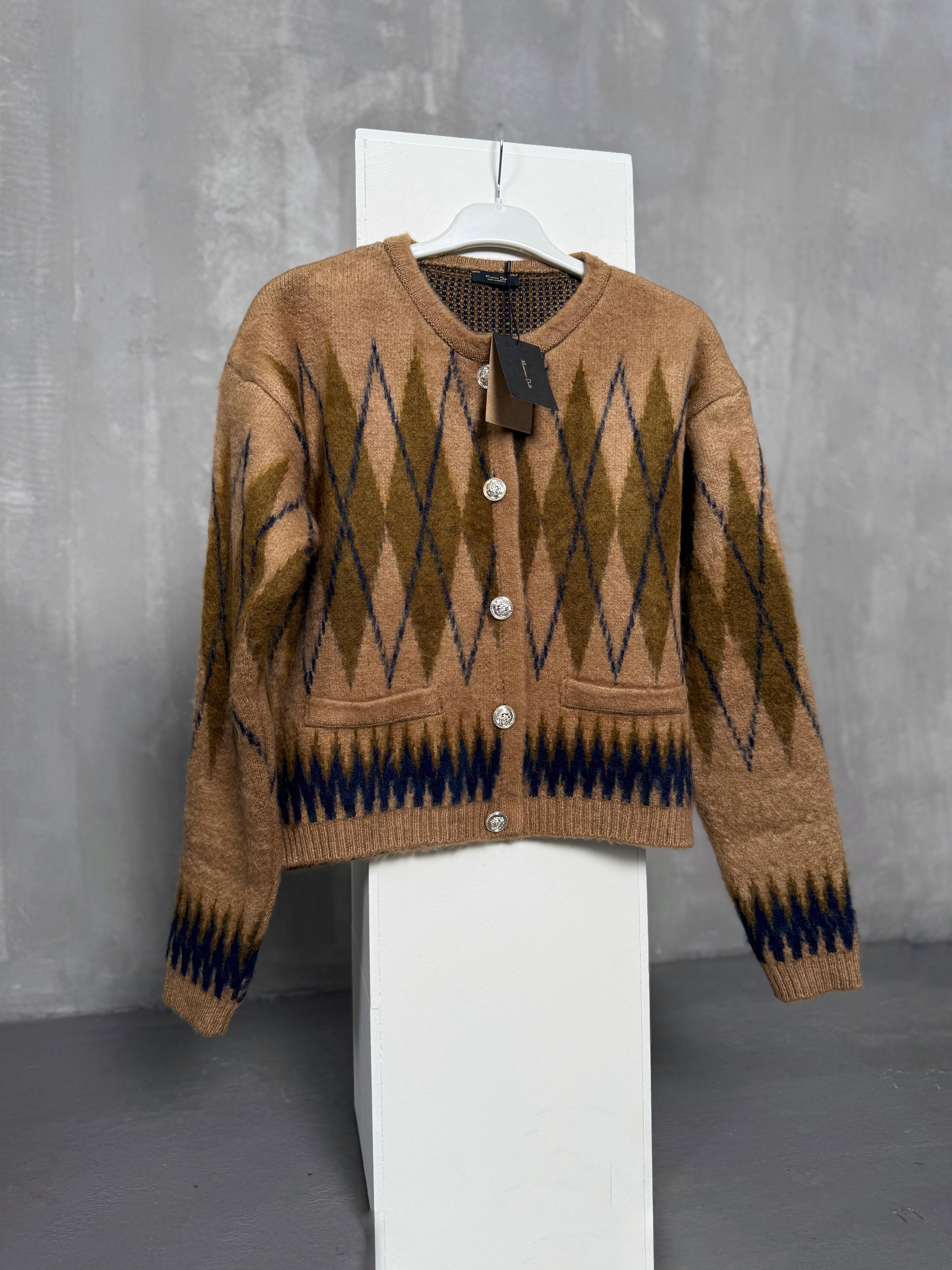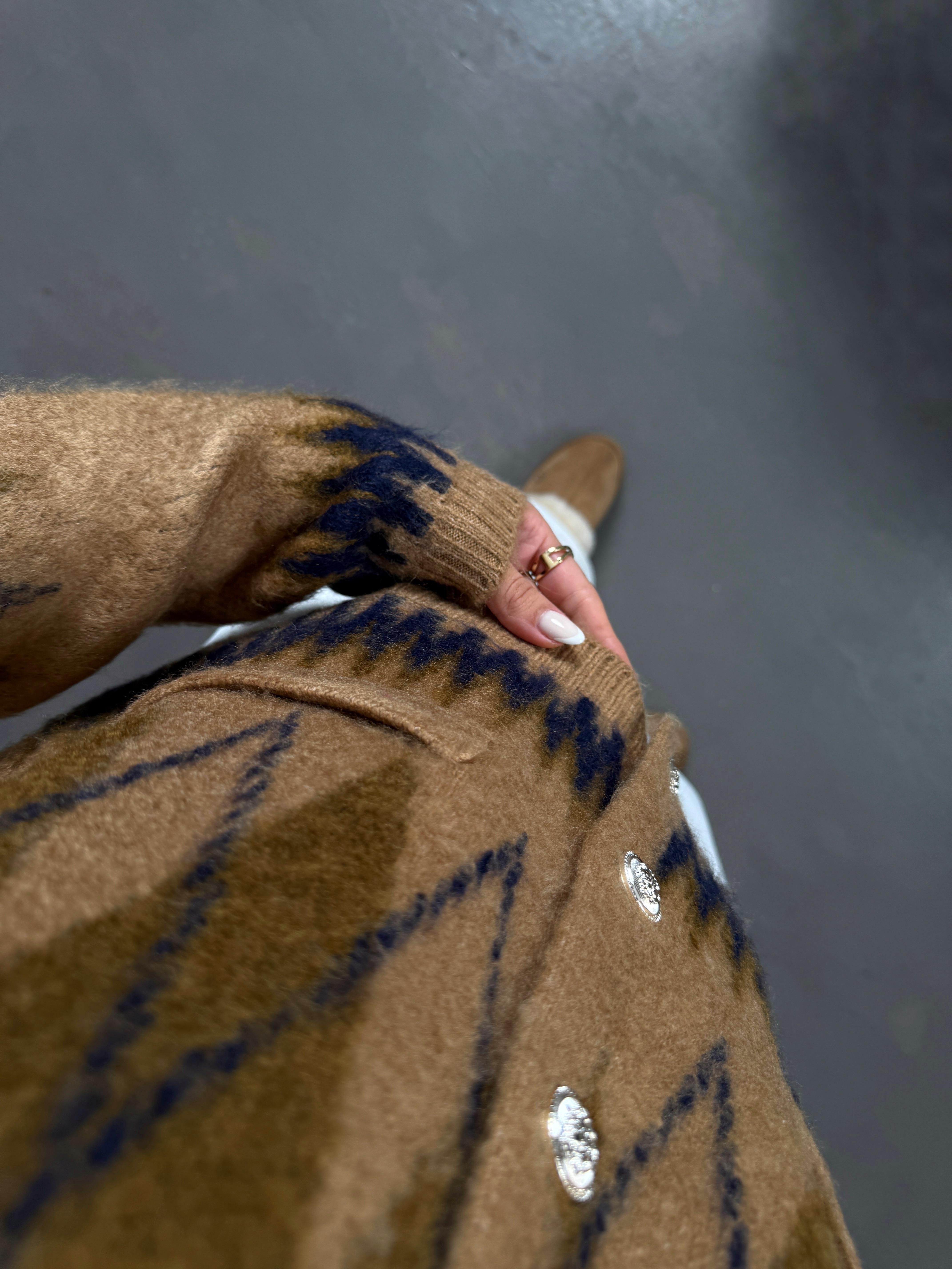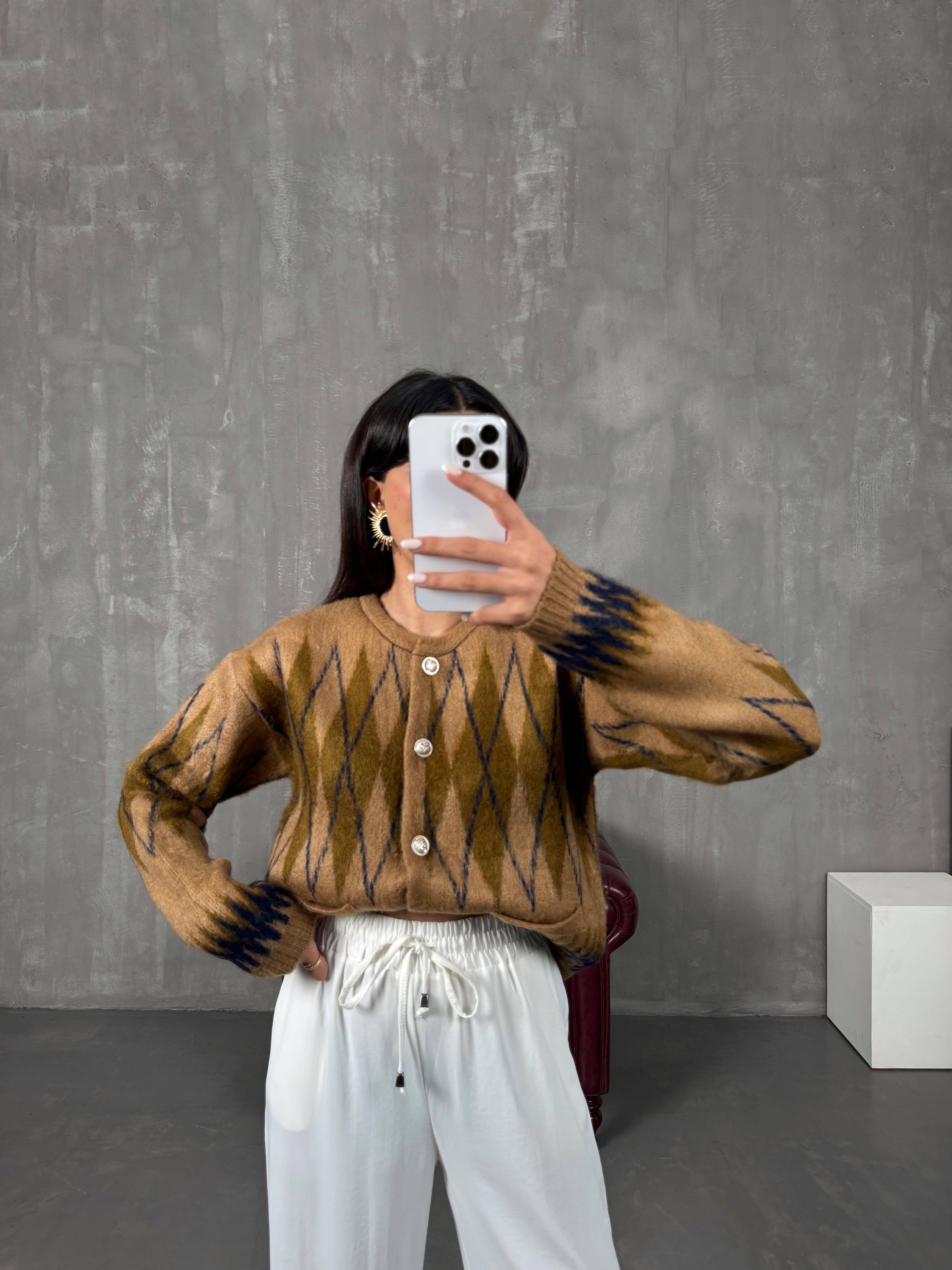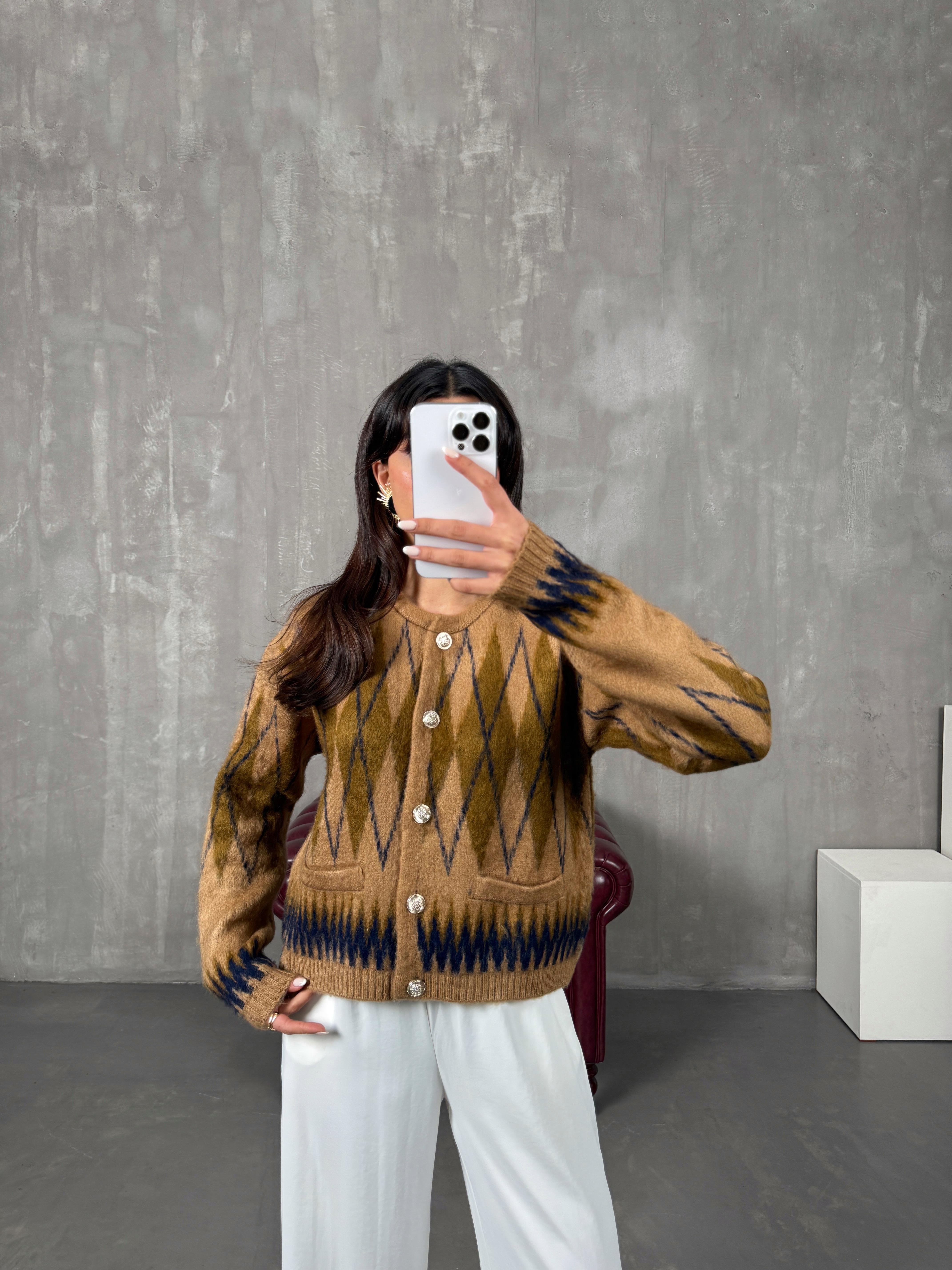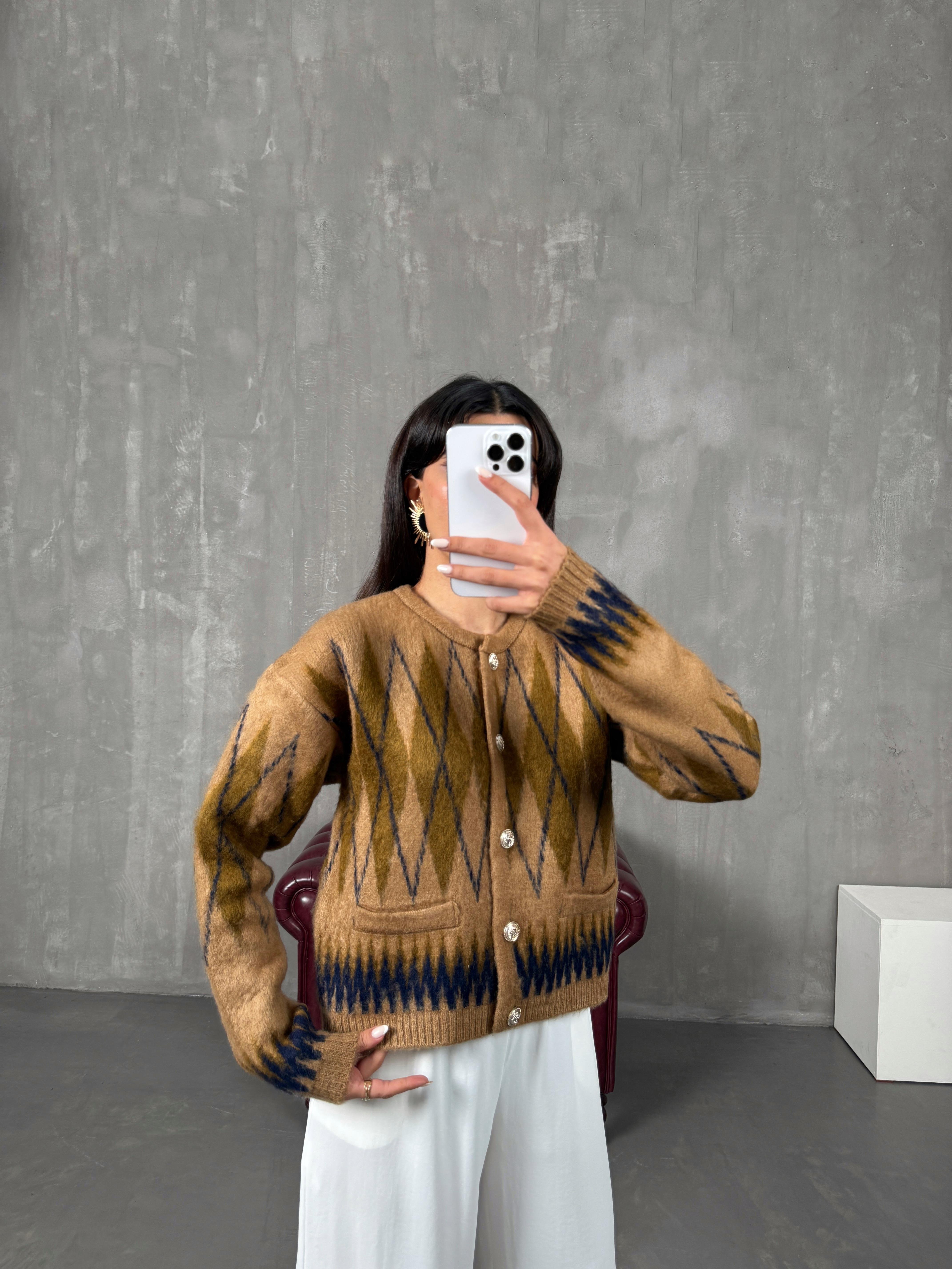 Manusa Camel Sakallı Desenli Düğmeli MD Hırka