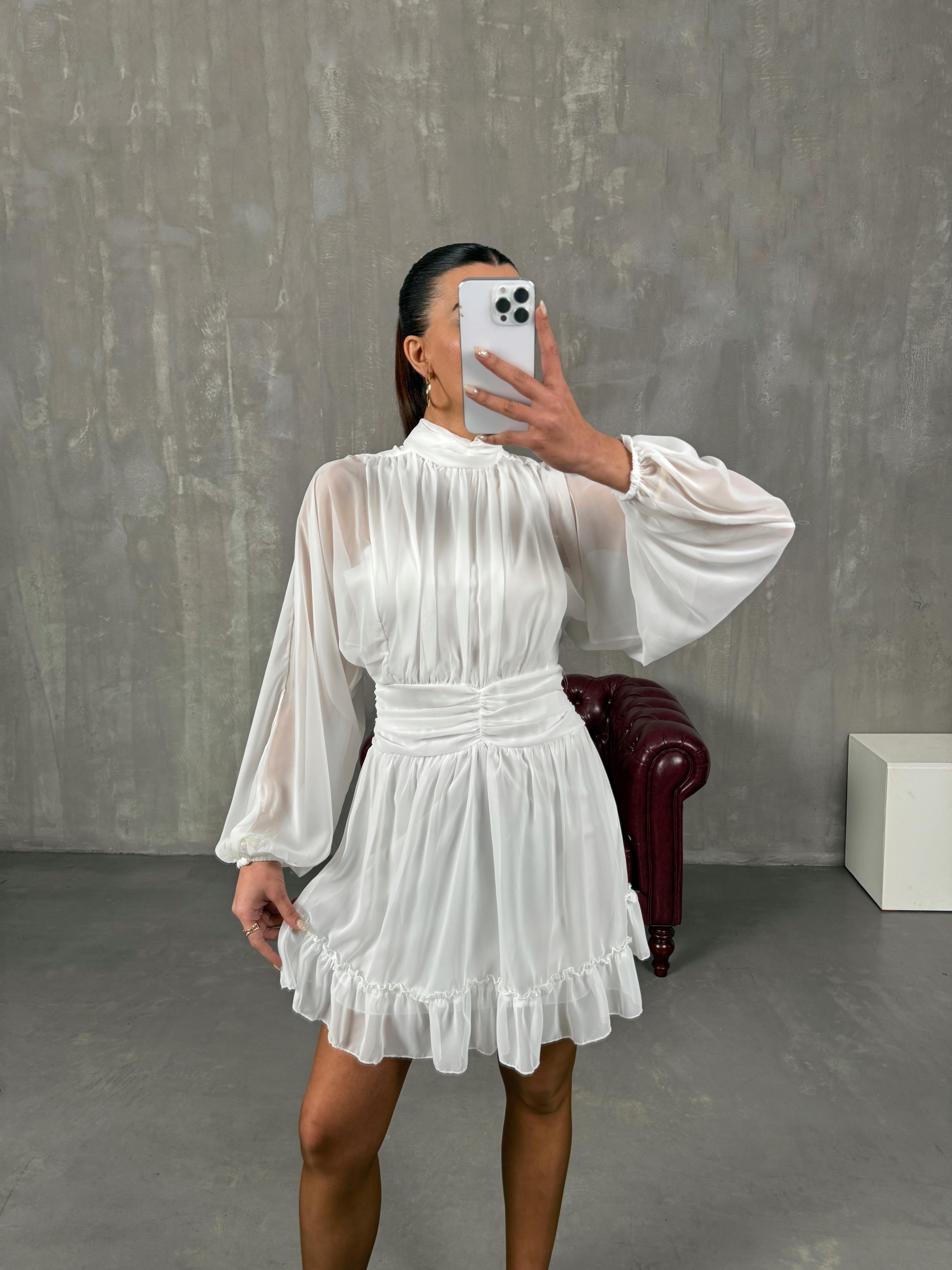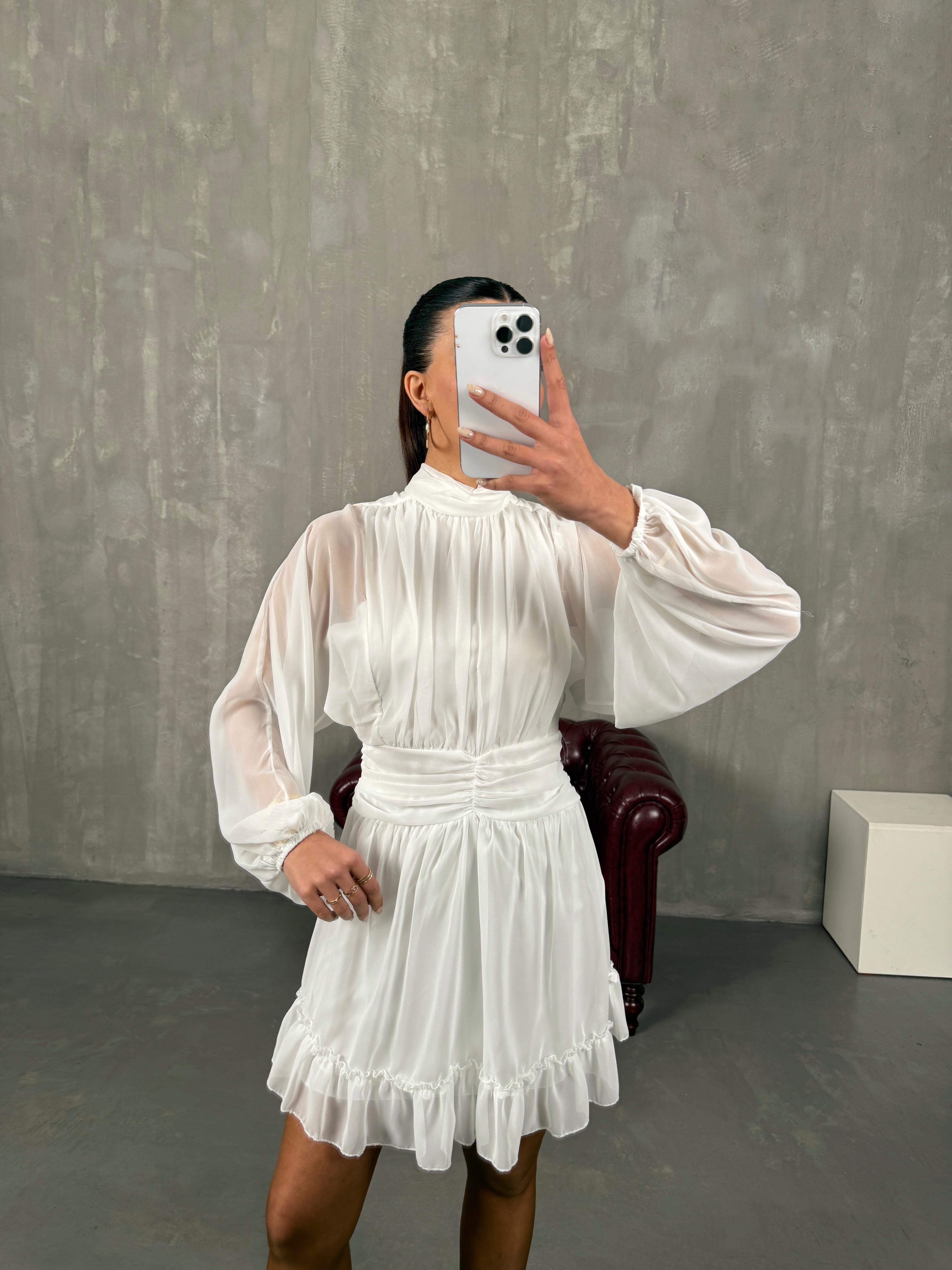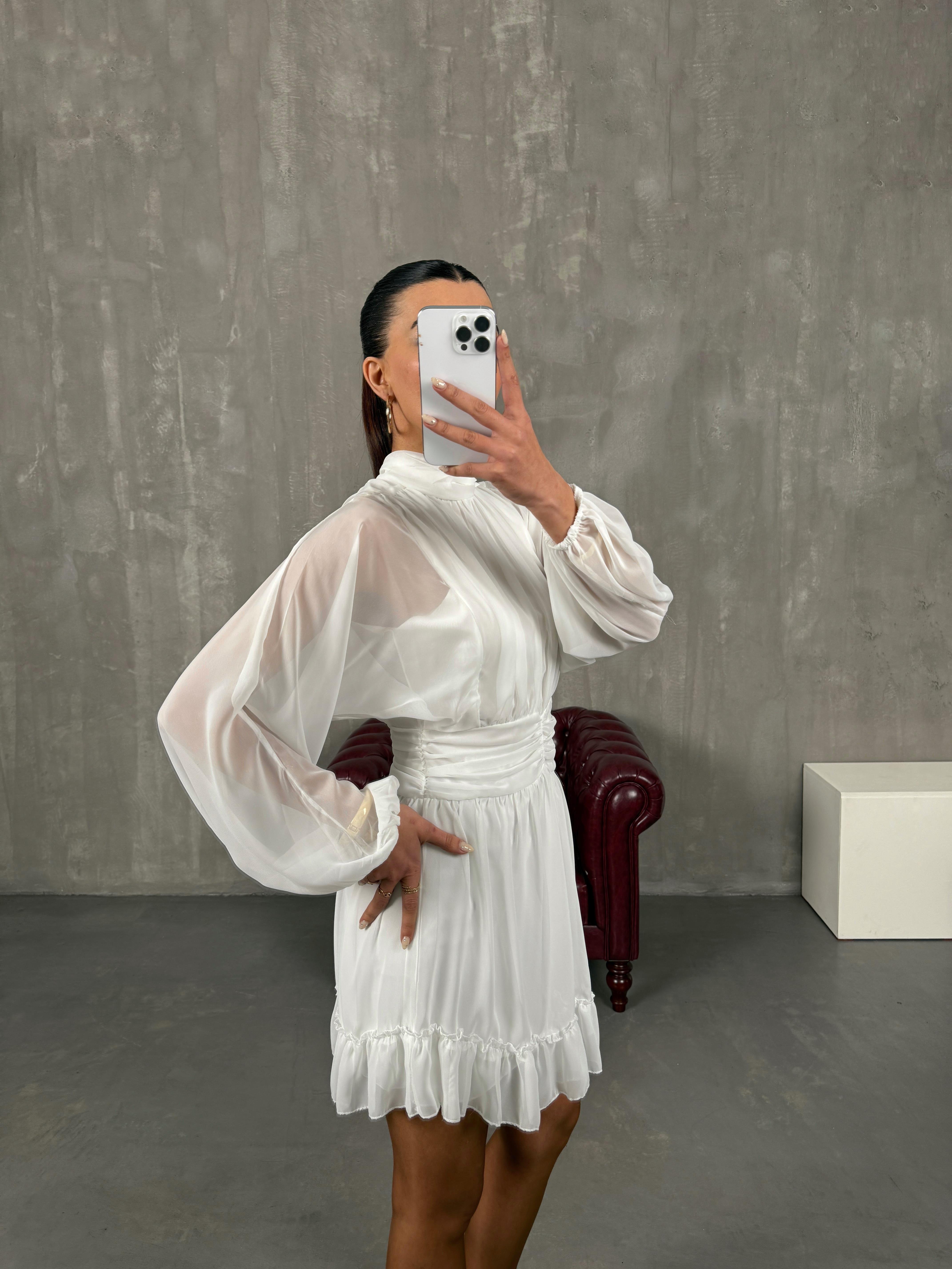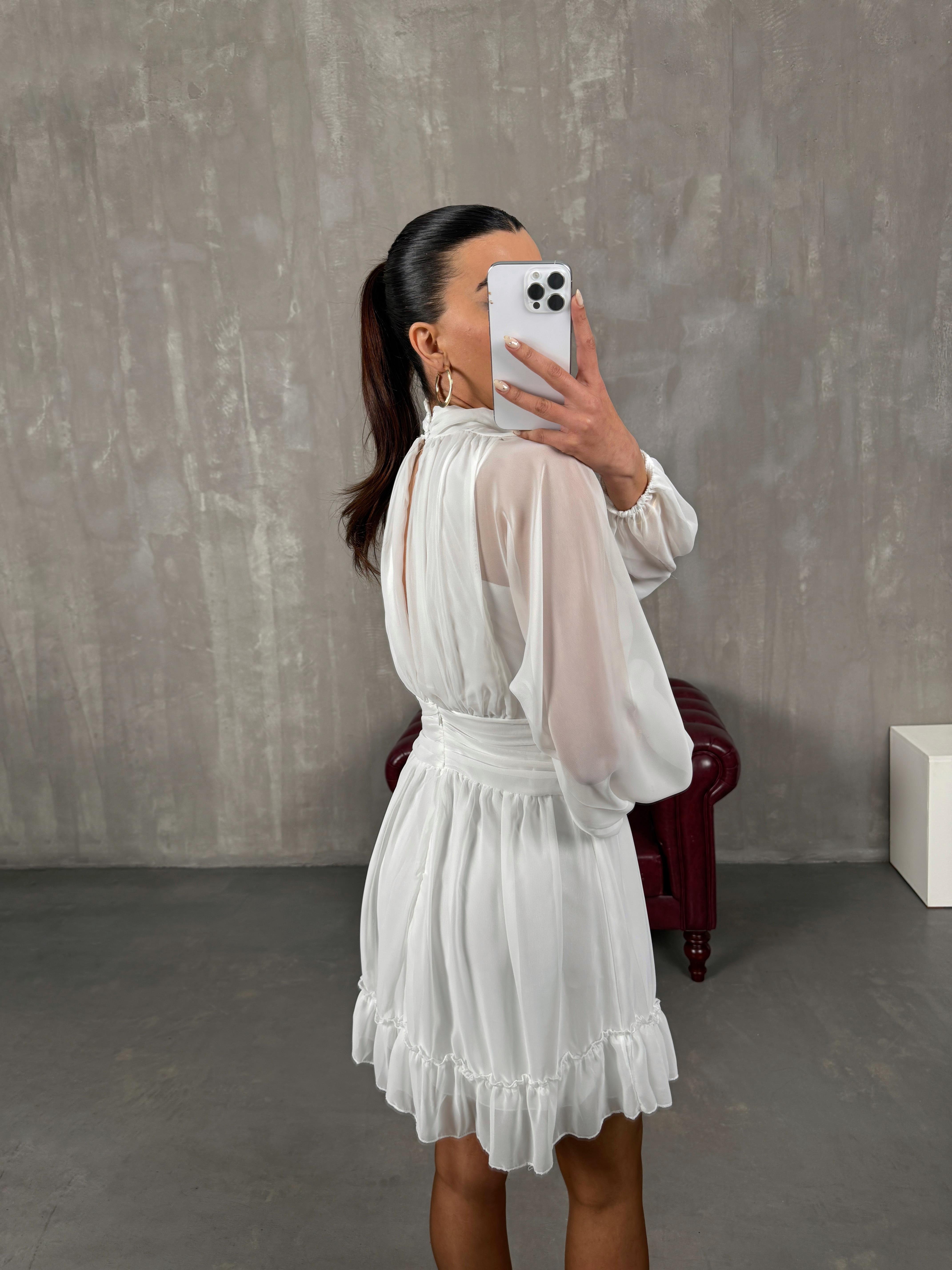 مارجو فستان شيفون أبيض مبطن بسحاب وديكولتيه ظهر