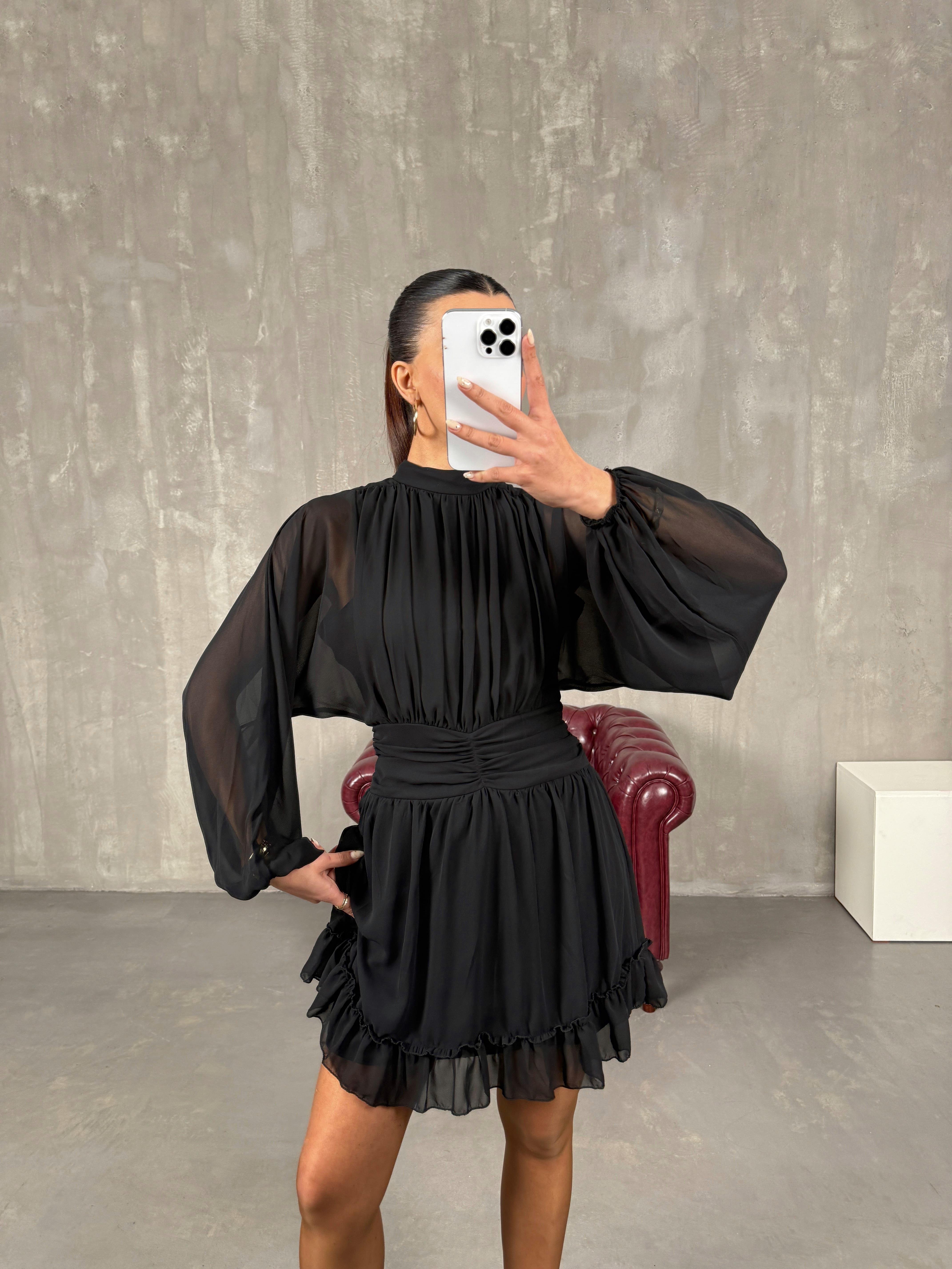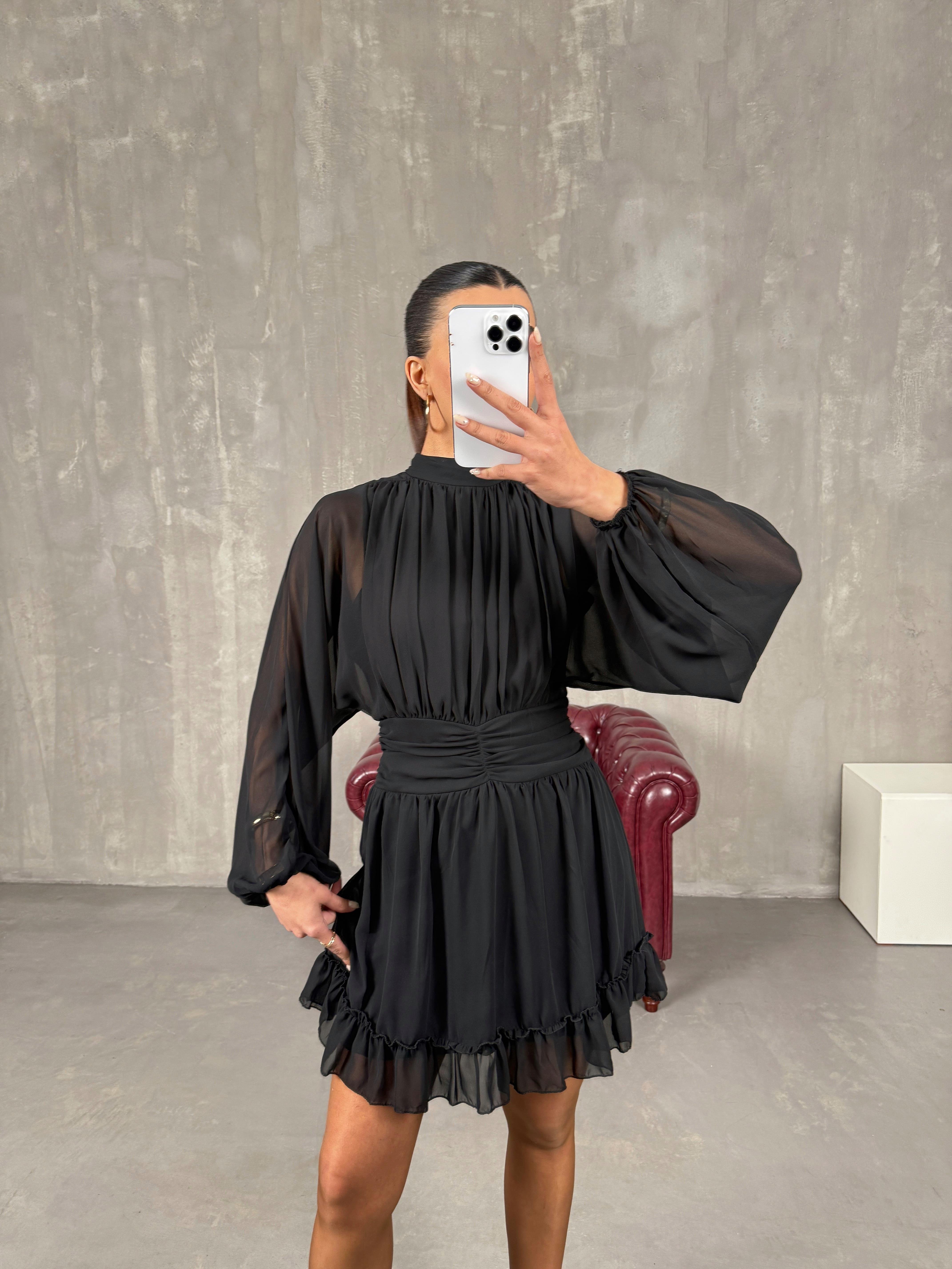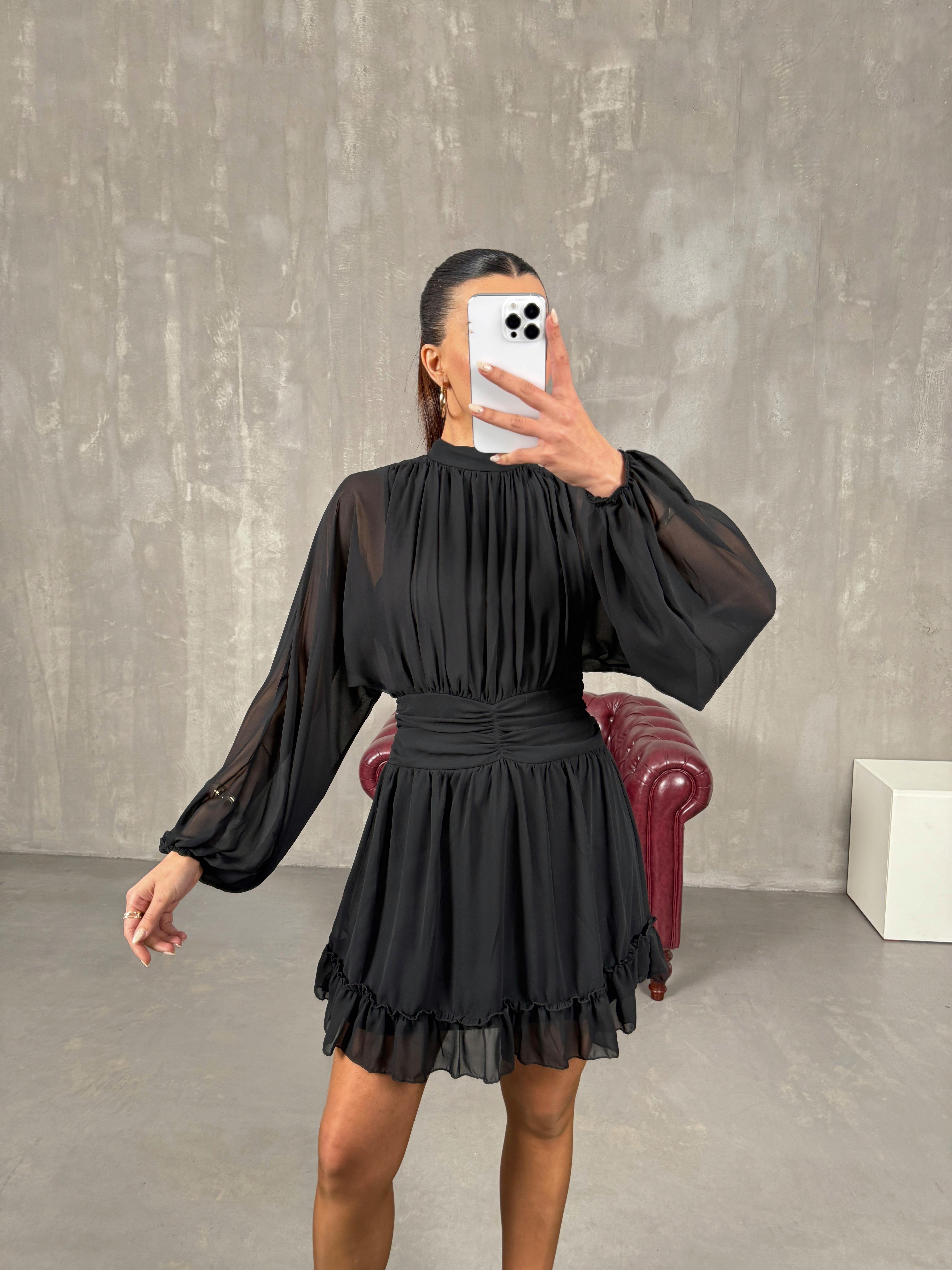 مارجو فستان شيفون أسود مبطن بسحاب وديكولتيه ظهر