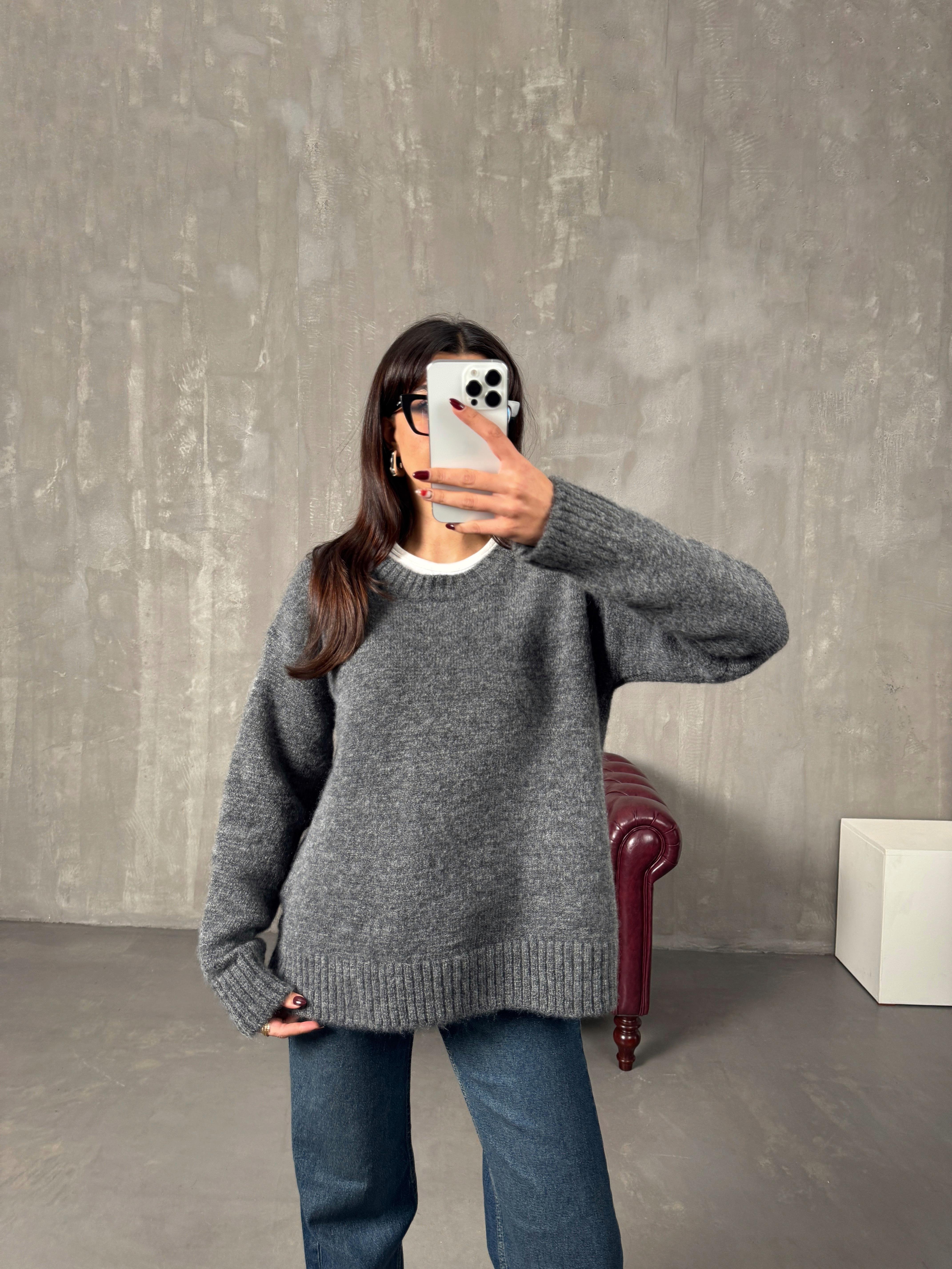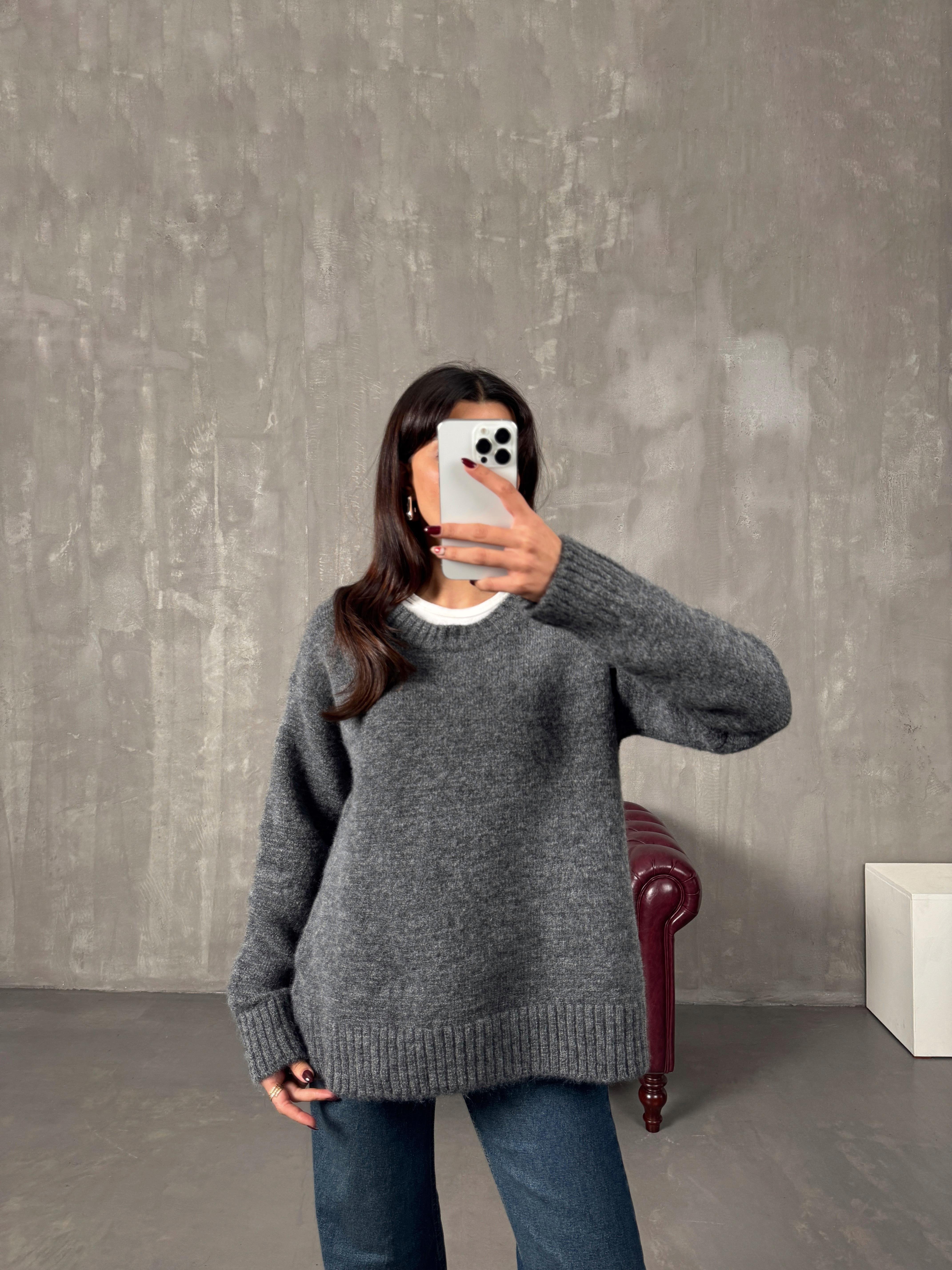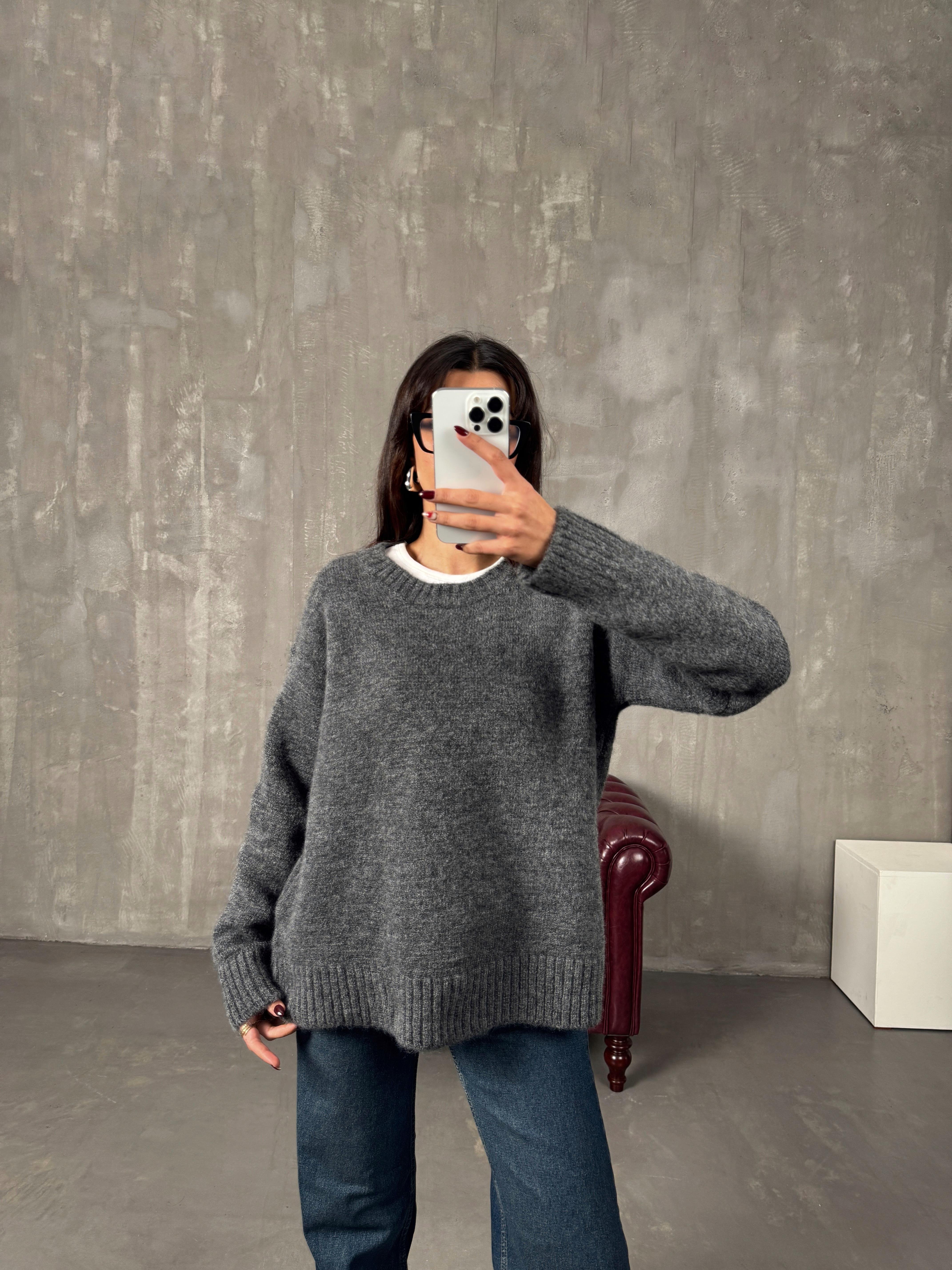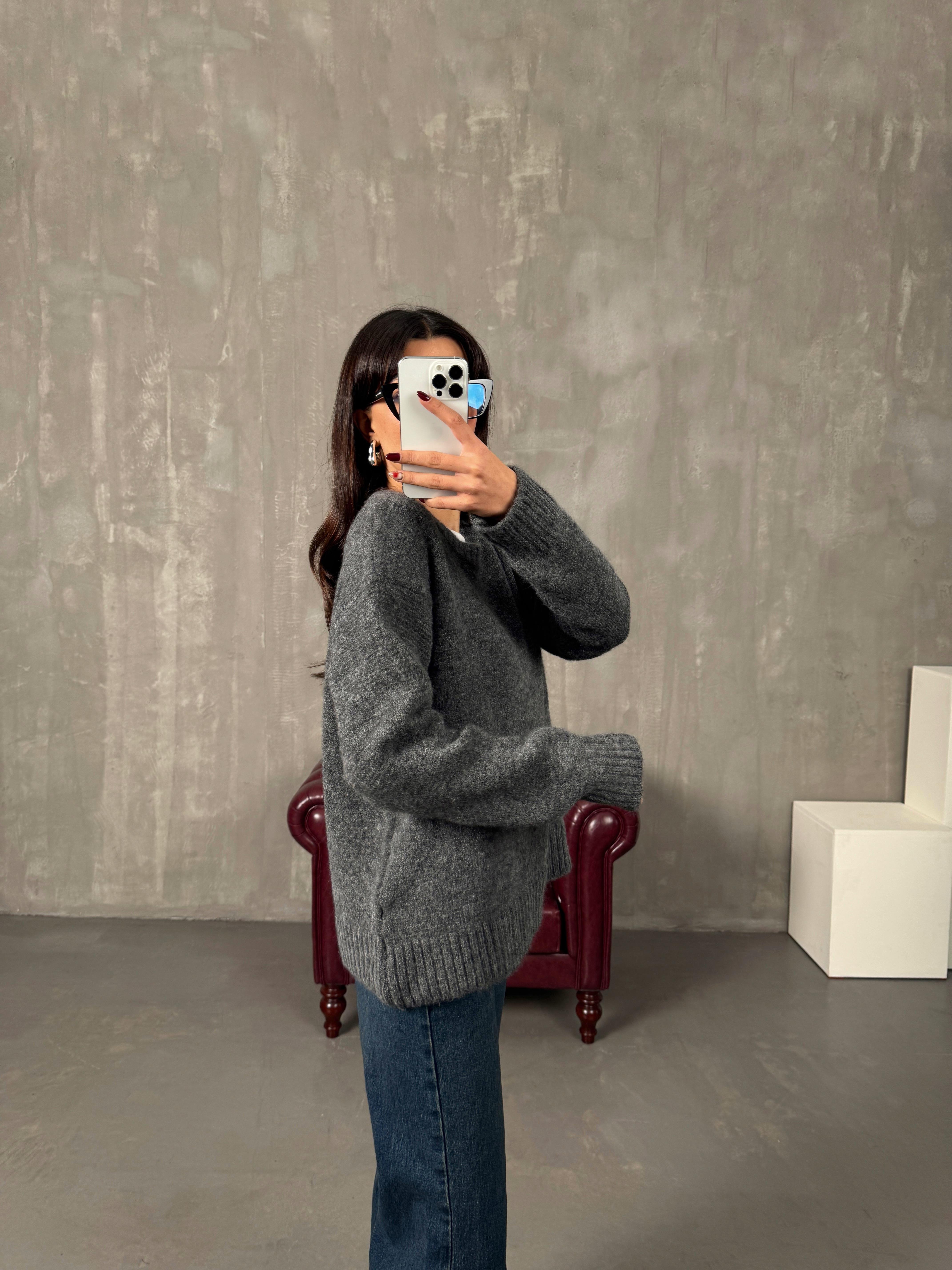 Massi Gri Bisiklet Yaka Yumuşak Triko Kazak