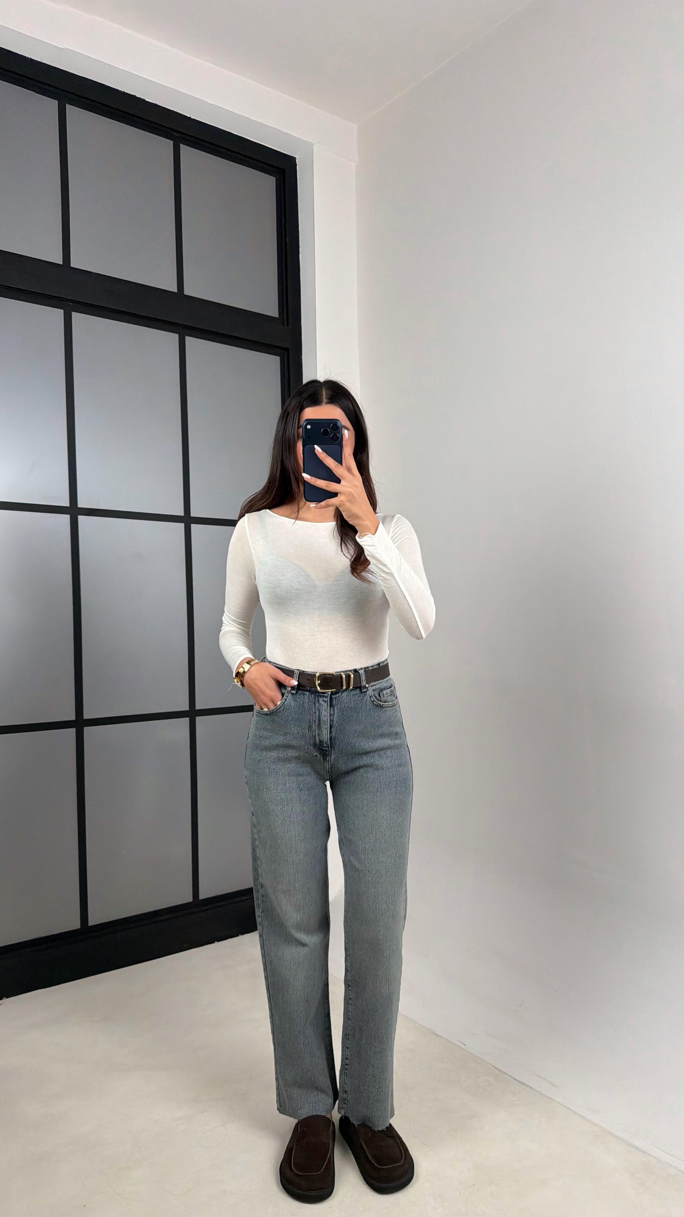 Mavi Kesik Paça Yıkama Desenli Kemerli Jean GAUS-00541GAUSDENİM PANTOLONGAUS-00541