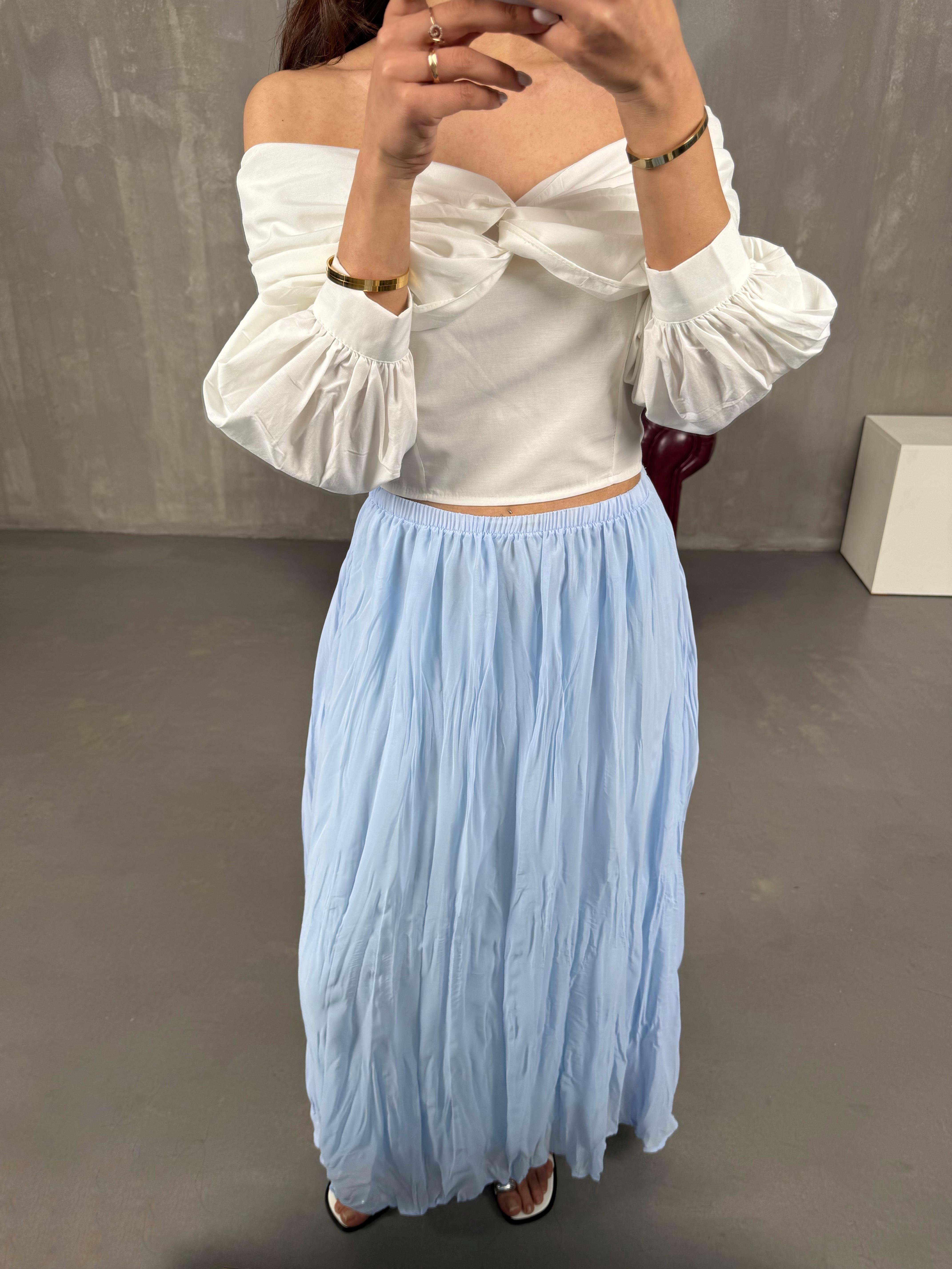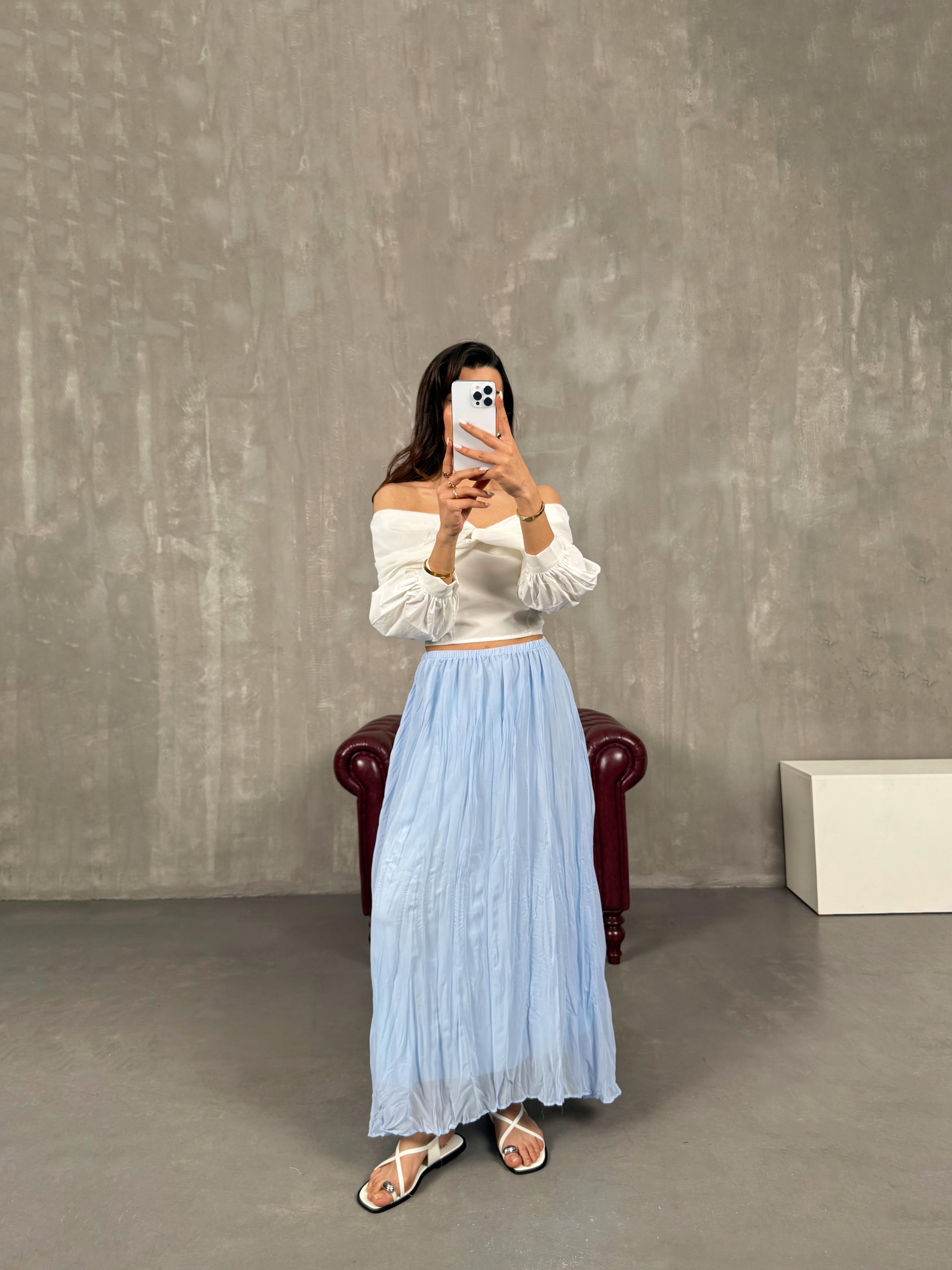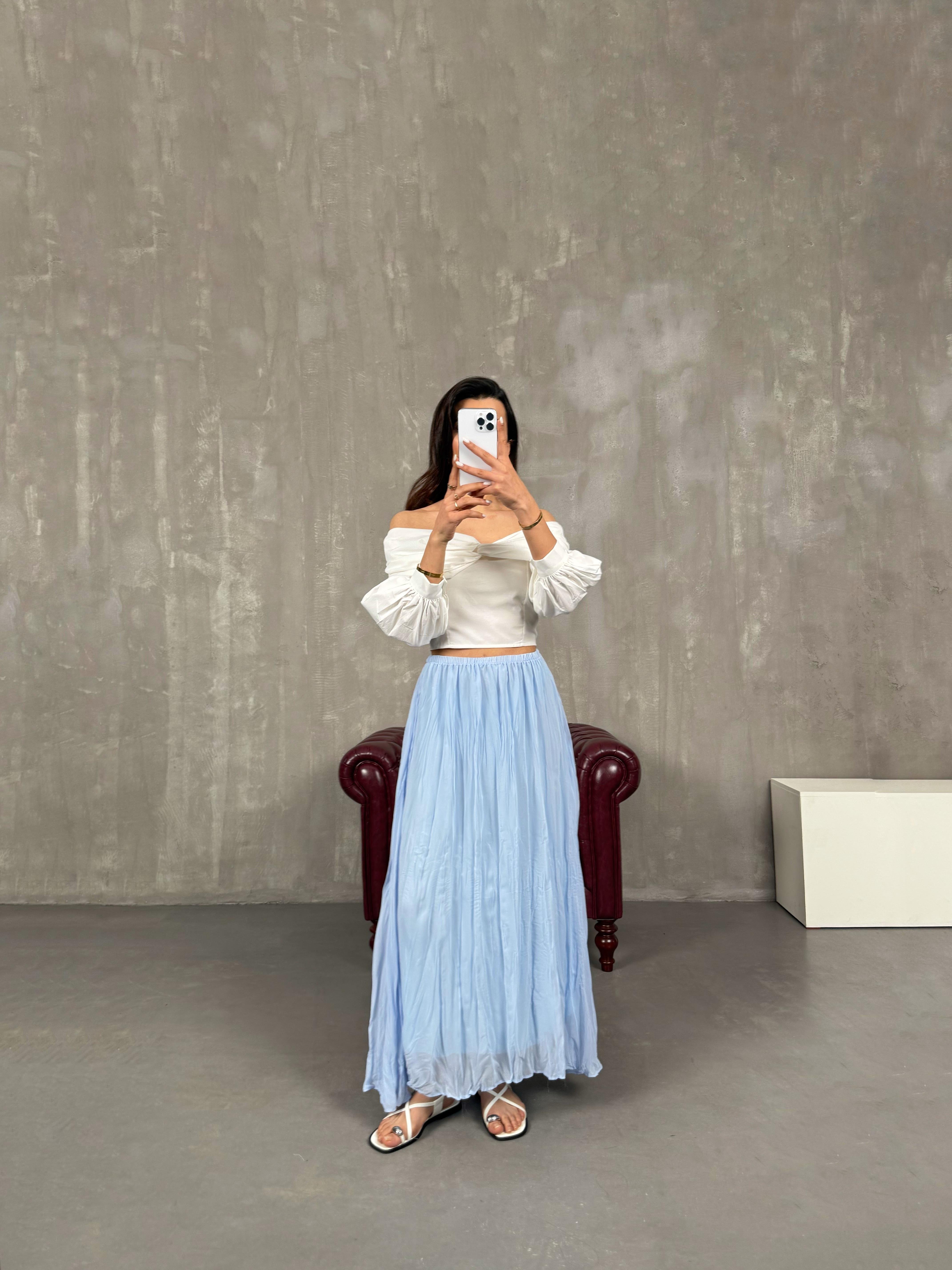 تنورة لون أزرق مبطنّة وبتفاصيل تول مجعّد Gaus00052