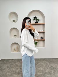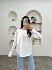 May Beyaz Bisiklet Yaka Uzun Kollu Penye Bluz