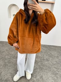 MD Camel Peluş Oversize Kapüşonlu Sweatshirt