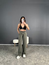 MD Haki Tensel Dokulu Beli Lastikli Pantolon