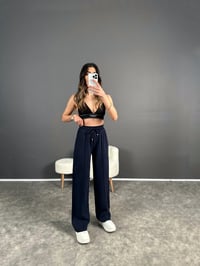 MD Lacivert Tensel Dokulu Beli Lastikli Pantolon