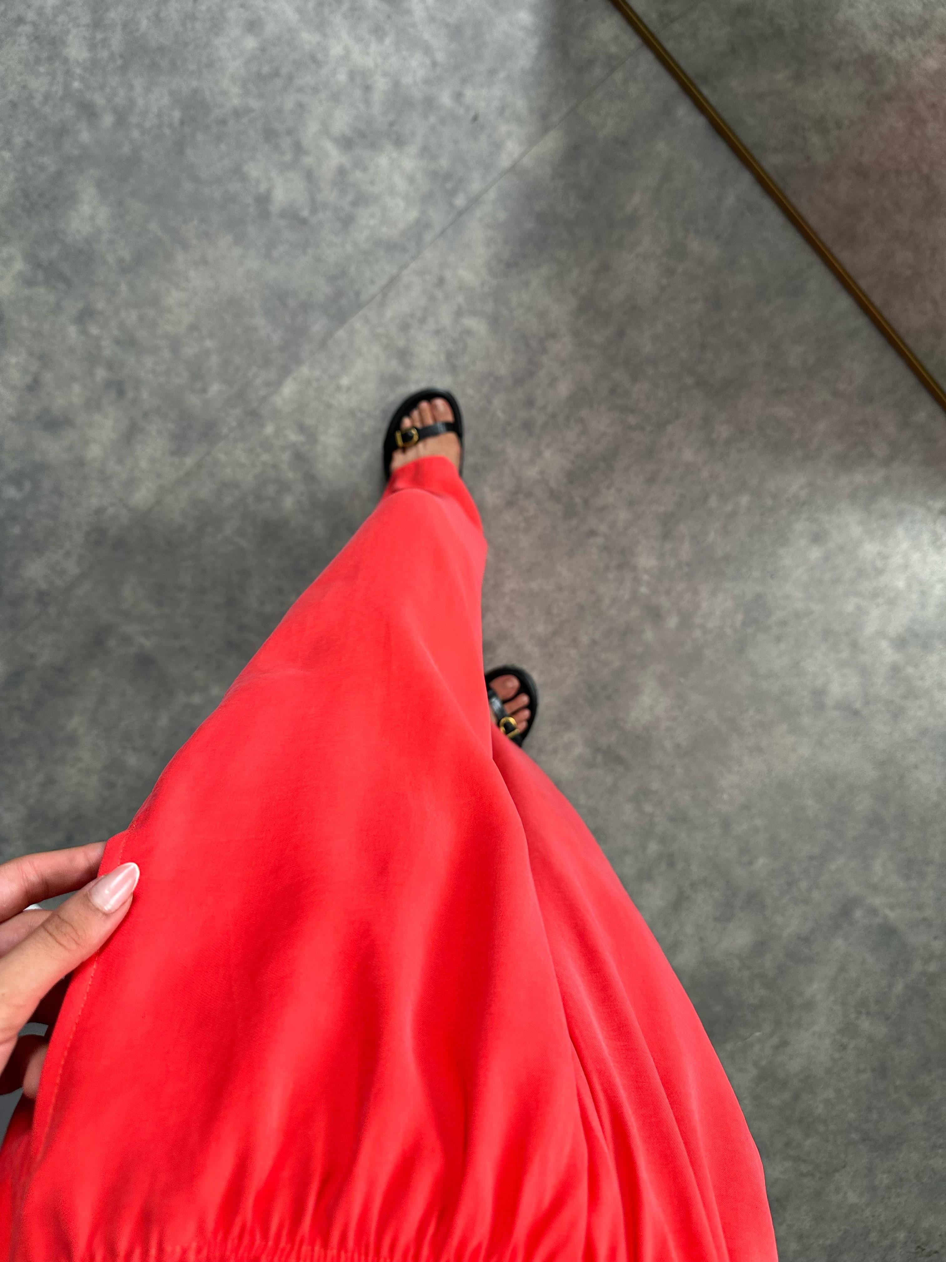 MD Nar Çiçeği Beli Lastikli Cepli  İthal Kumaş Rahat Dokuma Muadil Pantolon