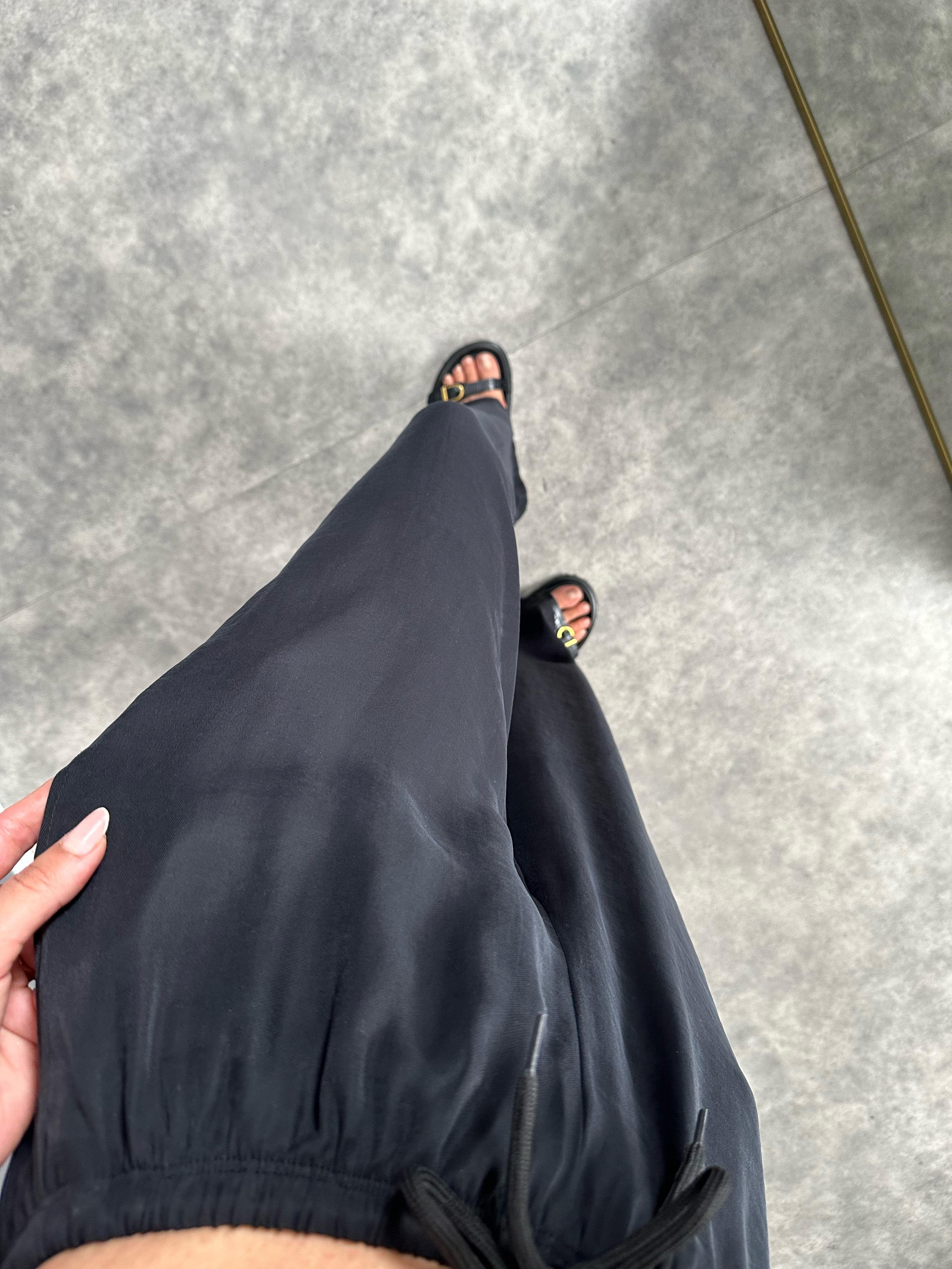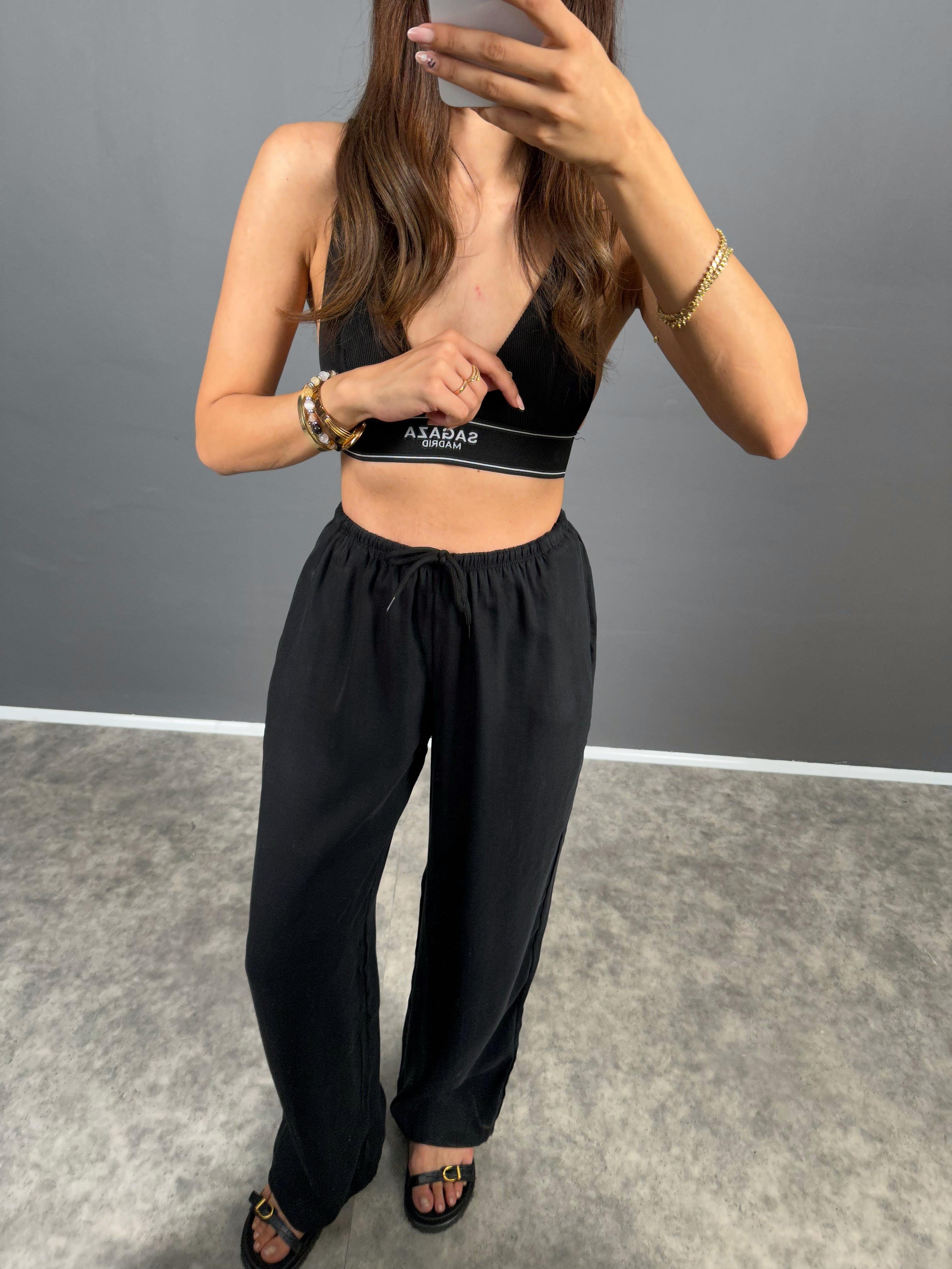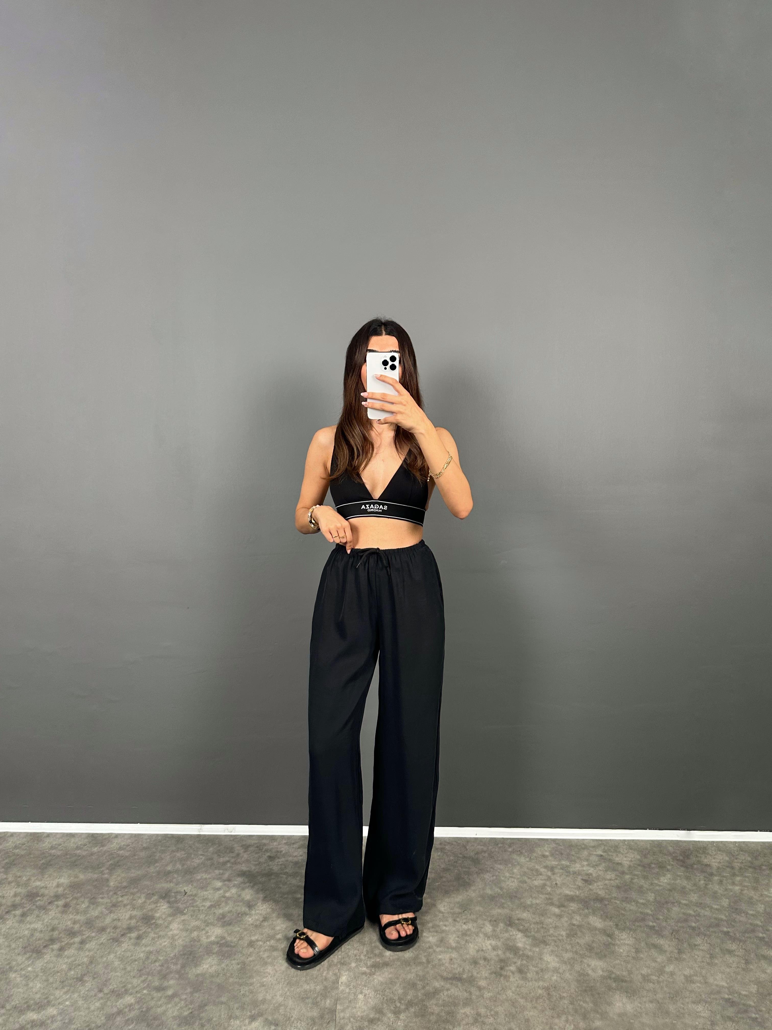 MD Siyah Beli Lastikli Cepli İthal Kumaş Rahat Dokuma Muadil Pantolon