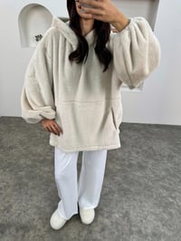 MD Taş Peluş Oversize Kapüşonlu Sweatshirt