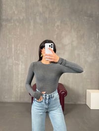Medi Antrasit Hafif Transparan Bisiklet Yaka Bluz